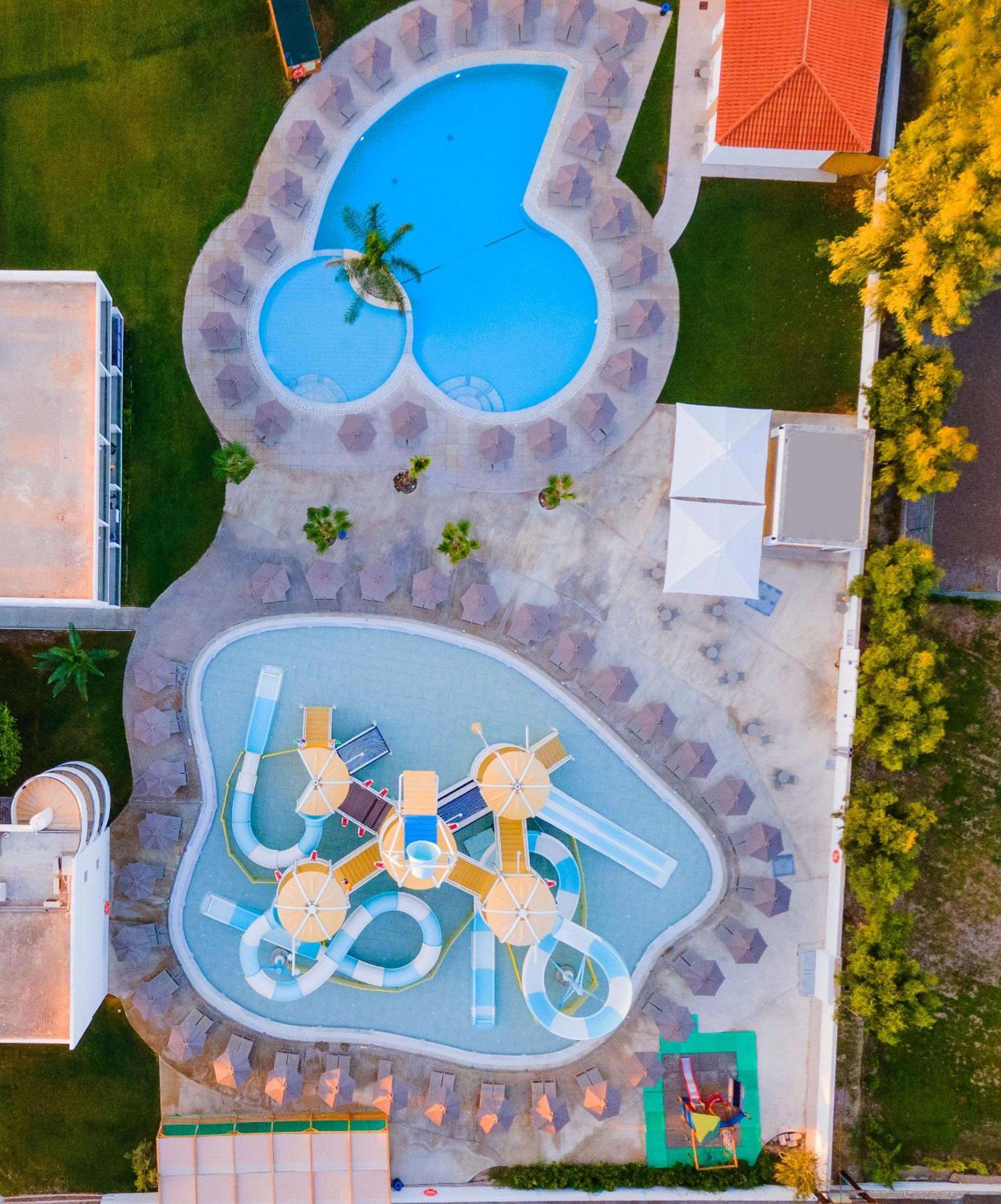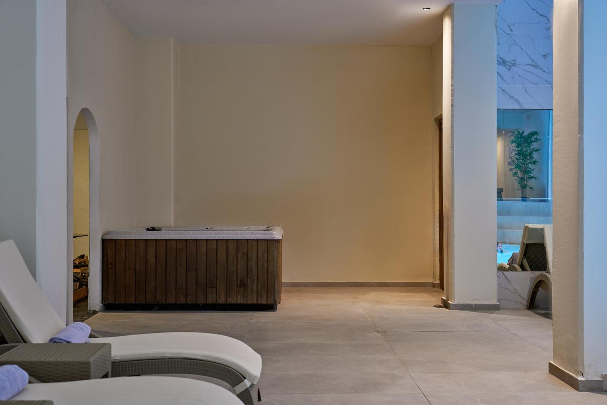 Blue Sea Island in Kolimbia offers a 4-star experience with an array of amenities. Enjoy the outdoor and indoor pools, fitness center, sauna, and karaoke. Kids can have a blast at the kids' club while adults unwind in the hot tub.