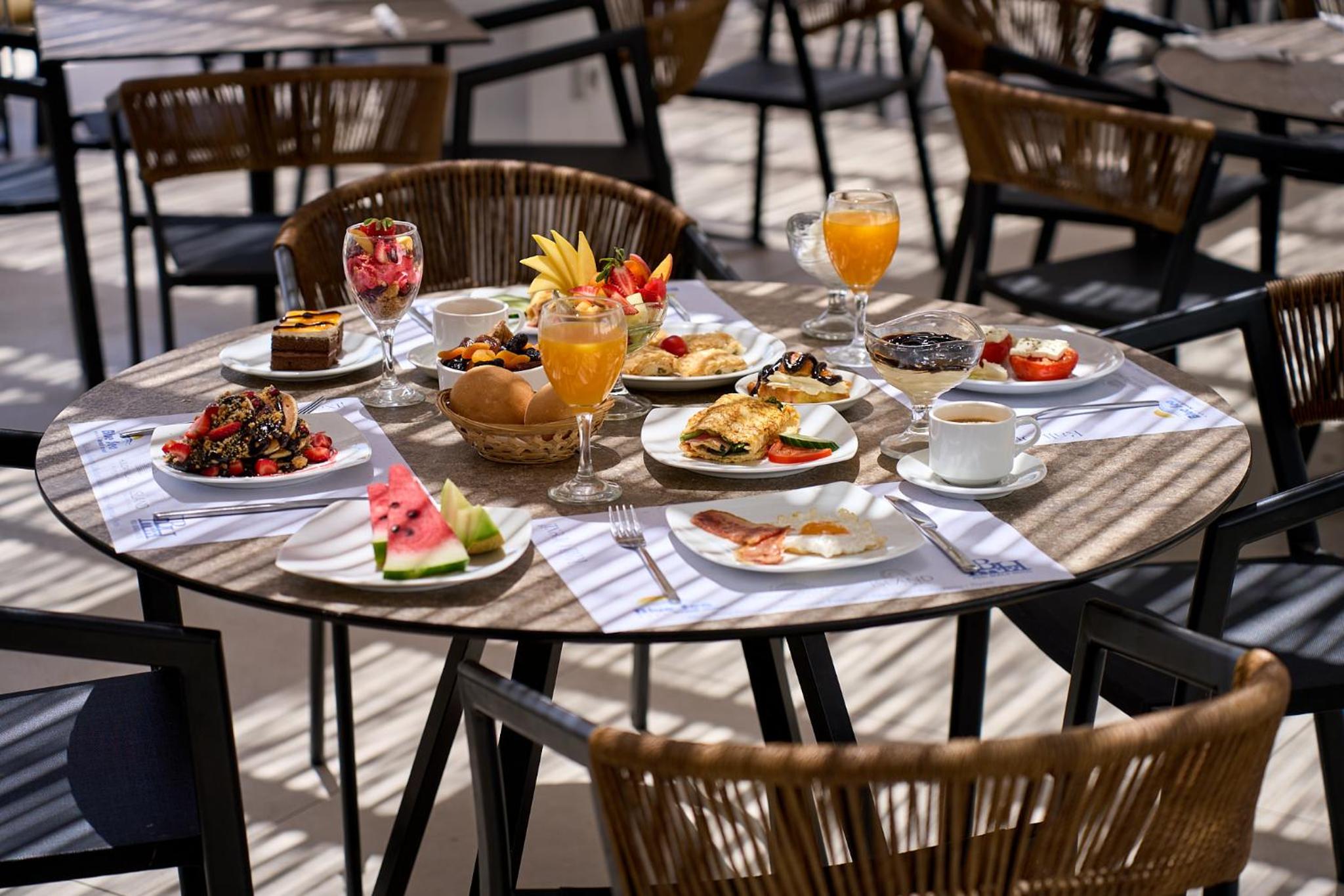 Питание разнообразное, но качество продуктов среднее — для формата «всё включено» это вполне ожидаемо. За 500 евро на двоих за 5 дней (октябрь, all inclusive) соотношение цена/качество вполне достойное. Найти что-то вкусное можно на каждом приёме пищи. Иногда образовывались очереди за едой, хотя сезон уже не высокий — в разгар лета, вероятно, бывает тесновато.