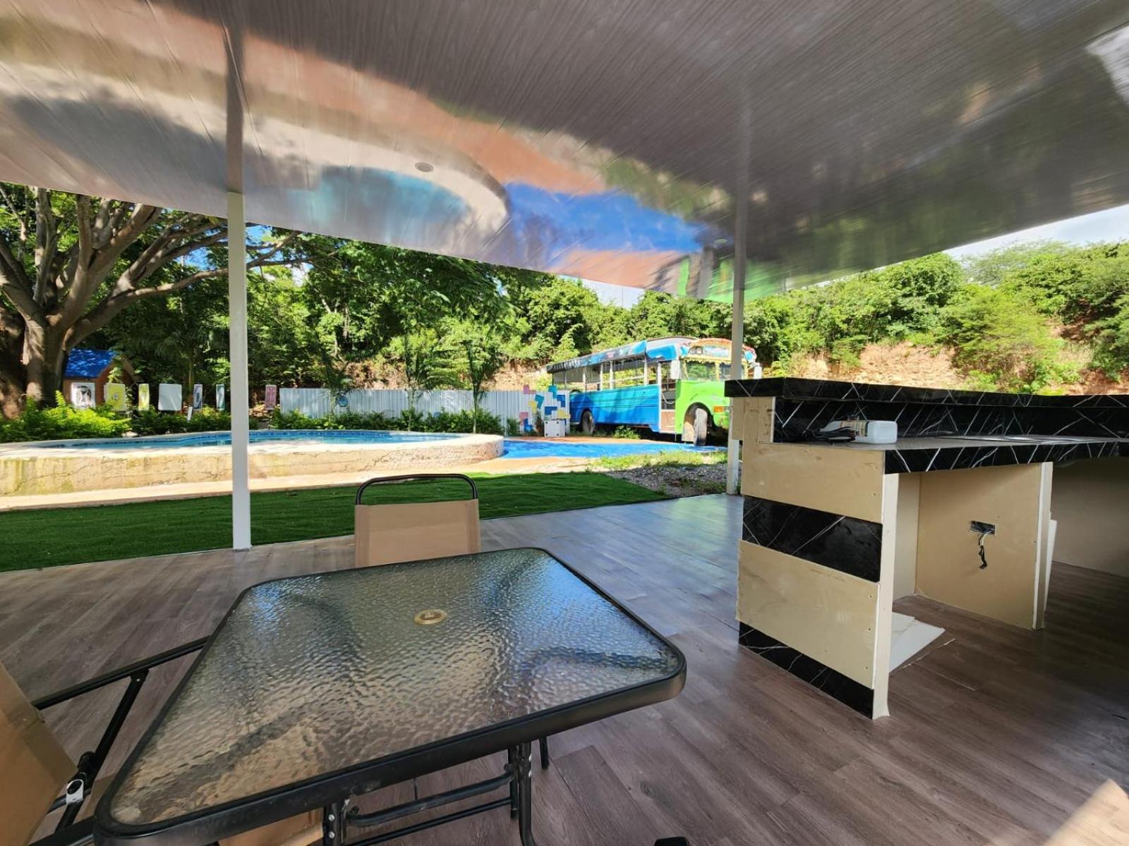 Fuimos y nos tuvimos que ir, en la habitacion no habia wifi. La pileta es un pileton muy chico y estaba lleno de gente haciendo picnic al costado. Llegamos a la habitacion y pedimos irnos. Parece que esta cerca del aeropuerto pero en realidad tenes como 10 min por calle de tierra, nose como hubiese salido de ahi al dia siguiente cuando llovio a cantaros.