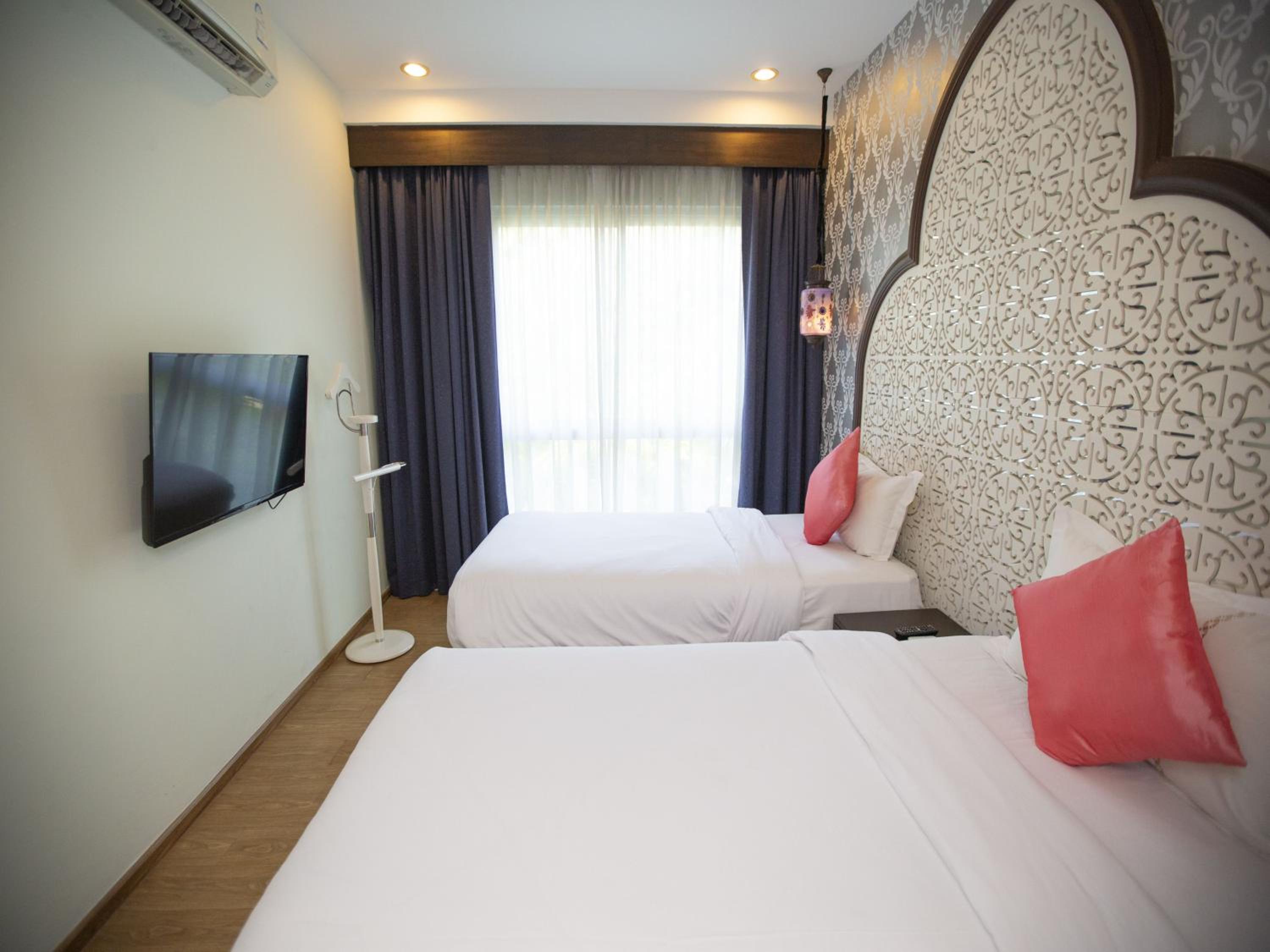 From karaoke nights to a well-equipped tour desk, The Grand Morocc Hotel ensures a memorable stay. The on-site bar and room service cater to guests' dining needs, while the paid airport shuttle service offers added convenience.