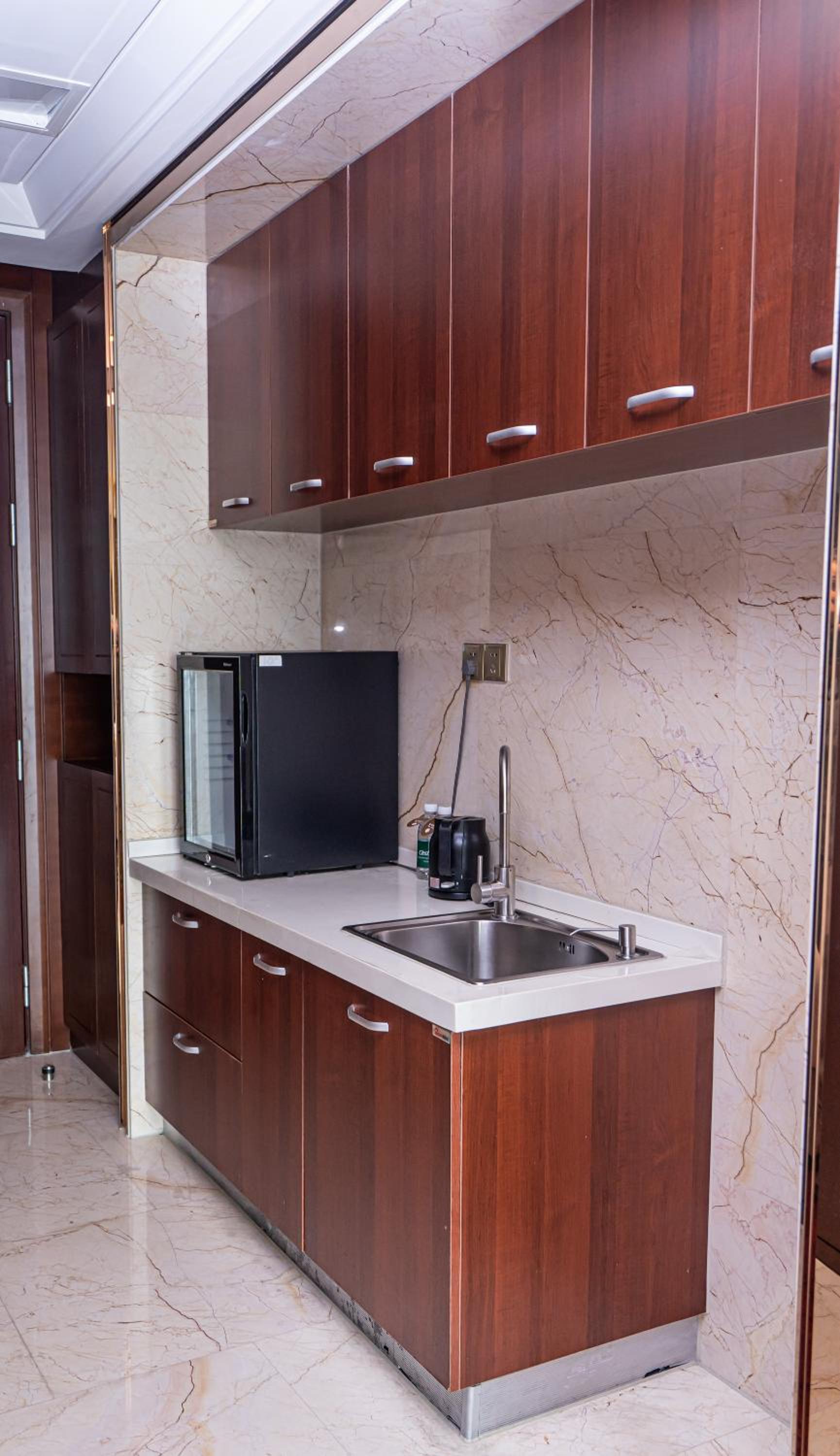 Puiki vieta: šalia yra gerų ir netgi vakarietišką maistą (gal, tiksliau, jo interpretacijas) siūlančių matinimo įstaigų, parduotuvių, kultūros įstaigų, daug vietų pasivaikščiojimui. Jokio nerimo dėl saugumo - saugumiečiai įsikūrę gretimame pastate ;) Kambarys įrengtas identiškai, kaip tame pačiame dangoraižyje įsikūręs bent pusantro karto brangesnis Marriot (teko ir jame pagyventi), netgi marmuras tas pats, o nuo Marriot skiriasi gal tik tuo, jog neturi svarstyklių, lyginimo lentos (tačiau viskas, kas susiję skalbimu - savarankiškai ir nemokamai tame pačiame aukšte), antro televizoriaus su vonia (buvo tik dušas) bei radijo imtuvo. Buvo tuščias šaldytuvėlis (juk kai kur jis būna užgrūstas jums nereikalingais buteliukais ir pan.), kasdien papildomos geriamojo vandens atsargos buteliukuose. Puikus kietas čiužinys, lova ne per trumpa mano 1,9 m ūgiui, dviejų skirtingų tipų pagalvės (viskoelastinė - nuostabi). Elektros rozetės tinkamos mūsų C tipo kištukams.