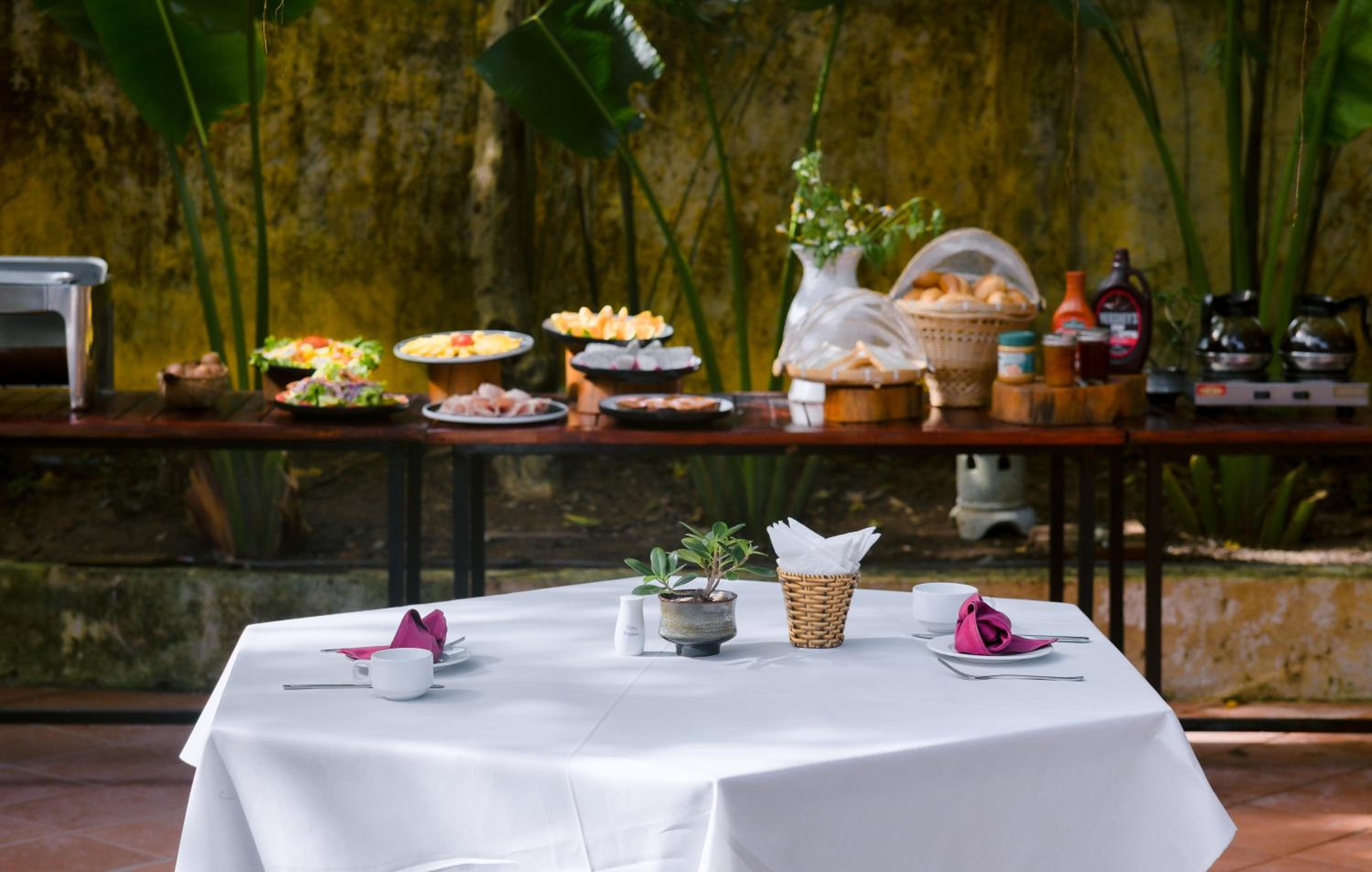 Chambre spacieuse et confortable dans un bungalow autour de la piscine. Personnel serviable et efficace. Hôtel au calme, à l'écart des bruits de la ville. Petit-déjeuner correct.