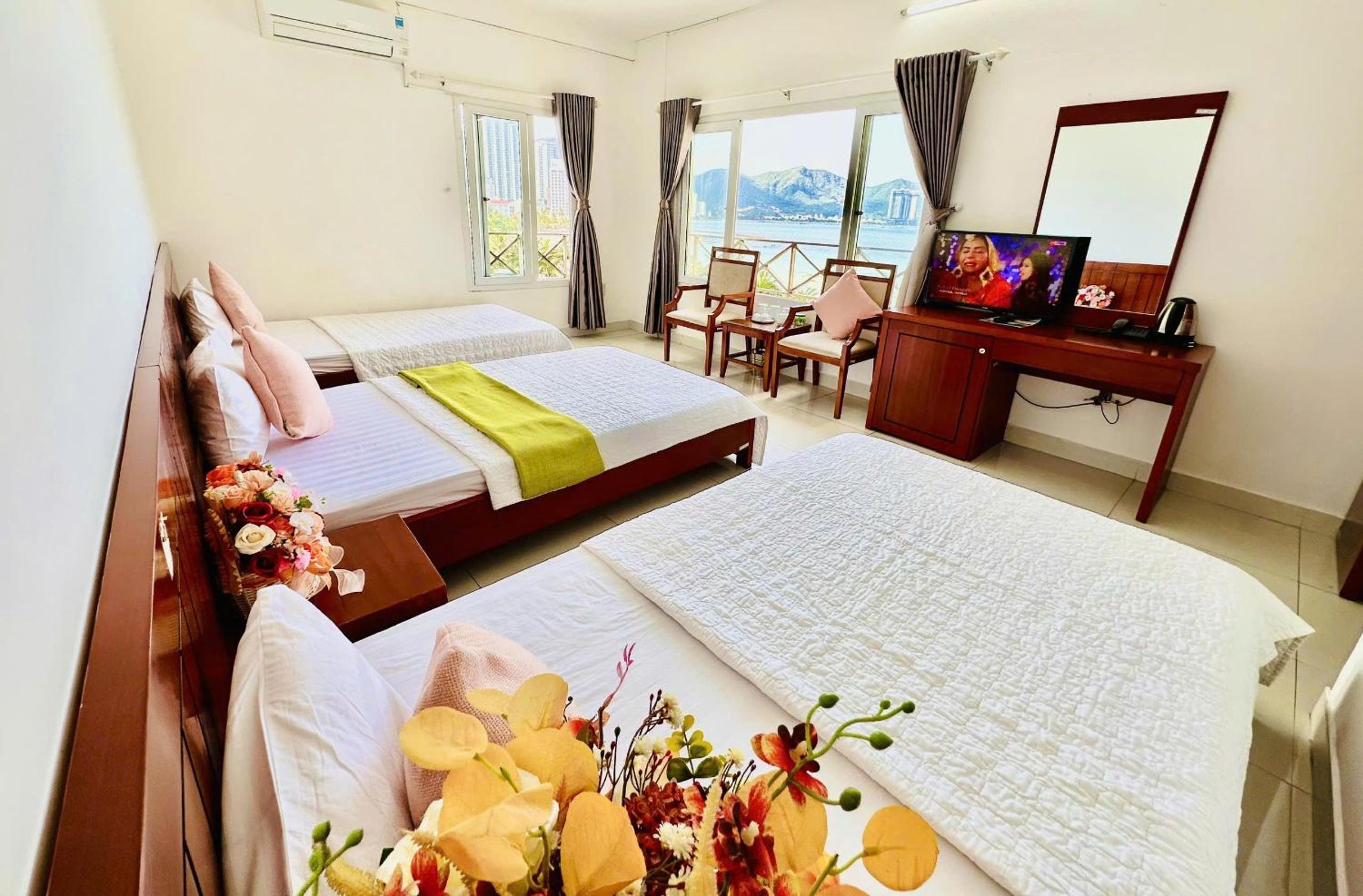 Each room at Hòn Chồng Hotel comes with a balcony, private bathroom, flat-screen TV, and air conditioning, ensuring a comfortable stay for all guests.