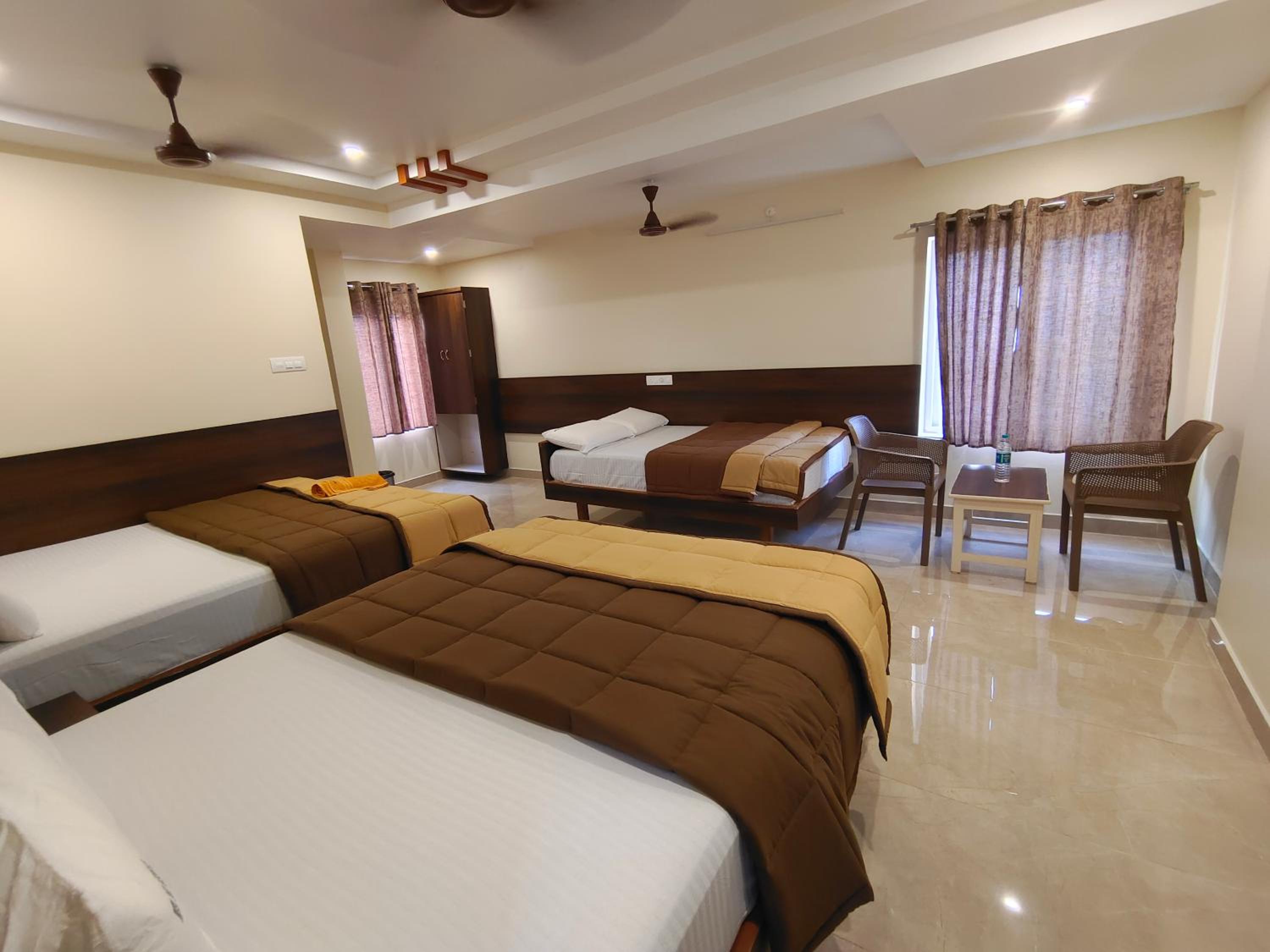 Staffs were so helpful..My mother and I visited Tirupati from Nepal last week..Unfortunately during that time, my mother met with an accident and she fractured her leg. We were new to the place and we didn't know anyone there. My mother couldn't walk and we also faced language problem while visiting hospital for her treatment. But our safe place was this hotel. As there was no wheelchair in hotel, they carried my mother in chair to reach our hotel room as she was unable to walk on her own and helped us a lot to safely reach airport to return our home. Will recommend this place to anyone who is planning to visit Tirupati. Hotel is in perfect location i.e. nearby bus station and market.