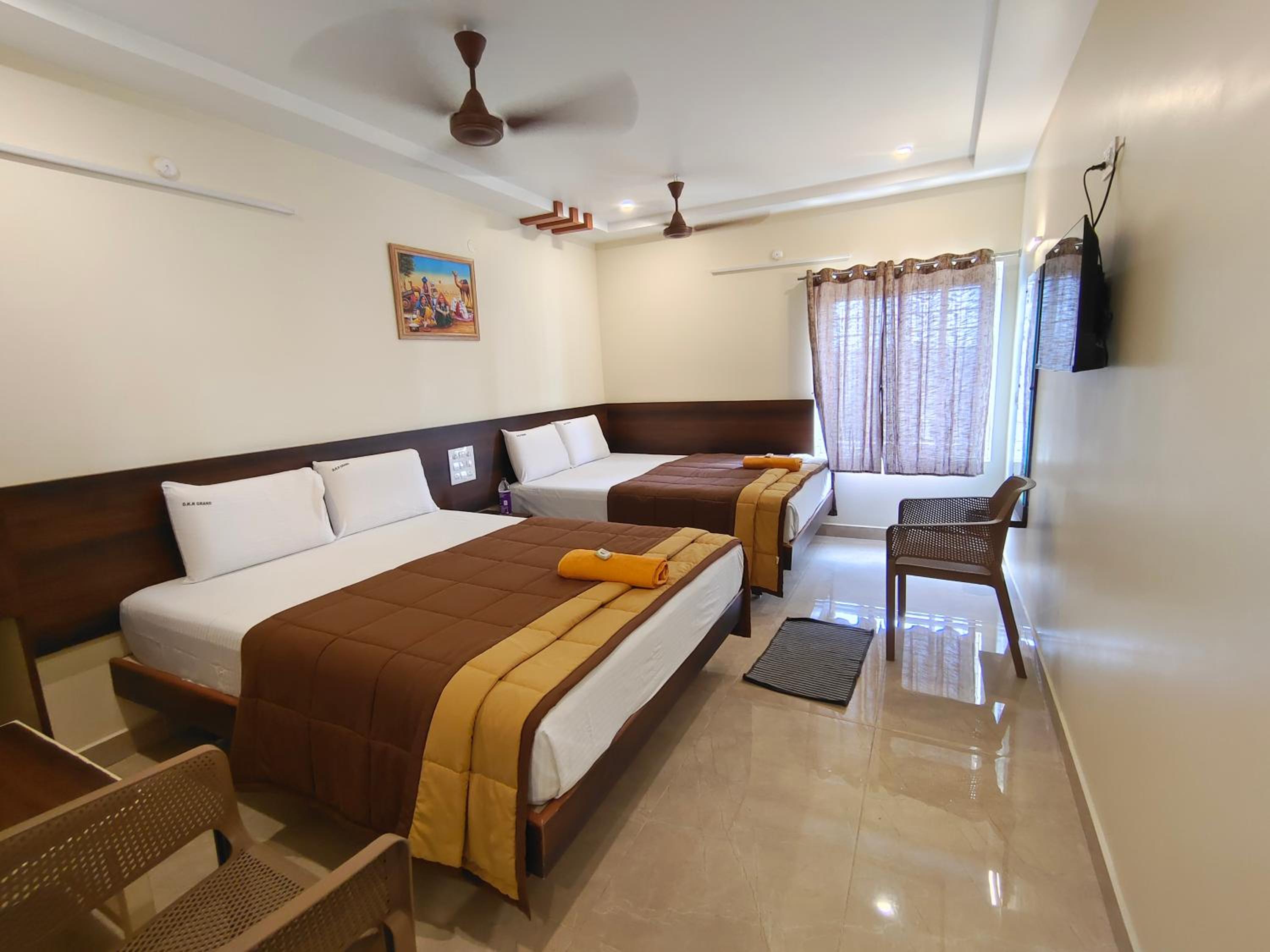 Experience mountain views from the comfort of your room at HOTEL DKR GRAND. Enjoy modern amenities such as free WiFi and room service during your stay. Located near popular attractions like Srikalahasti Temple and Tirupati Airport, our hotel offers convenience and comfort. Don't miss out on our delicious vegetarian breakfast to start your day right. Book now for a memorable stay at HOTEL DKR GRAND.