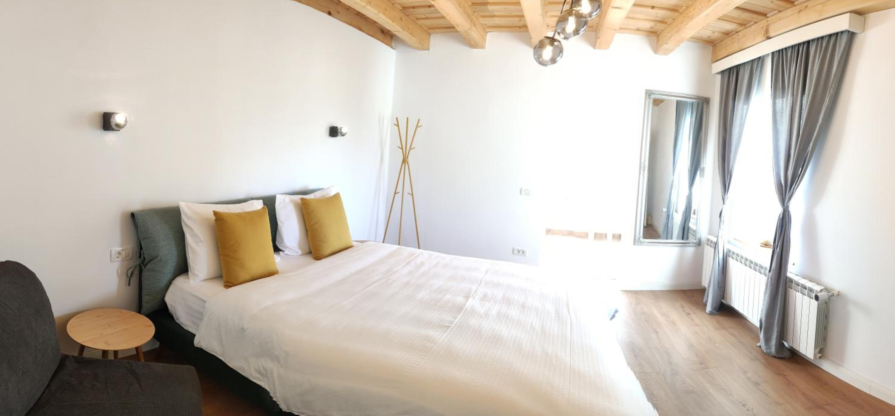 Camera spatioasa, baie mare, zona linistita. Nu am avut mic dejun, dar am avut acces la locul de luat masa.