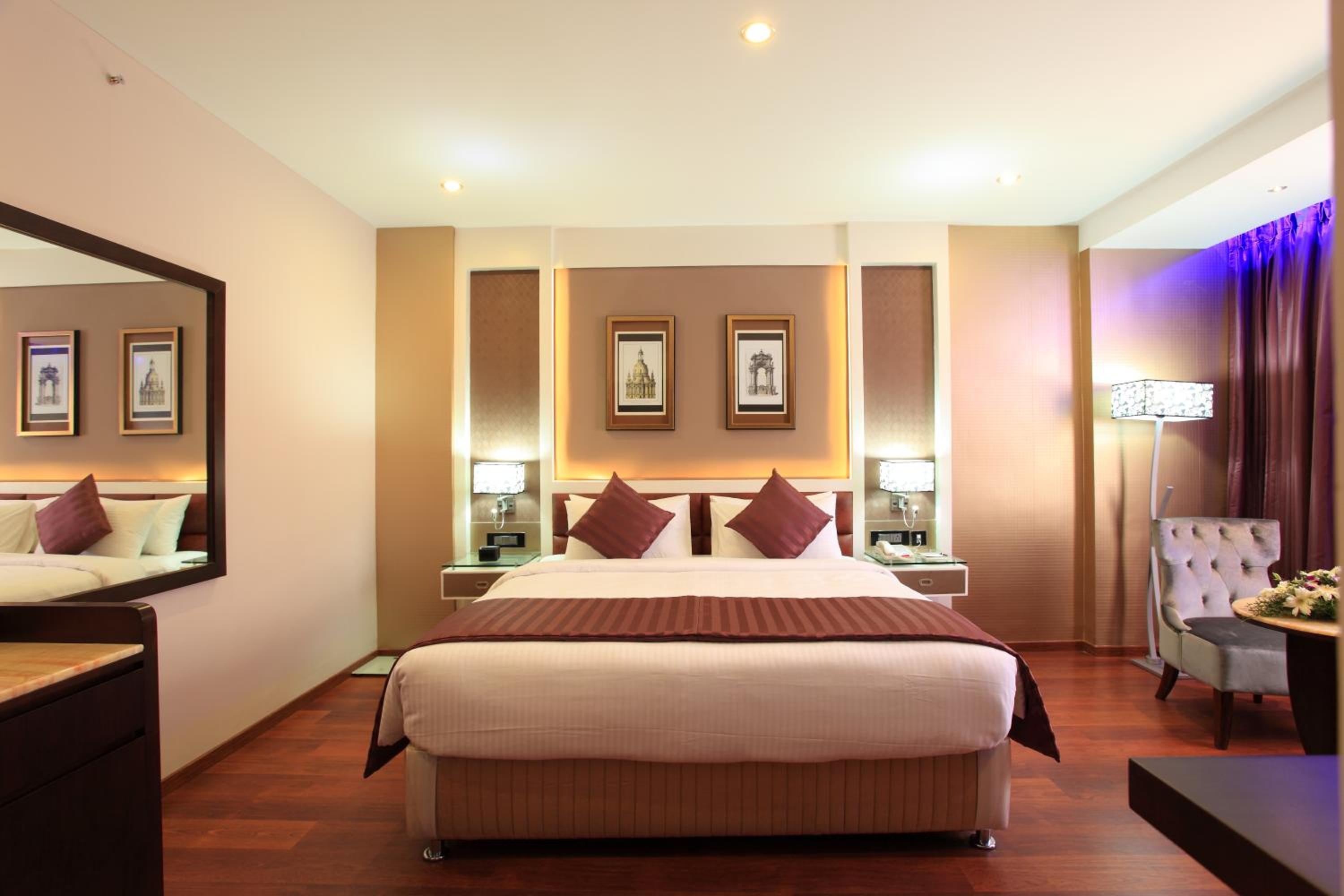 The Pgs Vedanta in Cochin offers an indoor swimming pool, a fitness centre, and free WiFi access. Each air-conditioned room is equipped with modern amenities such as a satellite TV, minibar, and electric kettle. Guests can also enjoy city views from their rooms.
