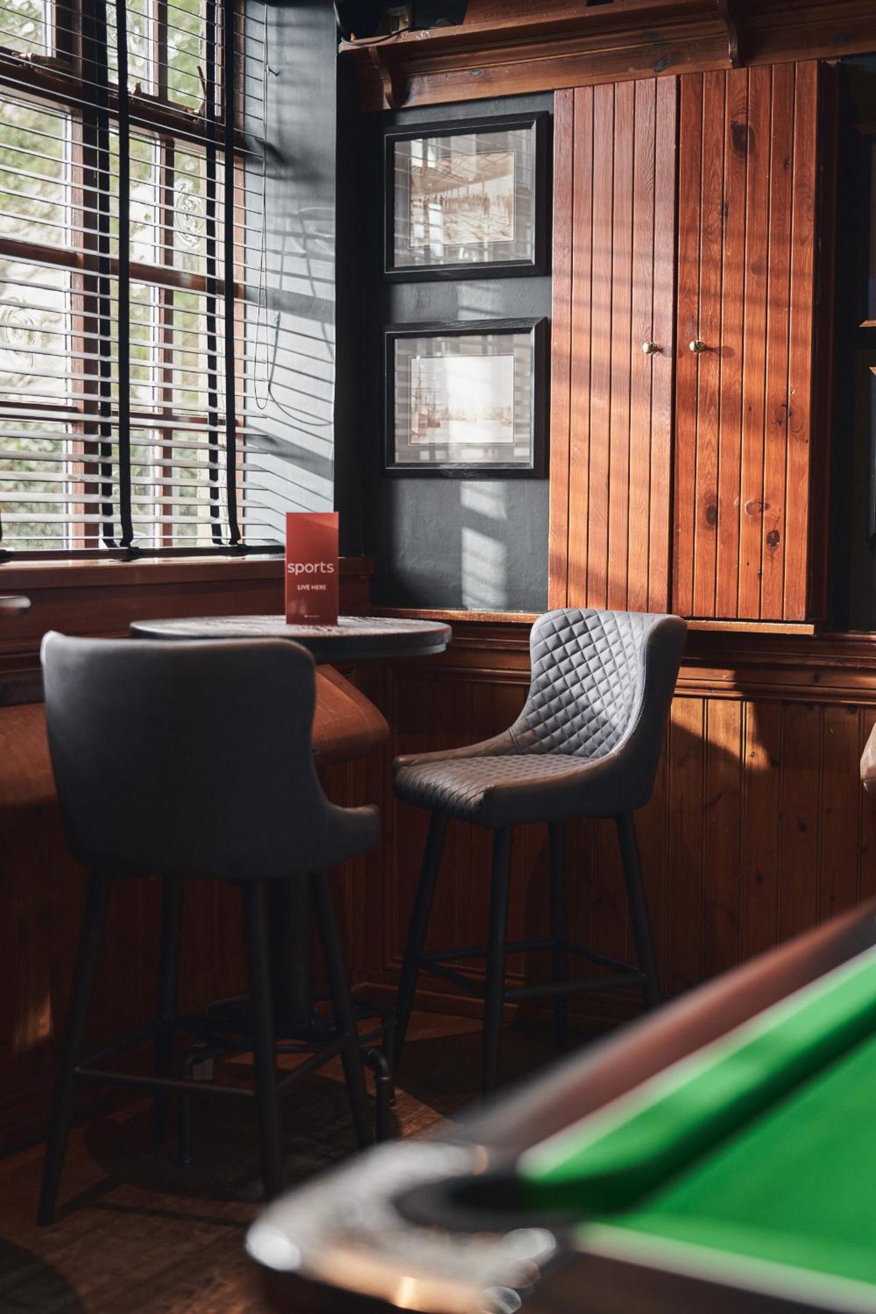 Public bar with pool table, large flat-screen TV, Lounge Bar, and Restaurant serving freshly prepared food.