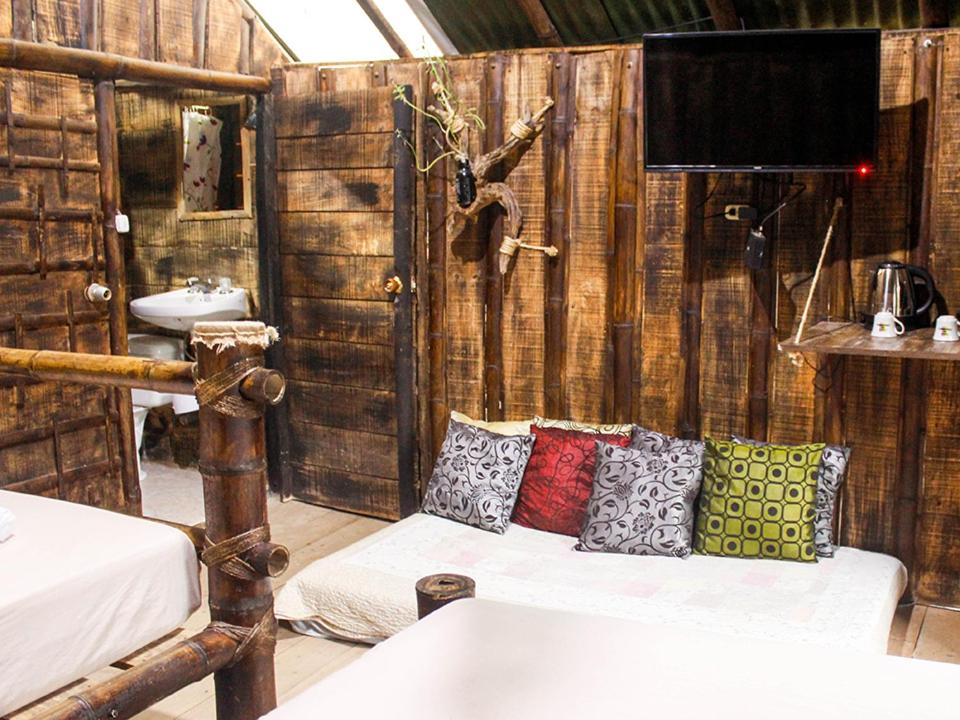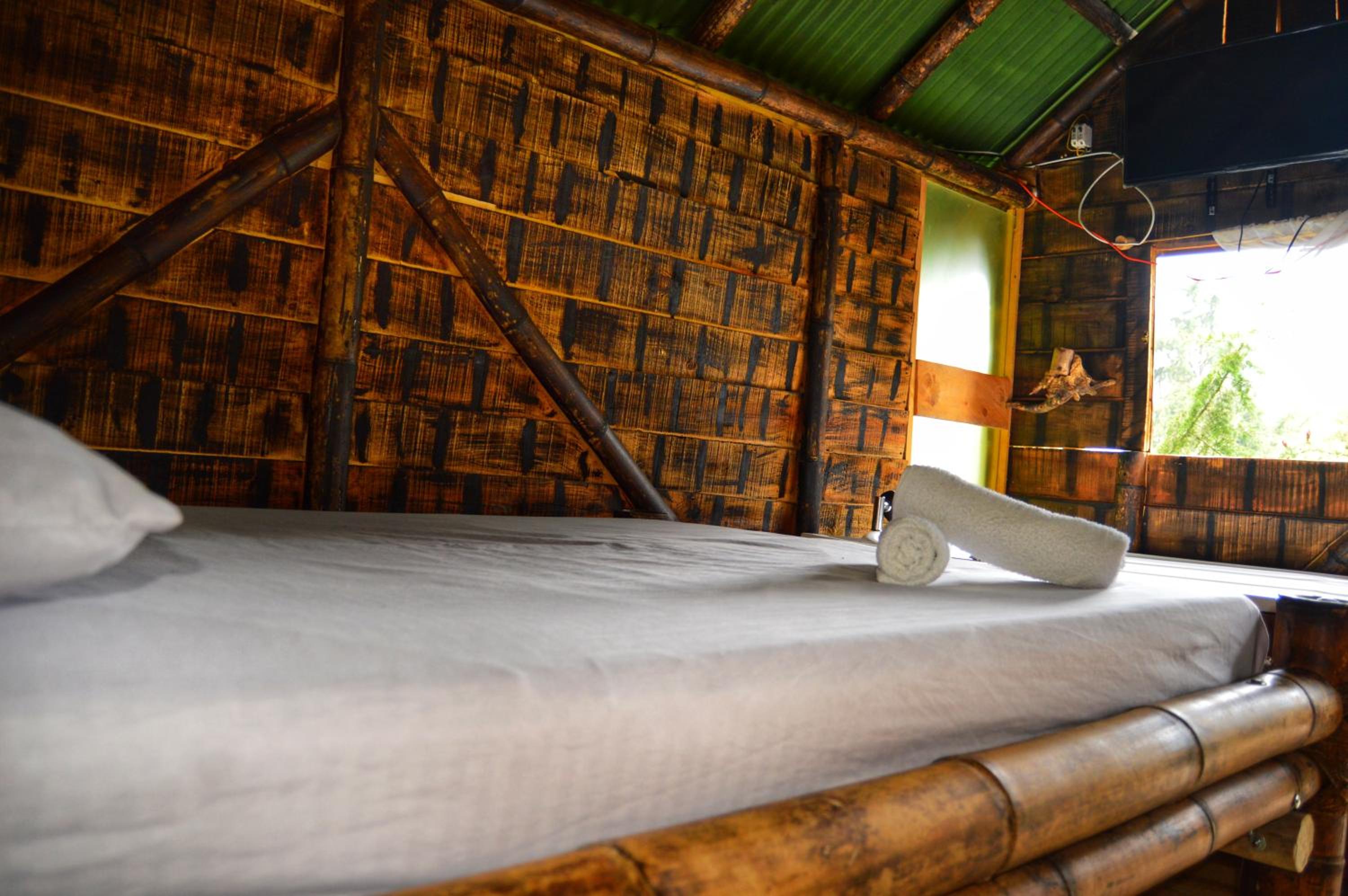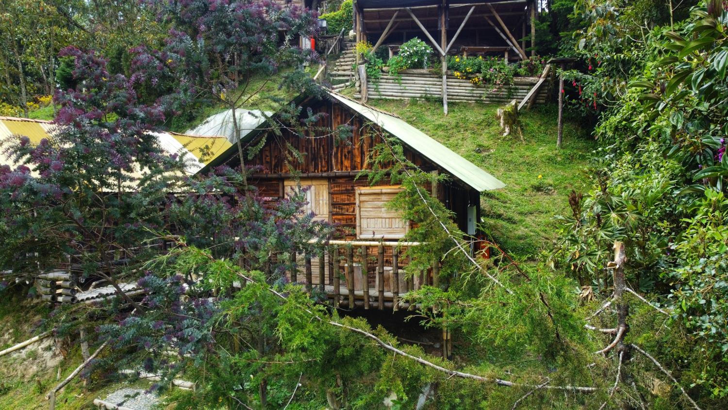 Tranquil Retreat: Escape the city hustle and unwind in our cozy cabins surrounded by lush gardens and a peaceful terrace.