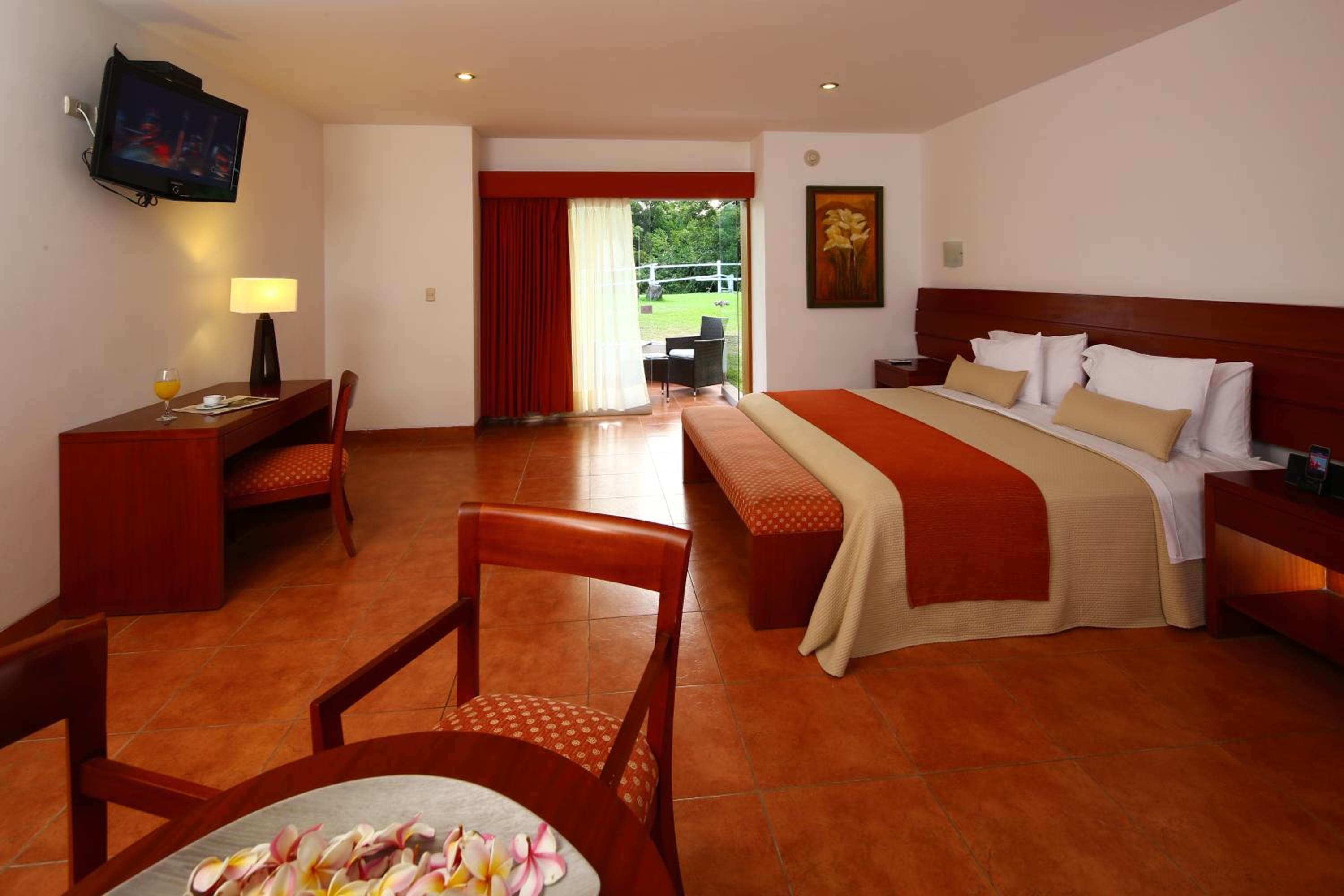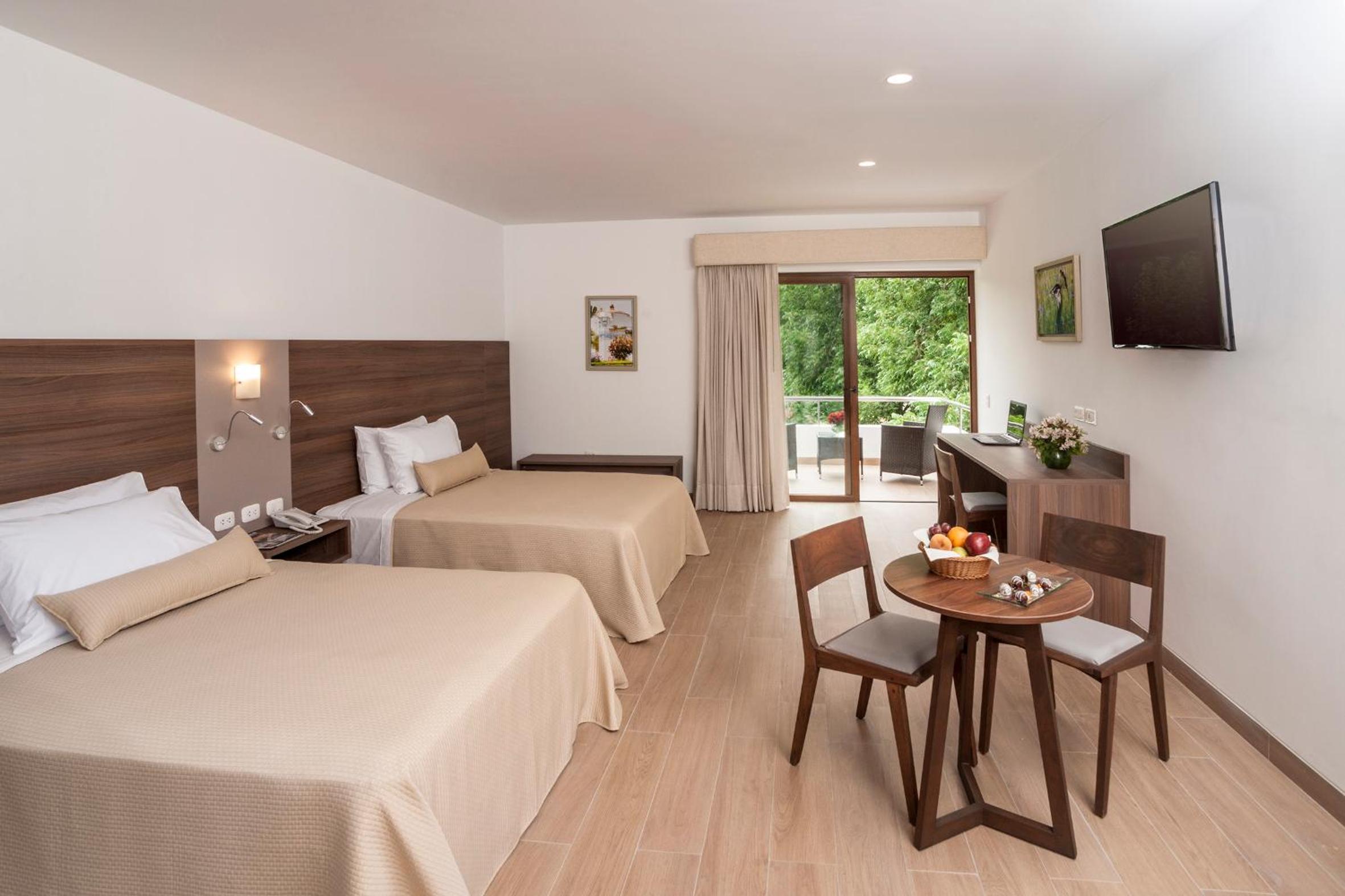Las Dunas offers rooms with vaulted ceilings, large windows, and air conditioning. Some rooms even feature private terraces with stunning views of the lake or pool.