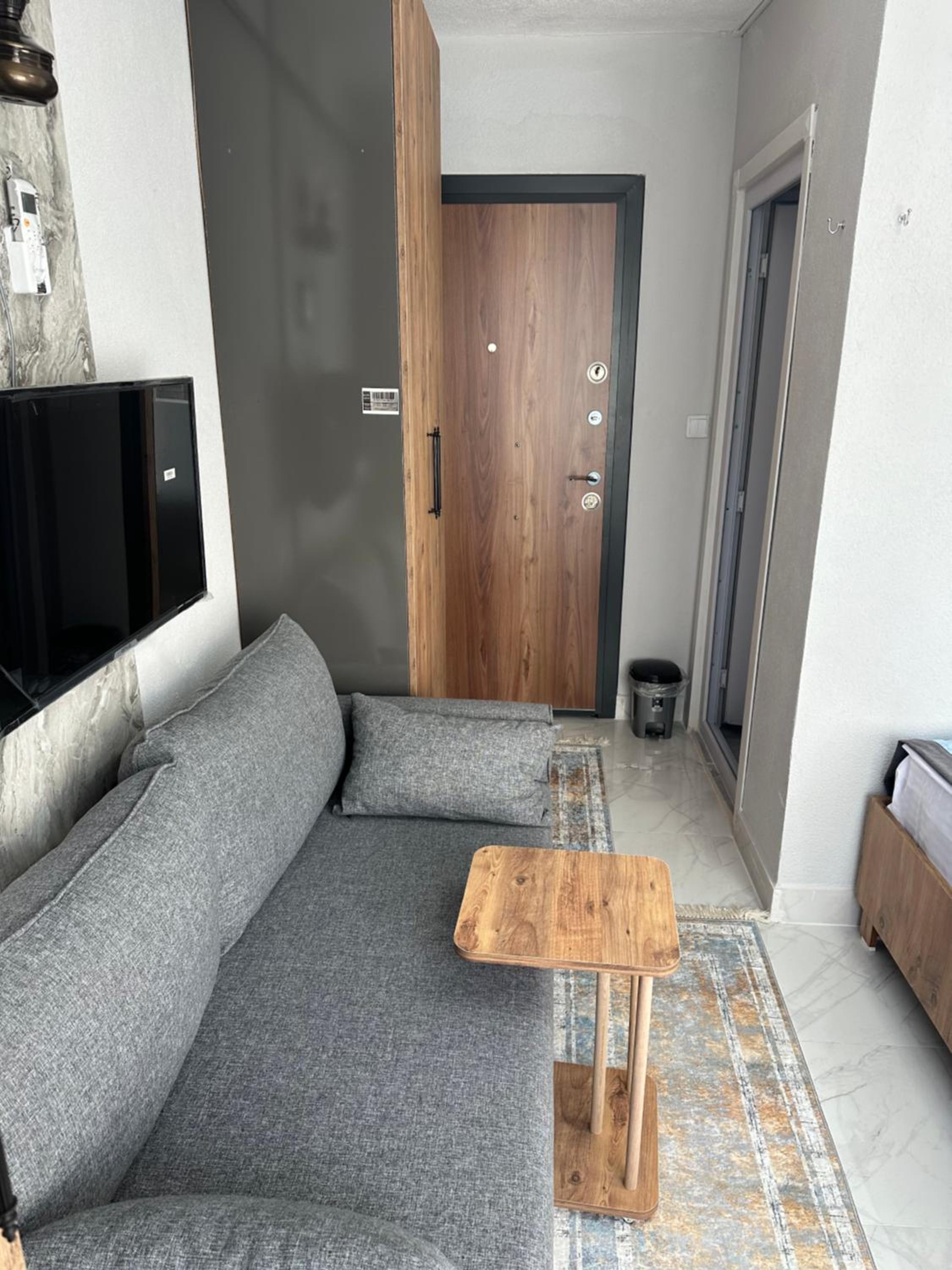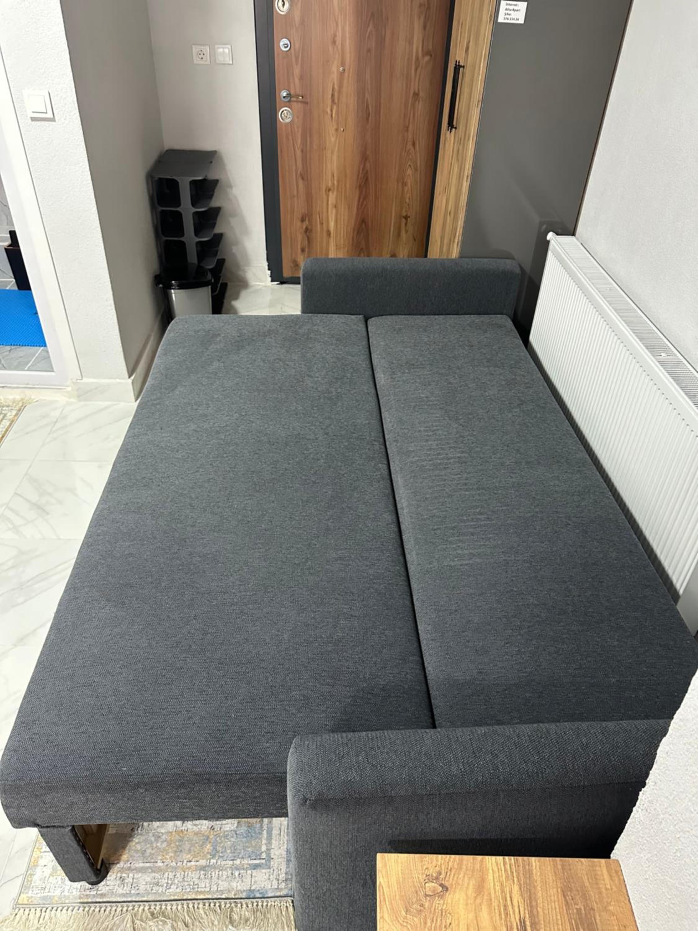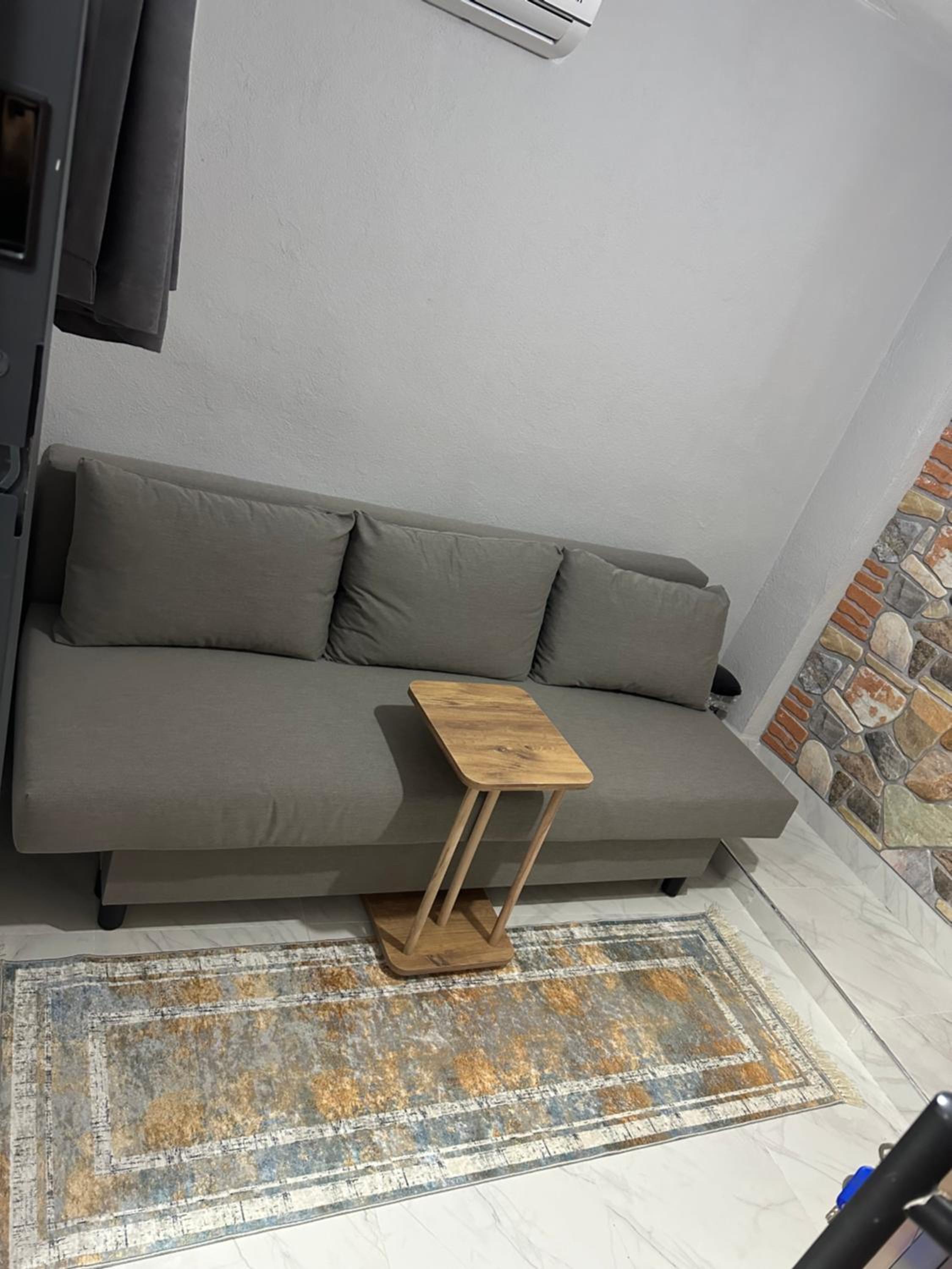 We didn’t like that guests are required to leave their shoes in the building hallway outside the apartment — in winter this means the shoes stay cold. The air conditioner was very weak and could not heat the apartment properly. There is a dishwasher, but not enough dishes to use it comfortably, and no dishwasher detergent was provided. Additionally, something in the bathroom was leaking throughout our stay.