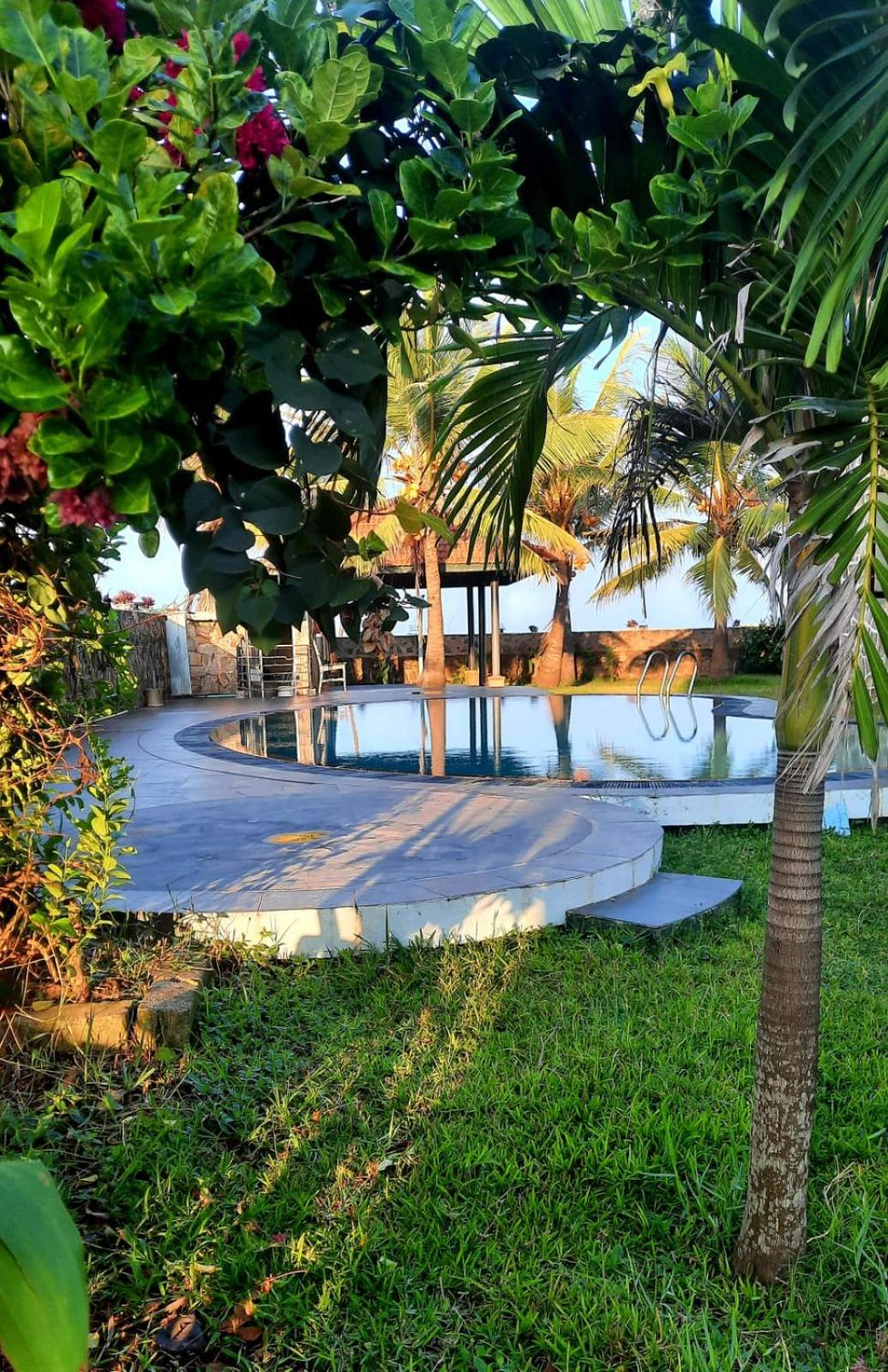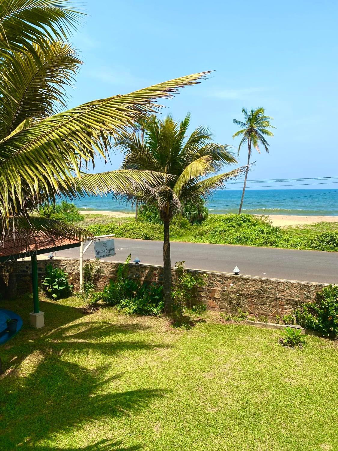 Es ist ein sehr schönes Hotel, das nur durch eine Straße vom Strand getrennt ist. Es ist von einem wunderschönen Garten mit Pool umgeben und liegt am Rande eines Dorfes, wo man Sri Lanka noch sehr authentisch erleben kann – weit weg von Tourismus und Lärm.
