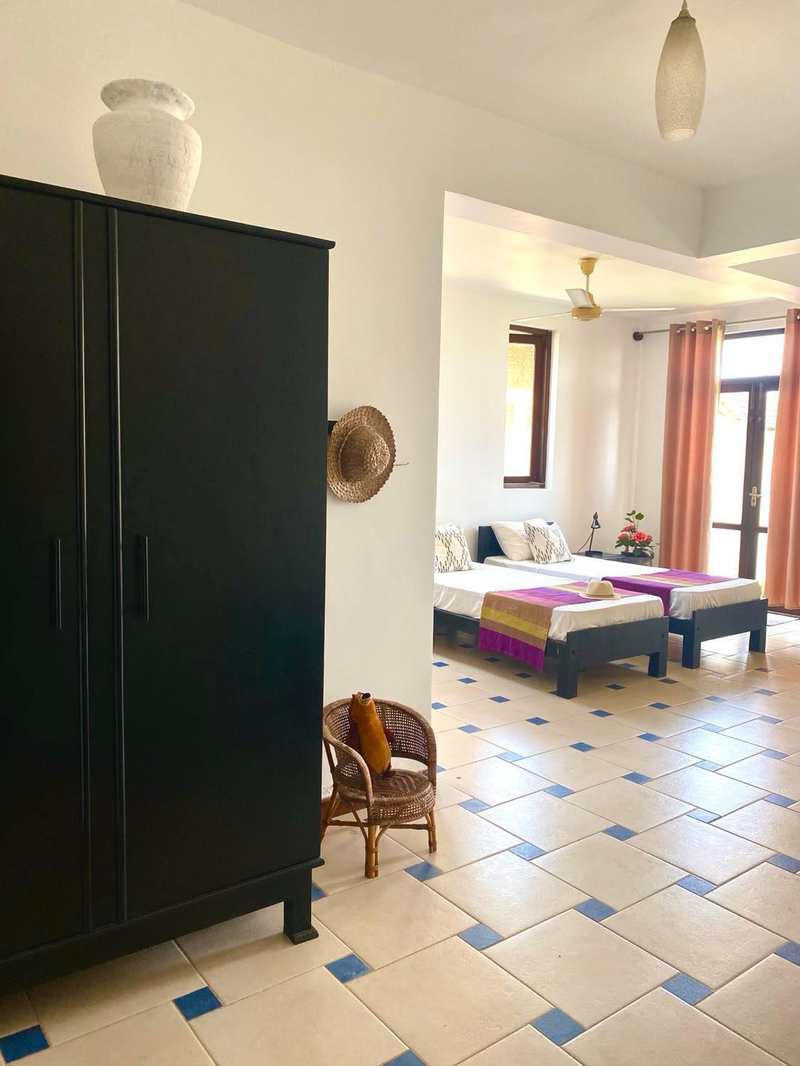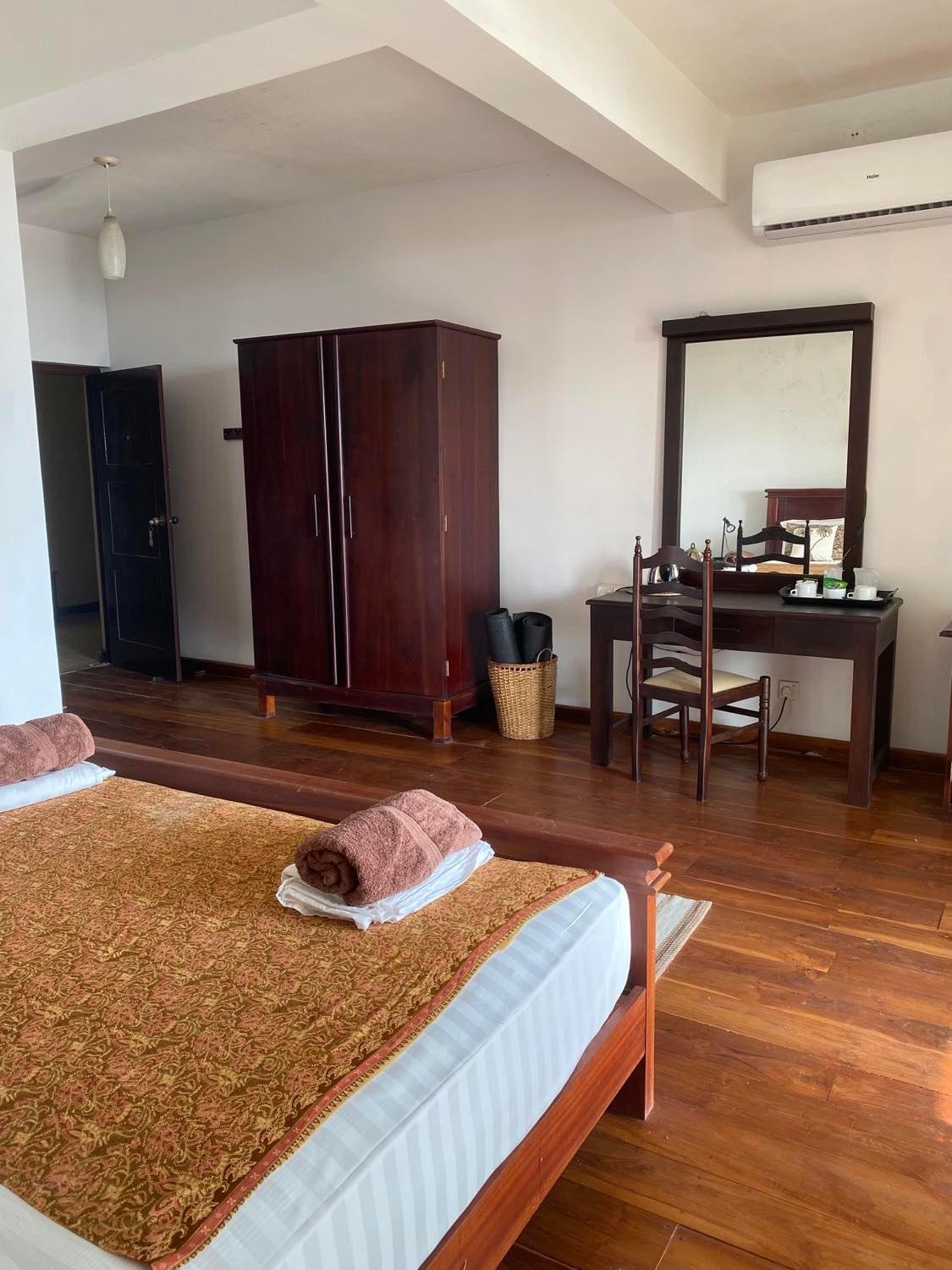 Très belle chambre, propre et confortable. Vue sur la mer. Belle plage, propre, devant l'hébergement. La ville de Chilaw, à 7km mérite d'y passer faire un tour. Le bus s'arrête juste devant l'hébergement.