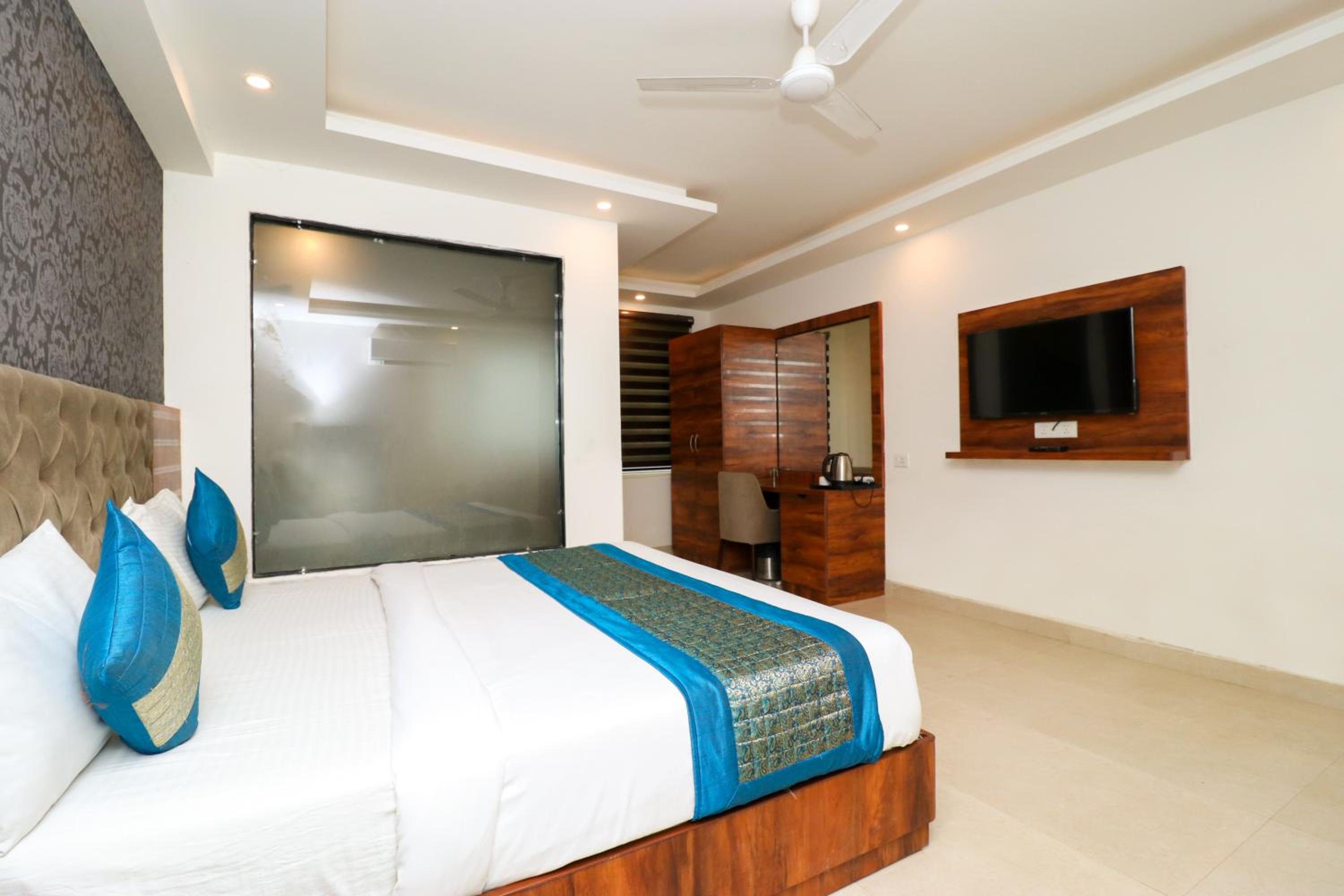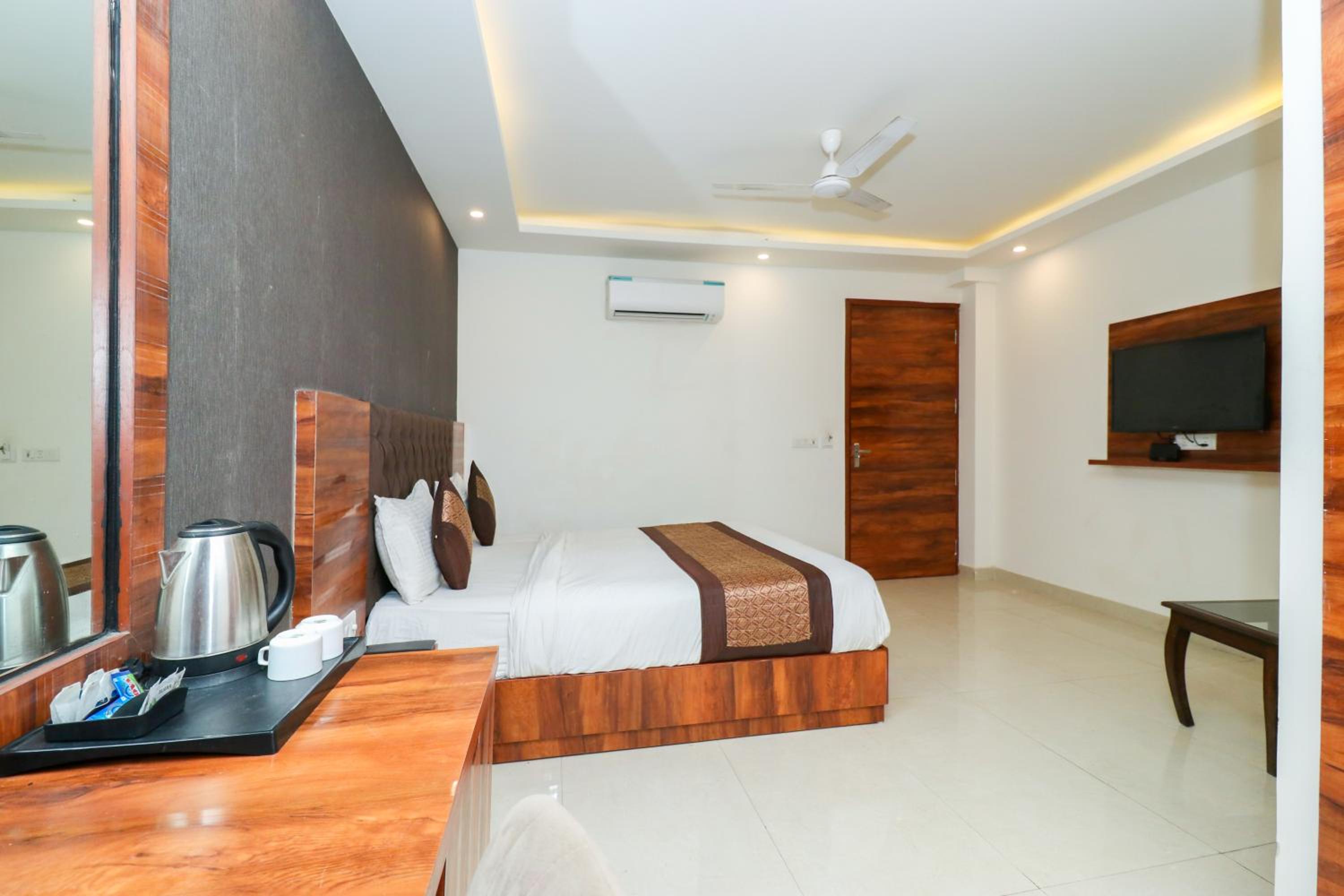 Airport pickup was reliable even though our flight was significantly delayed. The room was very clean, and the hot shower worked perfectly. It was our first night in India, and we felt safe and comfortable.
