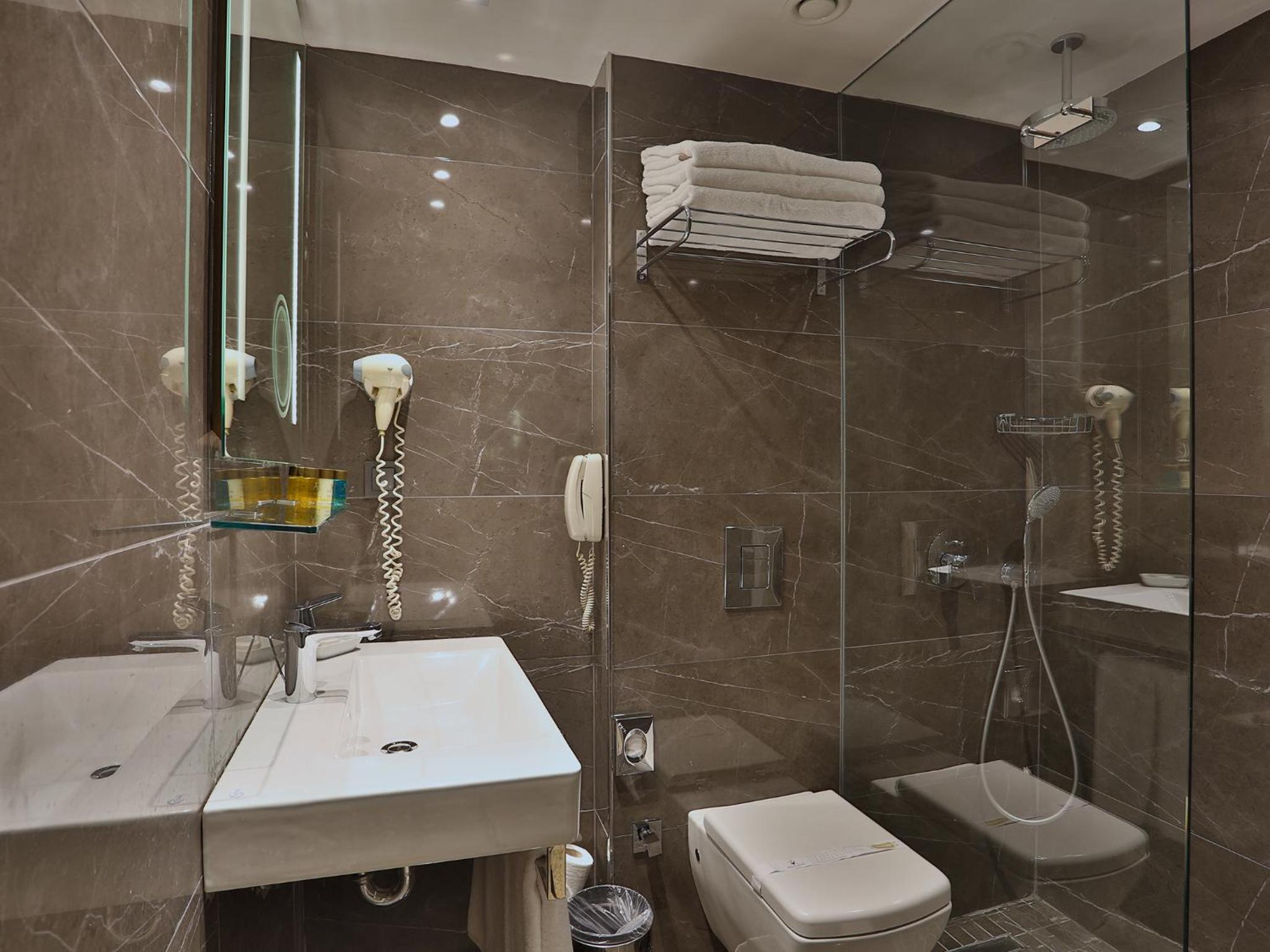 Bathrooms are little bit tiny but it's not bad in general. Sauna was crowded and couldn't use it.