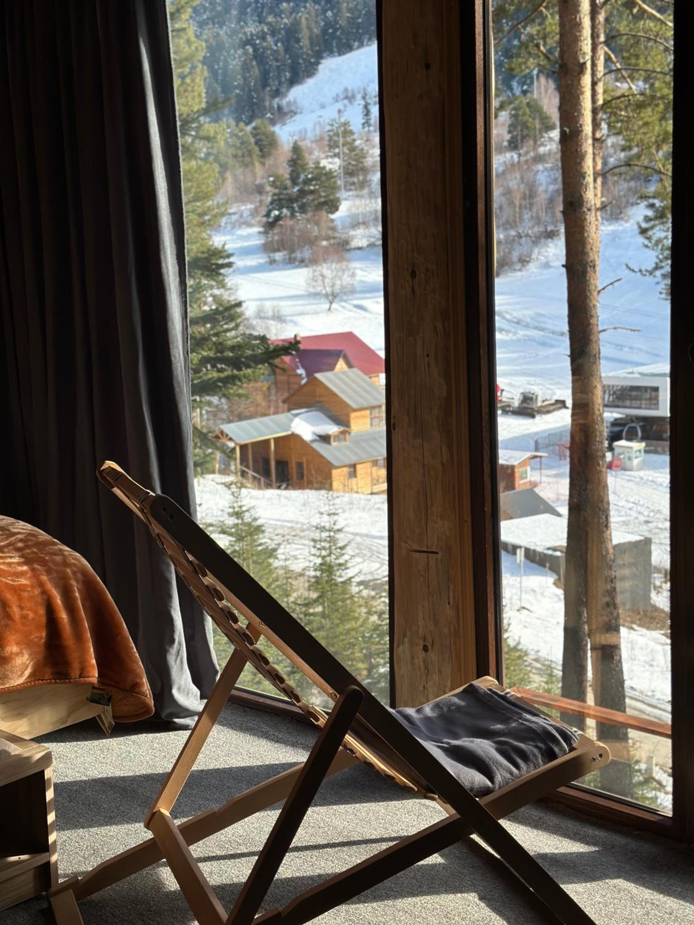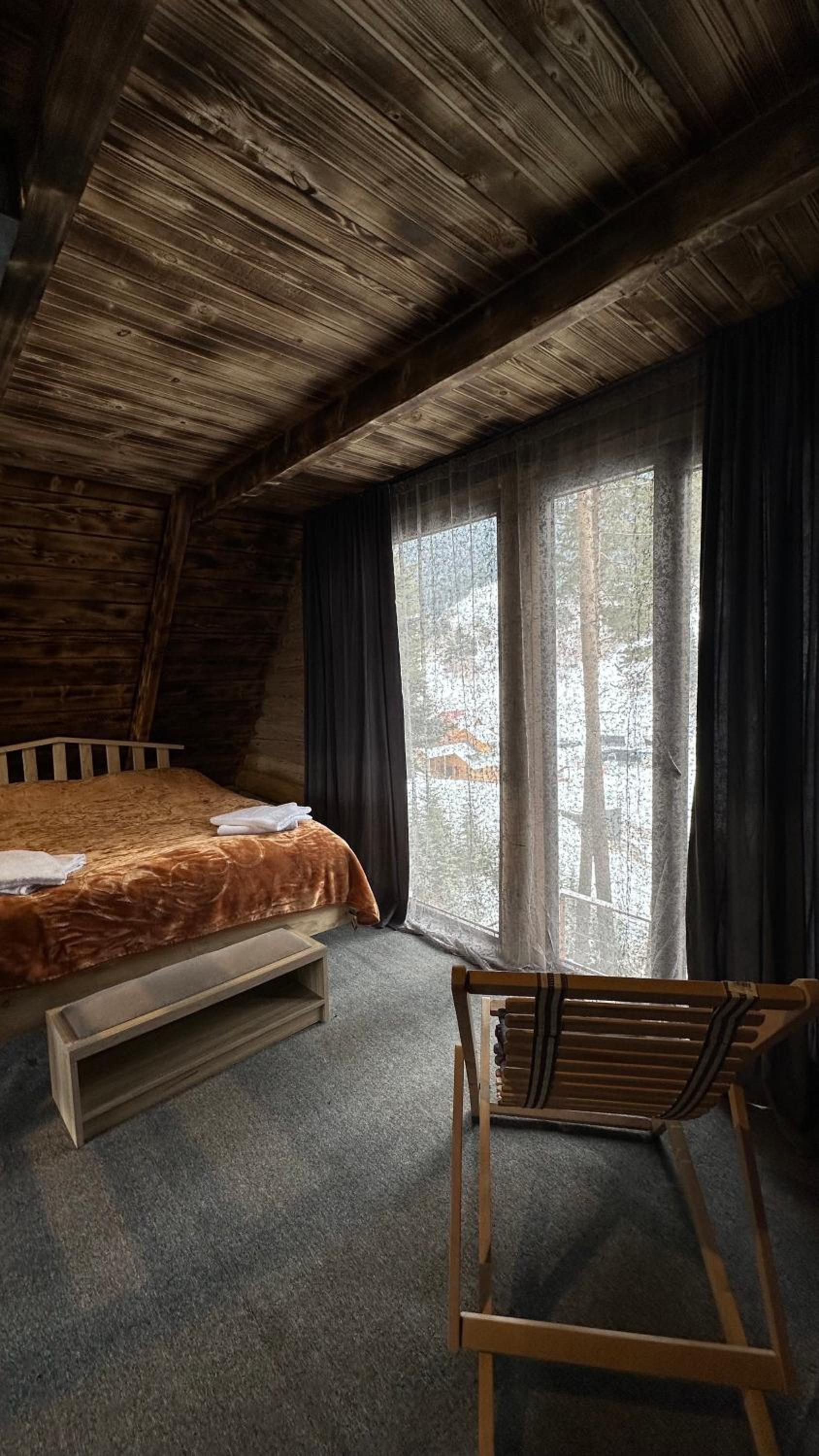 The hut itself is the perfect blend of rustic charm and modern comfort. It’s cozy, built with beautiful wood, and feels authentically Georgian. On one side, you have the iconic panorama of the snow-capped Caucasus Mountains. On the other, a peaceful and beautiful forest view makes you feel completely immersed in nature. The hut itself is the perfect blend of rustic charm and comfort. It’s cozy, built with beautiful wood, and feels authentically Svan. Now, for full transparency: the bathroom is indeed very compact, and we noticed the kitchen could have used a more thorough clean. However, this is where perspective is key - compared to all other properties we saw in Mestia, this hut was hands-down the best option we found, and these minor points were far outweighed by everything else. Awesome outdoor spaces - huge terrace overlooking the mountains, hammock for relaxing and a great BBQ area.