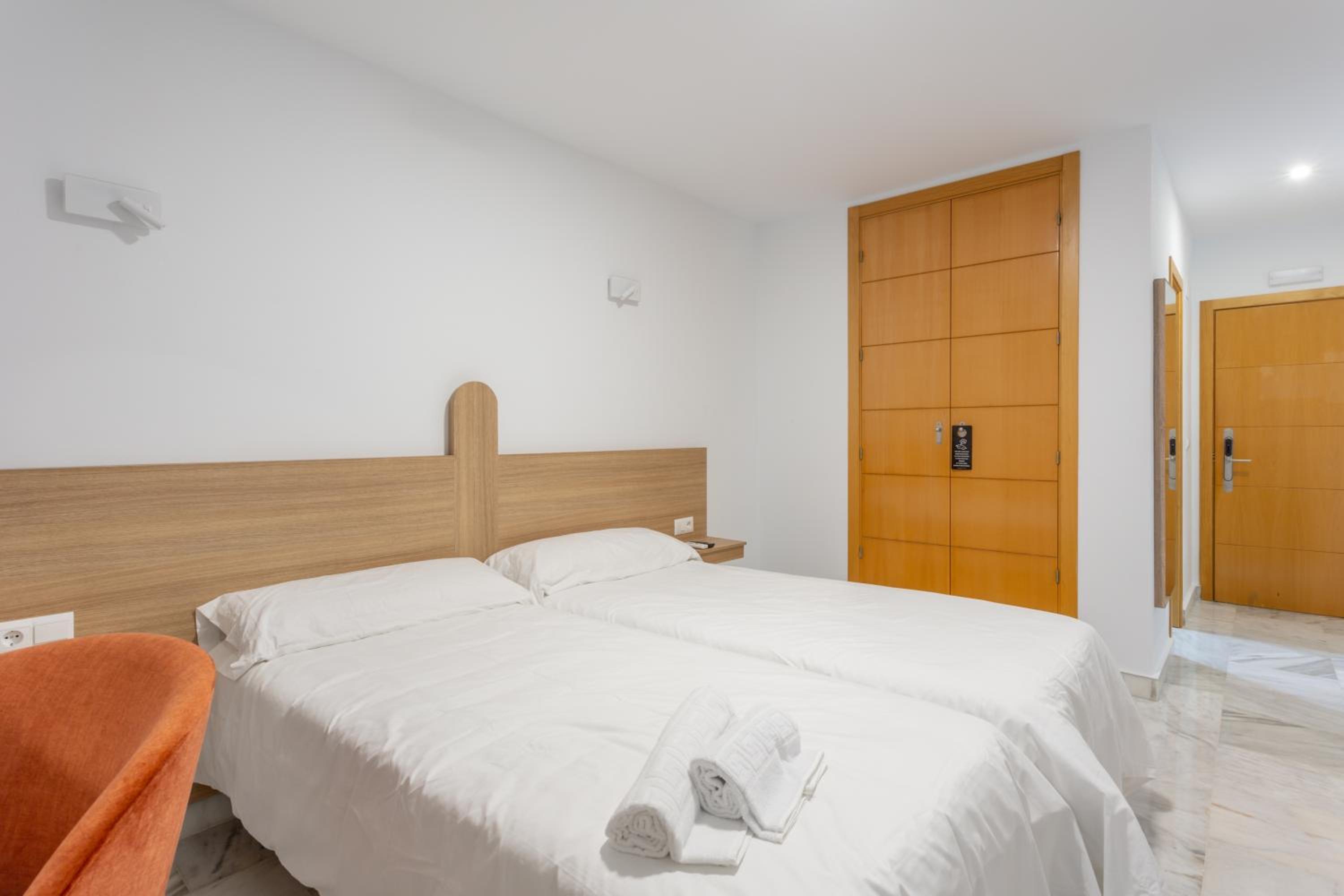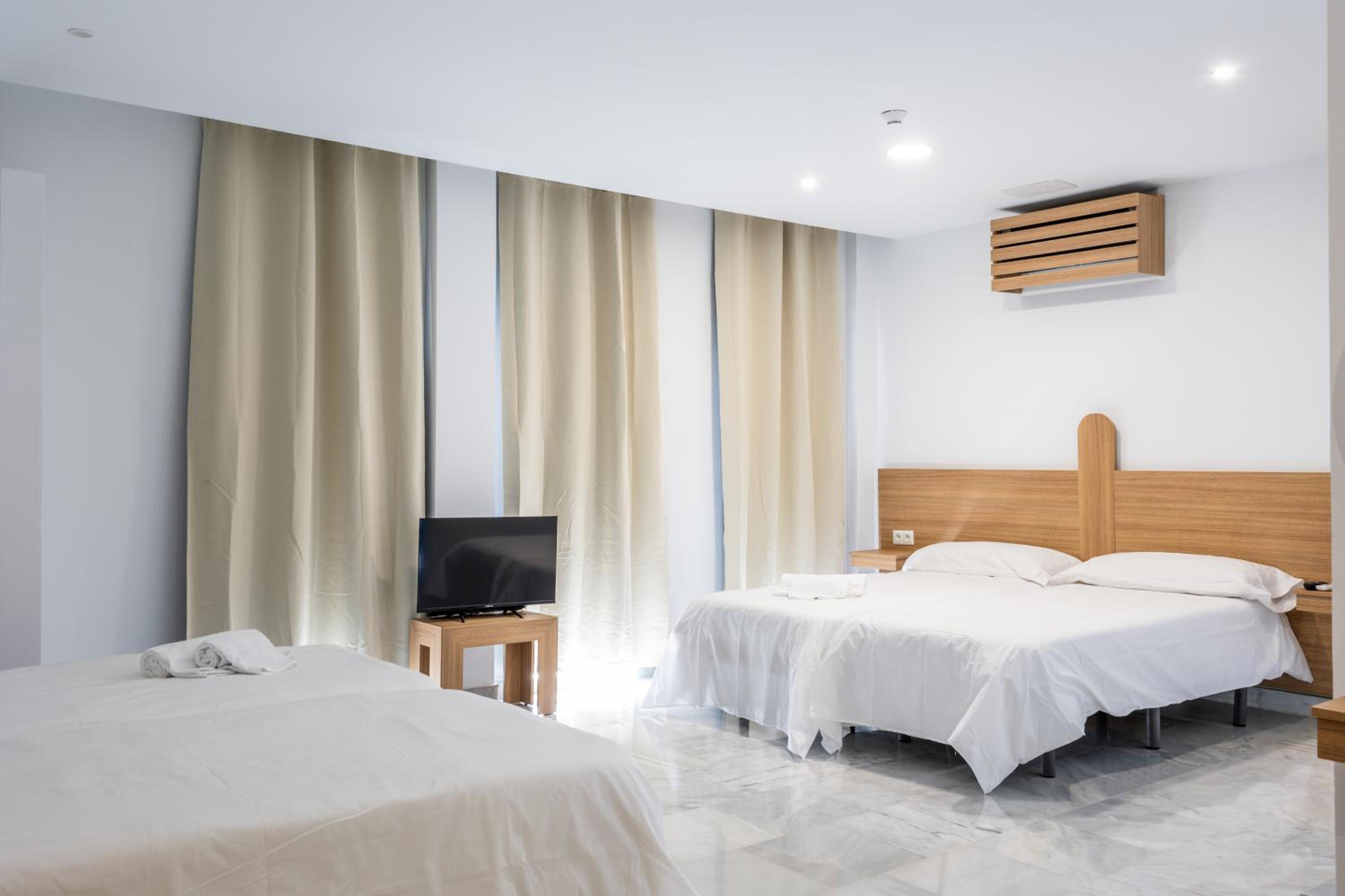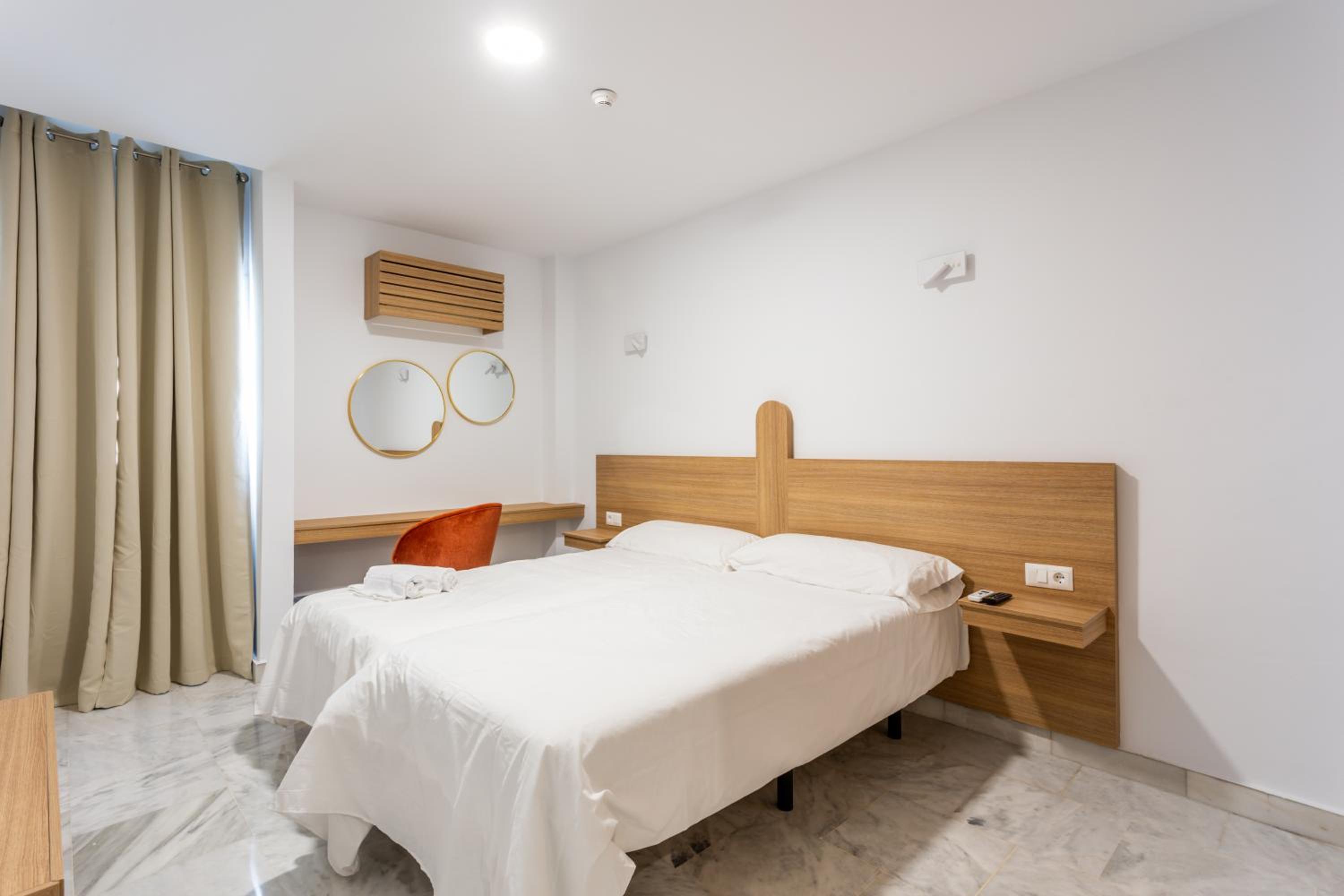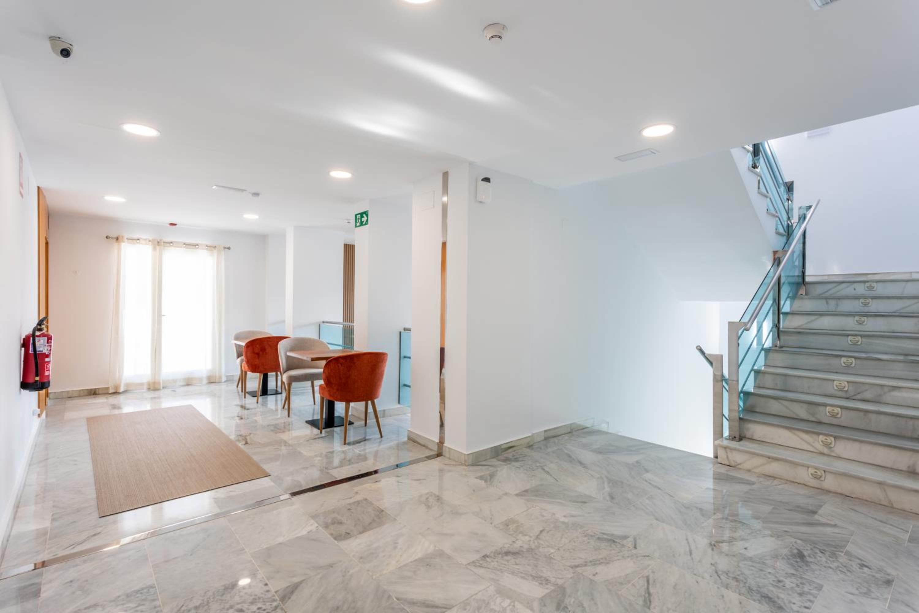 En ningún momento había recepcionista. Pregunté por la mañana a las limpiadoras porque necesitaba un secador (que pensaba q venía en el baño) y me dijeron que no hay recepcionista. Si necesitamos algo hay q llamar por teléfono y viene el servicio de limpieza a atenderte. Te tienes que buscar la vida para buscar tu habitación (que no tiene misterio). Pero, por ejemplo, una pareja extranjera por la noche estuvo bastante tiempo esperando en recepción a que alguien les atendiera y tuvimos que explicarle que tenían que ubicarse de manera autónoma. También las camas eran individuales en vez de matrimonio y no había secador en el baño. La habitación eran individuales un poco fría pero el aire acondicionado lo arregla. El desayuno deja un poco que desear ya que el mínimo son 4€ y es pan congelado que pusimos un buen rato en la tostadora, la leche la cogimos de una máquina de autoservicio y salía agua mezclada con leche… con 4€ me como una pedazo de tostada con jamón en mi pueblo. El ruido también es destacable, ya que se escucha todo de los demás huéspedes y persona de limpieza en el pasillo.