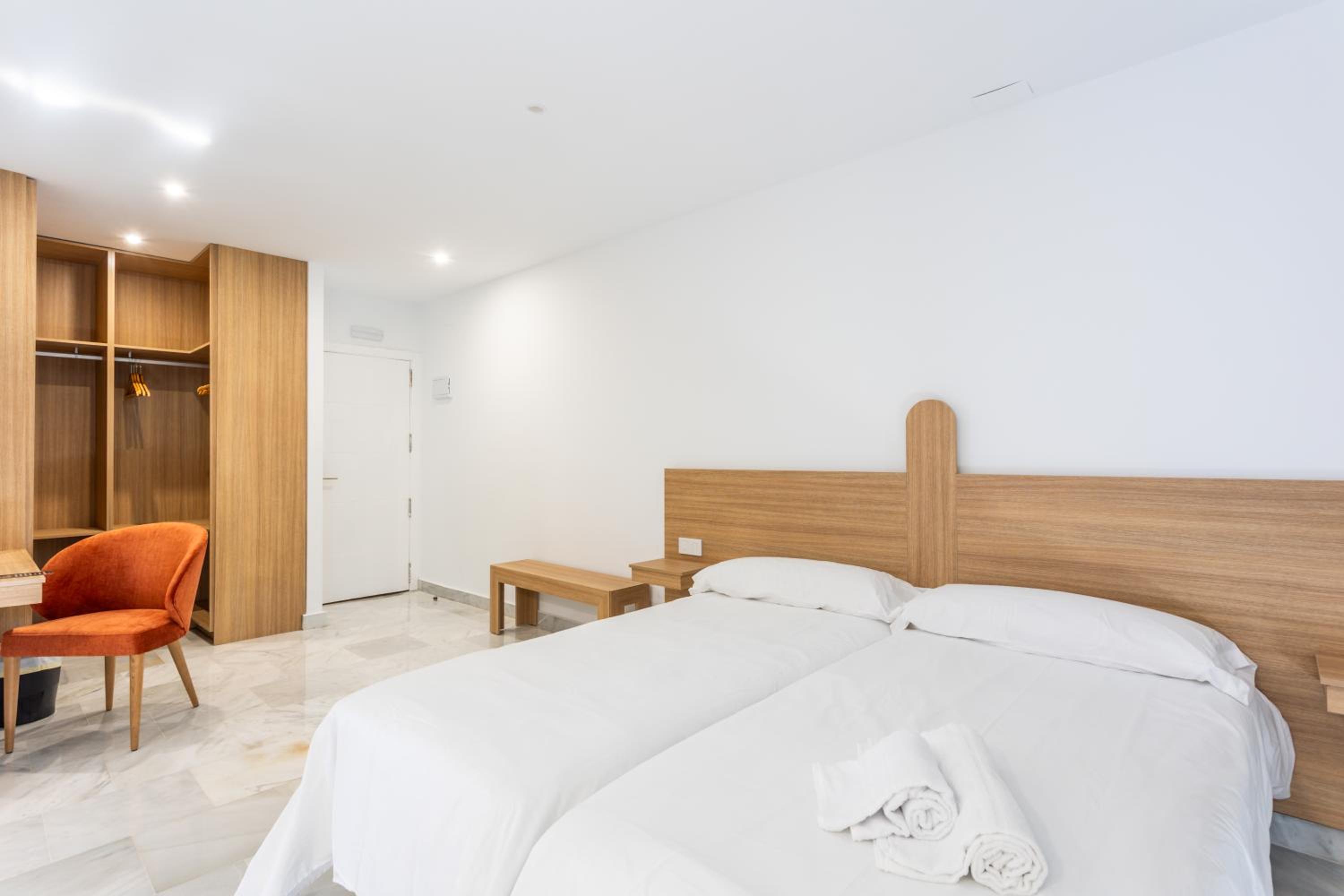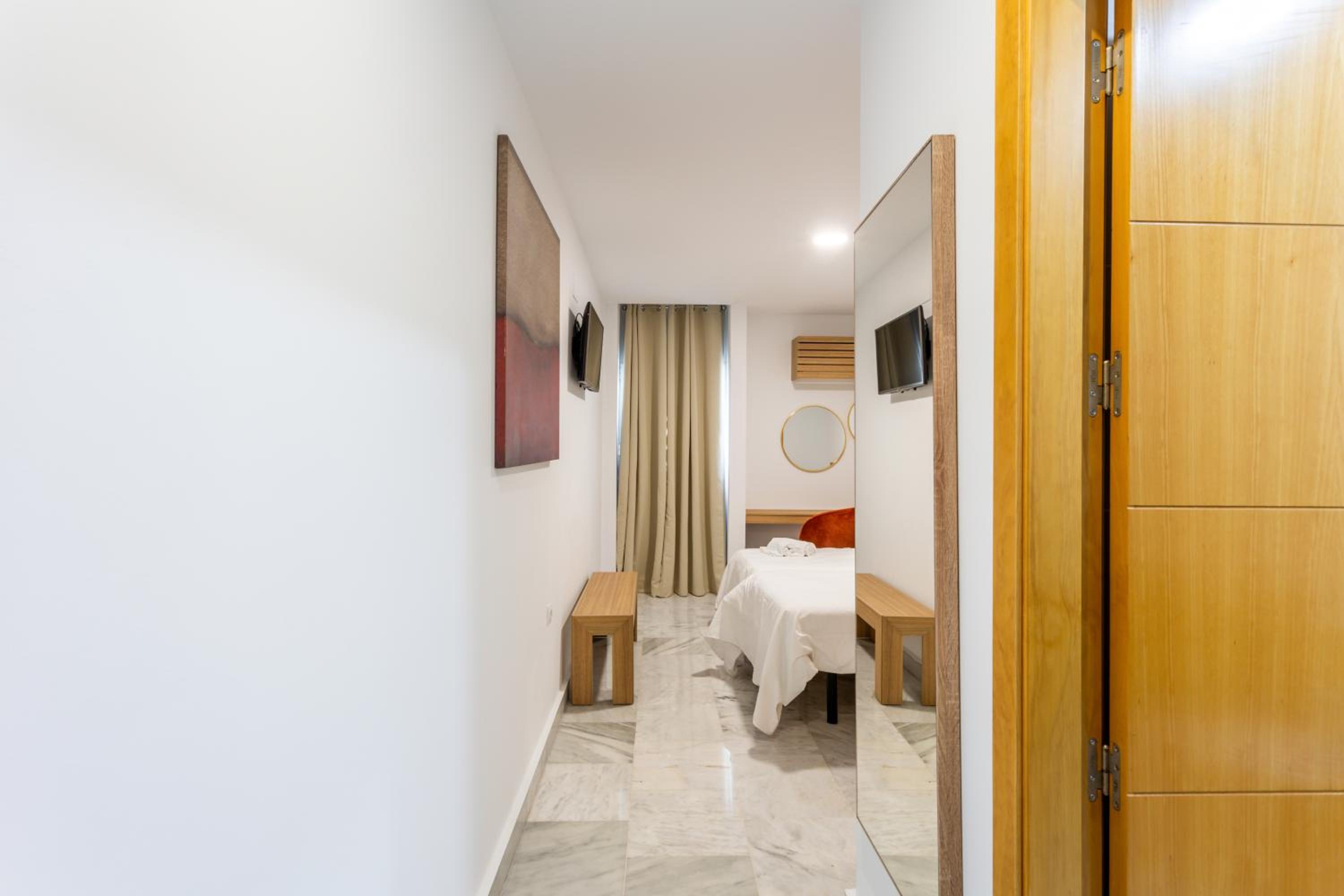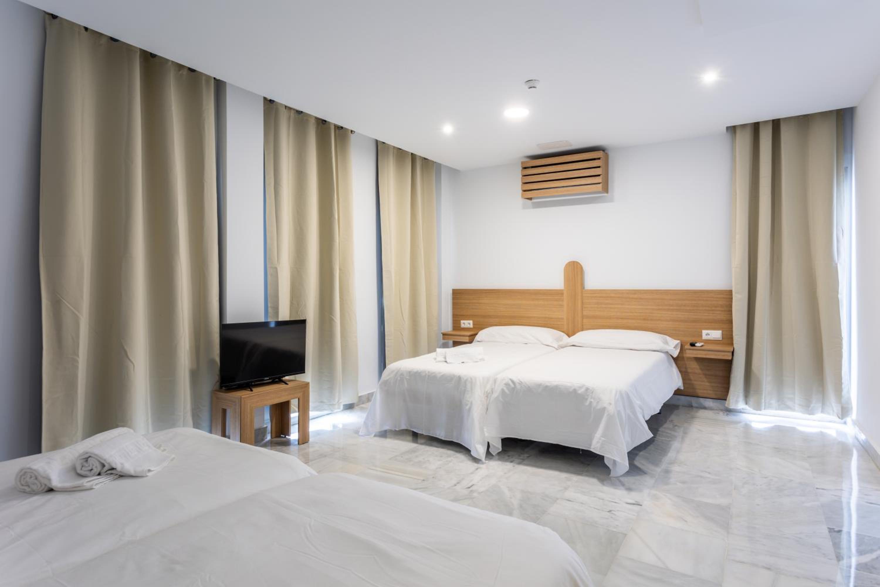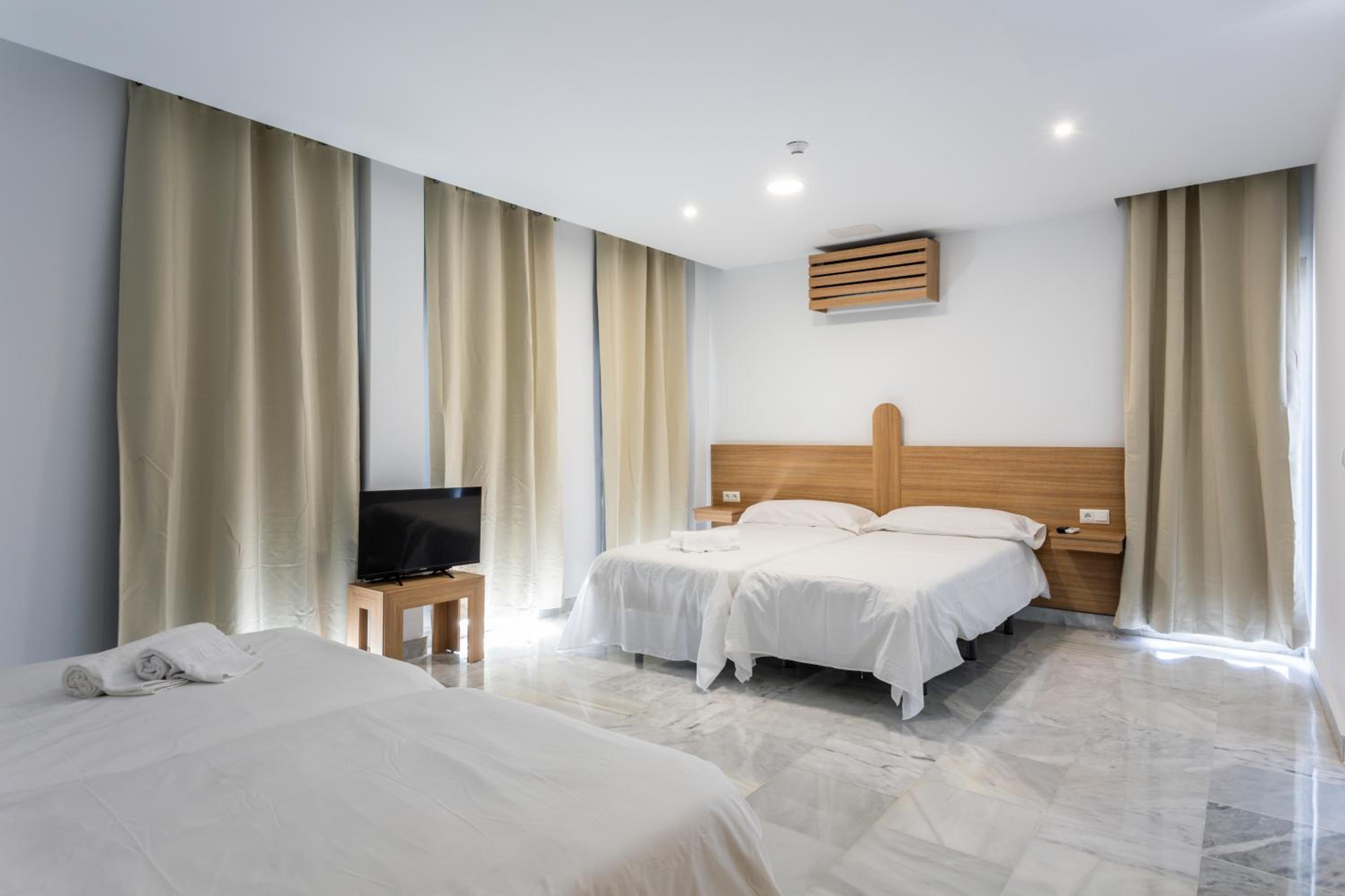 En ningún momento había recepcionista. Pregunté por la mañana a las limpiadoras porque necesitaba un secador (que pensaba q venía en el baño) y me dijeron que no hay recepcionista. Si necesitamos algo hay q llamar por teléfono y viene el servicio de limpieza a atenderte. Te tienes que buscar la vida para buscar tu habitación (que no tiene misterio). Pero, por ejemplo, una pareja extranjera por la noche estuvo bastante tiempo esperando en recepción a que alguien les atendiera y tuvimos que explicarle que tenían que ubicarse de manera autónoma. También las camas eran individuales en vez de matrimonio y no había secador en el baño. La habitación eran individuales un poco fría pero el aire acondicionado lo arregla. El desayuno deja un poco que desear ya que el mínimo son 4€ y es pan congelado que pusimos un buen rato en la tostadora, la leche la cogimos de una máquina de autoservicio y salía agua mezclada con leche… con 4€ me como una pedazo de tostada con jamón en mi pueblo. El ruido también es destacable, ya que se escucha todo de los demás huéspedes y persona de limpieza en el pasillo.