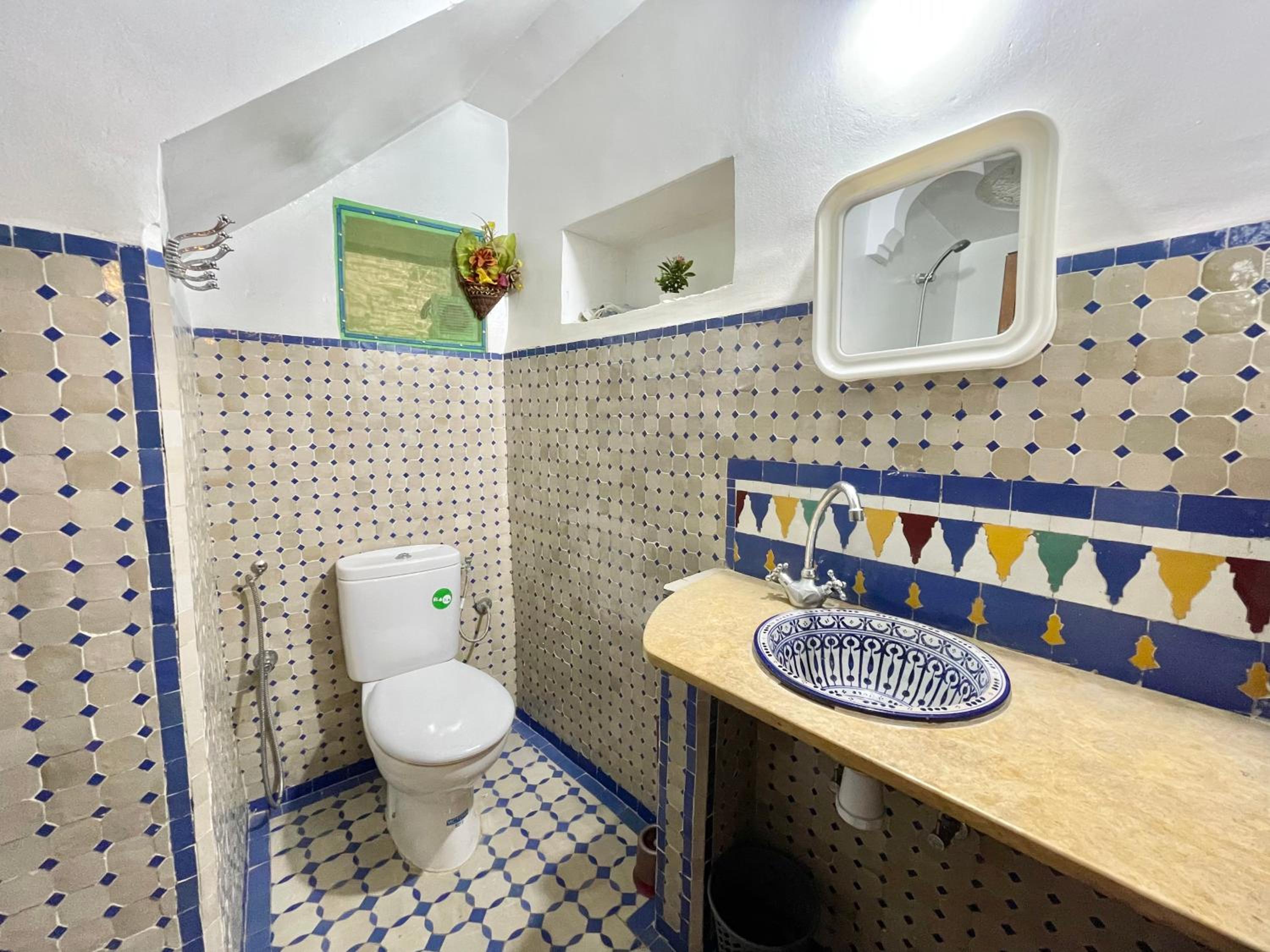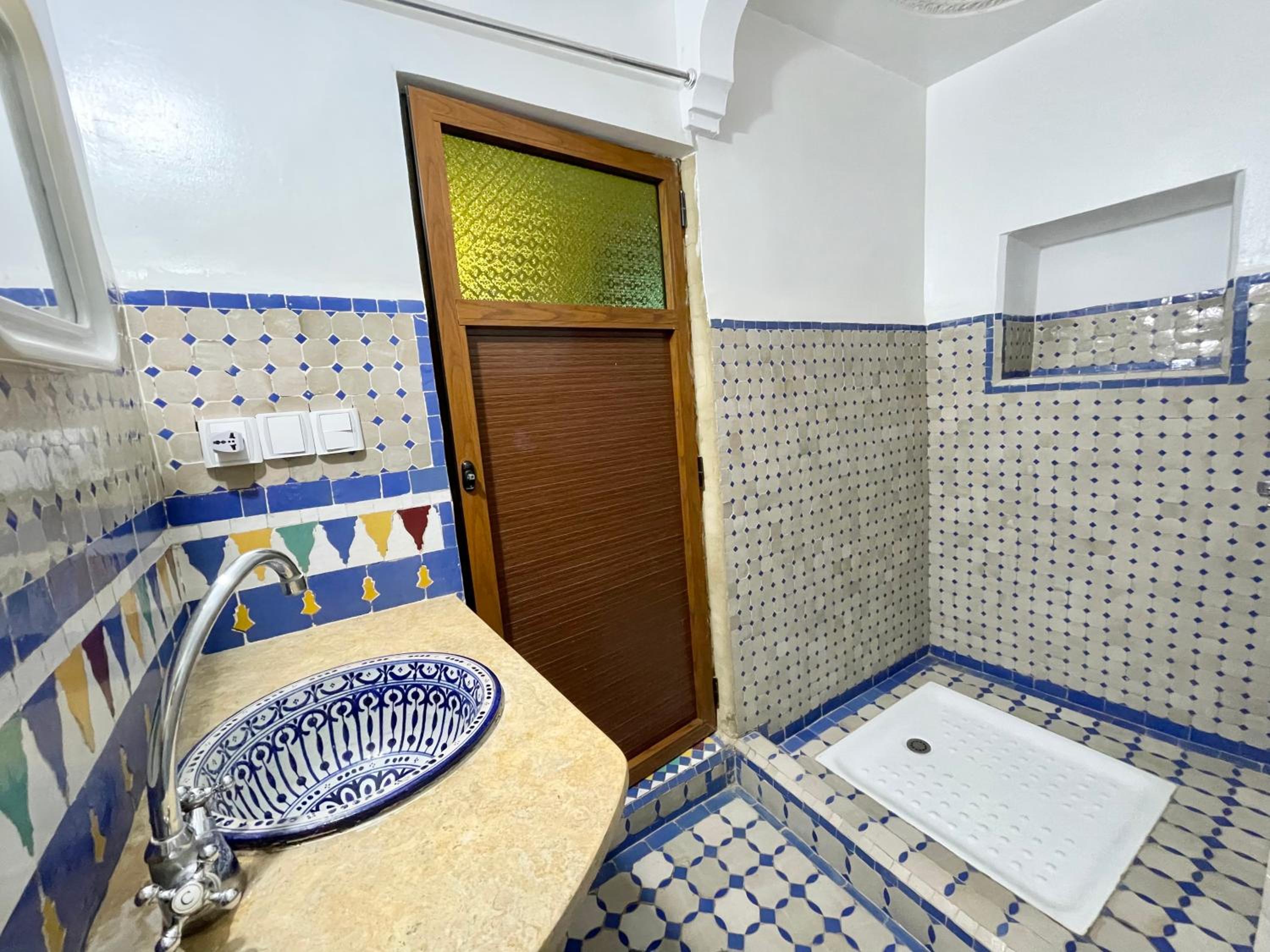 Super ambiance conviviale dans cette maison d’hôtes ! Yassin est super sympa et il se décarcasse vraiment pour aider ses invités et faire en sorte que tout se passe bien. La maison est bien décorée, traditionnelle avec une touche personnelle qui rend l’endroit un peu branché. Très calme pour dormir malgré l’ambiance festive en journée avec les cours de cuisine. La terrasse du toit est un havre de paix avec une vue époustouflante sur la médina. Situé dans une ruelle calme à 30 secondes de l’animation d’une rue principale avec d’excellents petits restaurants.