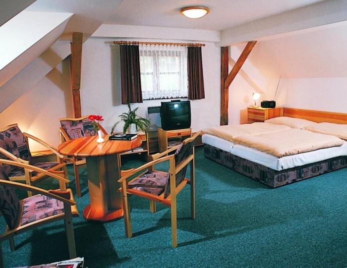 Each room at Hotel na Jezeře is thoughtfully furnished with a flat-screen TV, cozy seating area, and a private bathroom. The hotel's non-smoking policy ensures a pleasant stay for all guests.