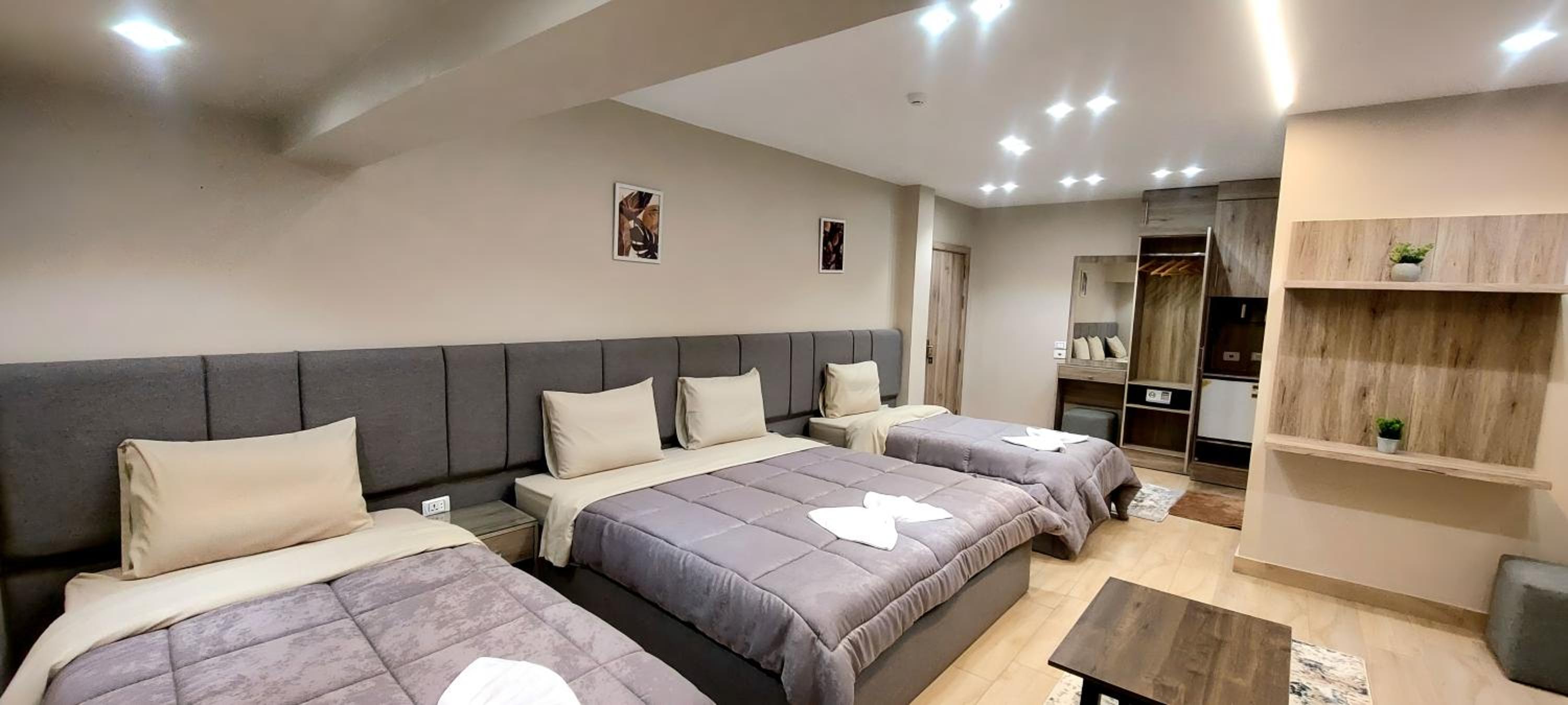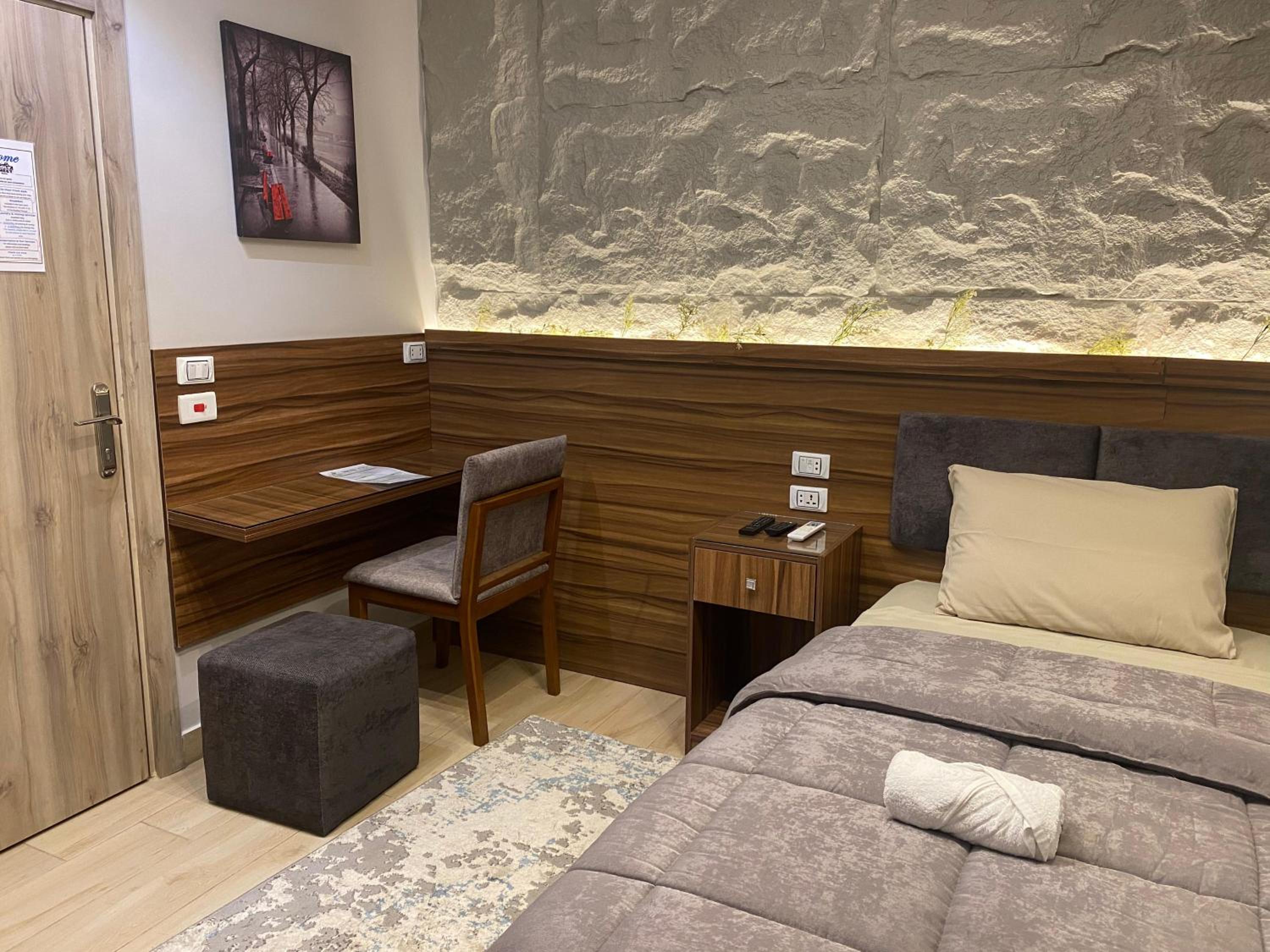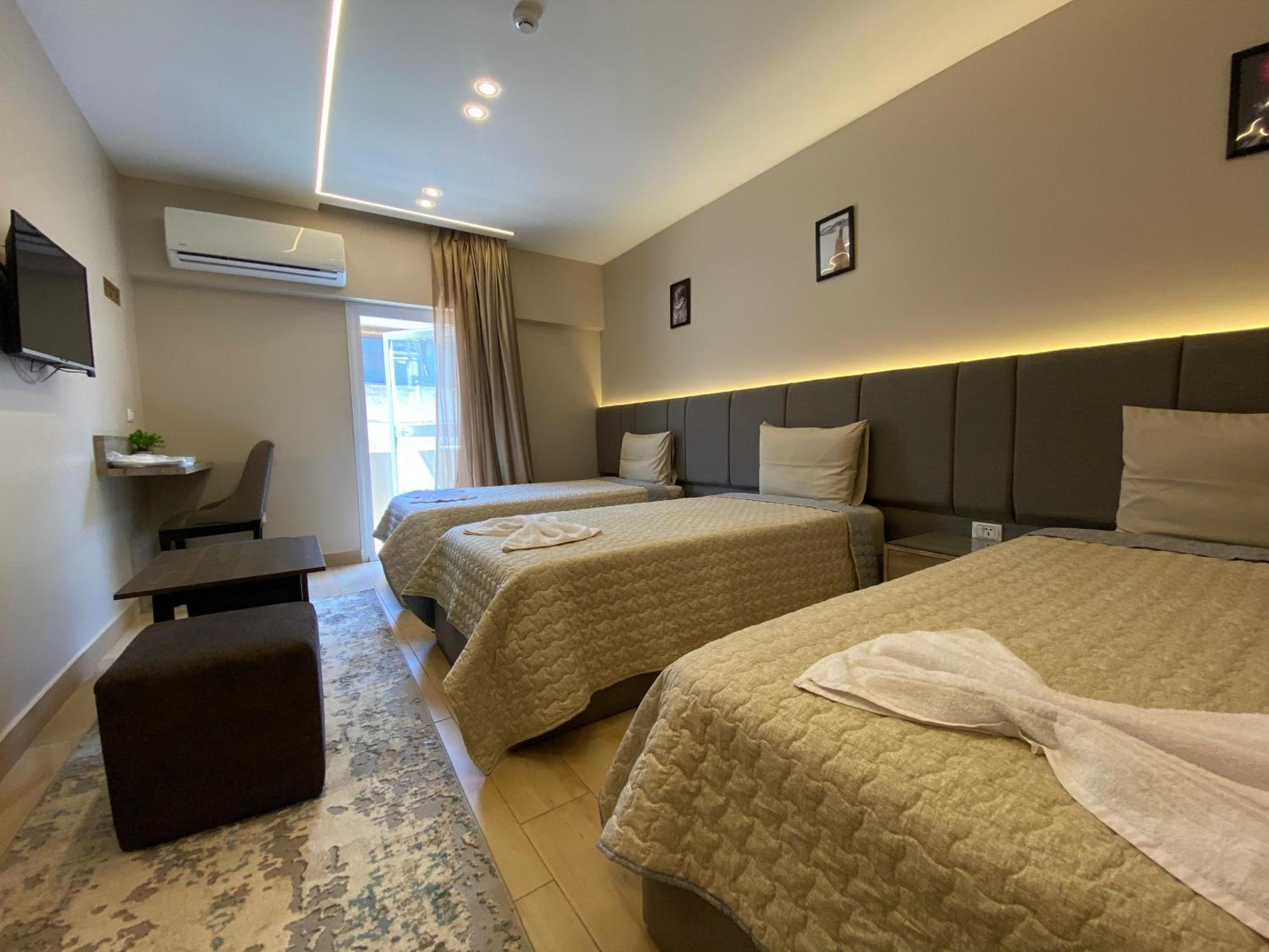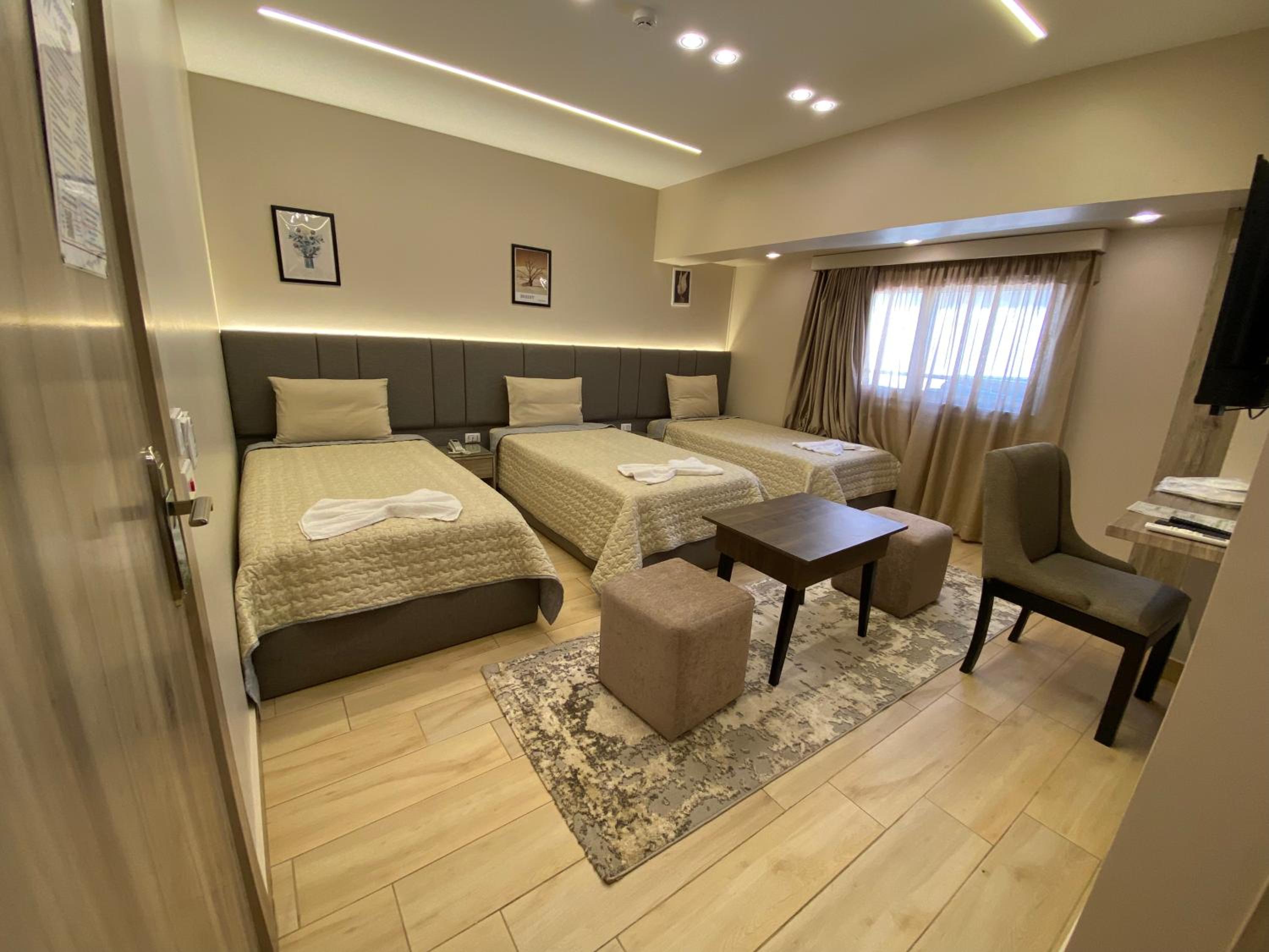 Modern Amenities - Enjoy modern amenities such as free WiFi, air-conditioned rooms with flat-screen TVs, and a balcony with city views. The hotel also provides a continental or vegetarian breakfast and a restaurant serving delicious Middle Eastern and local cuisine.