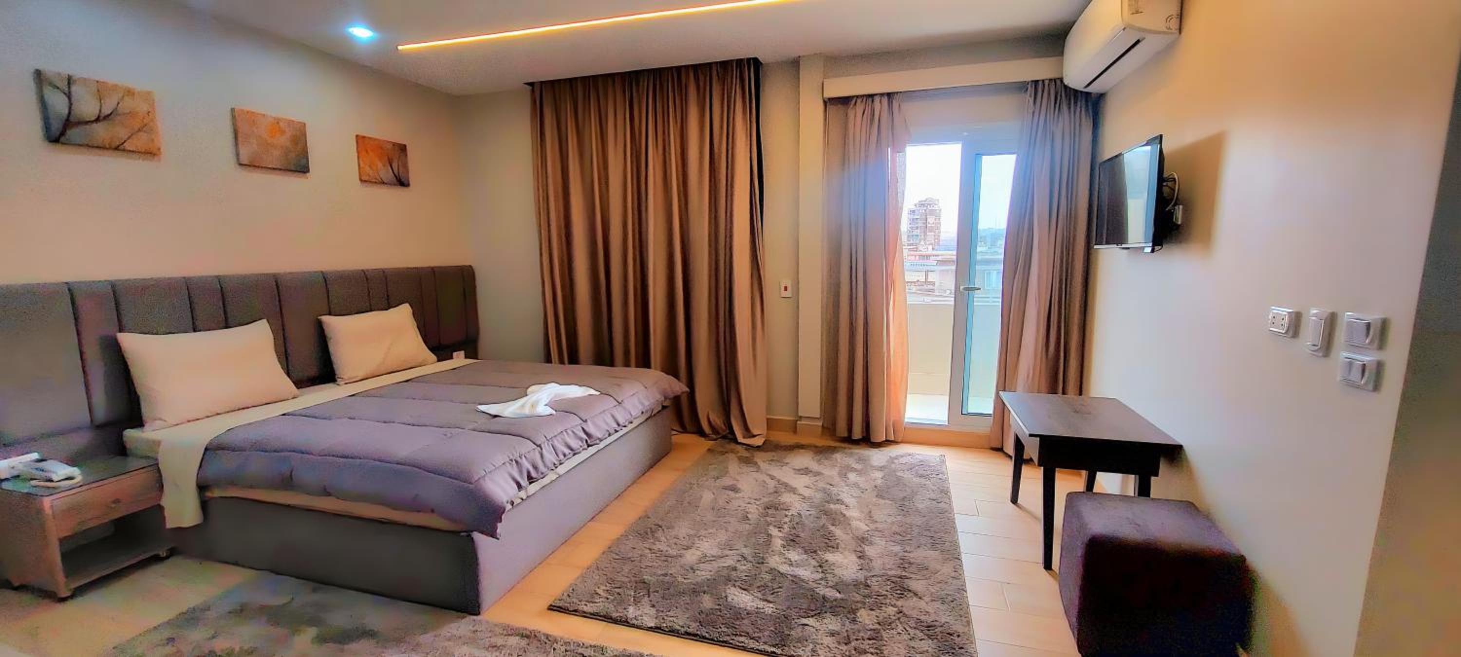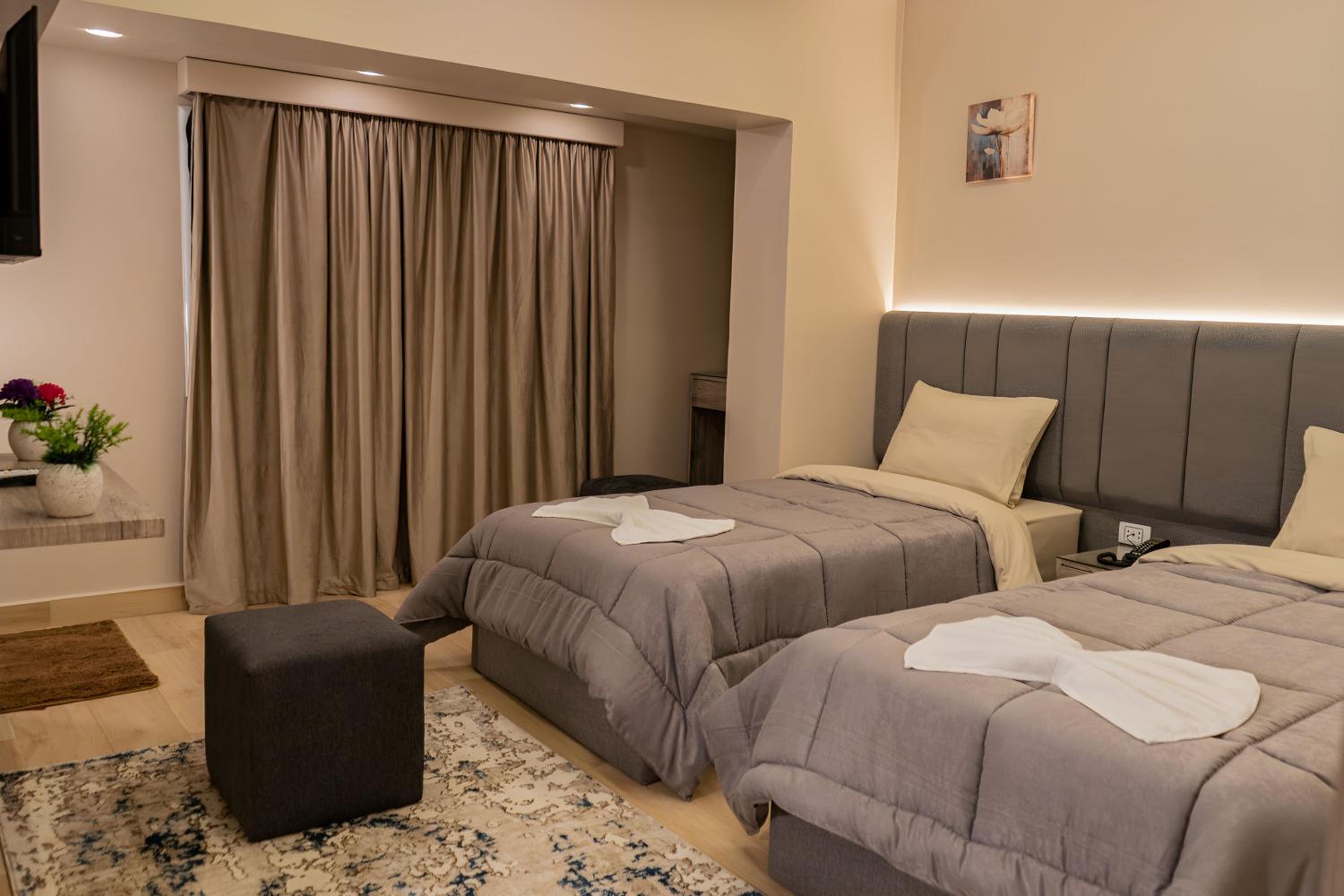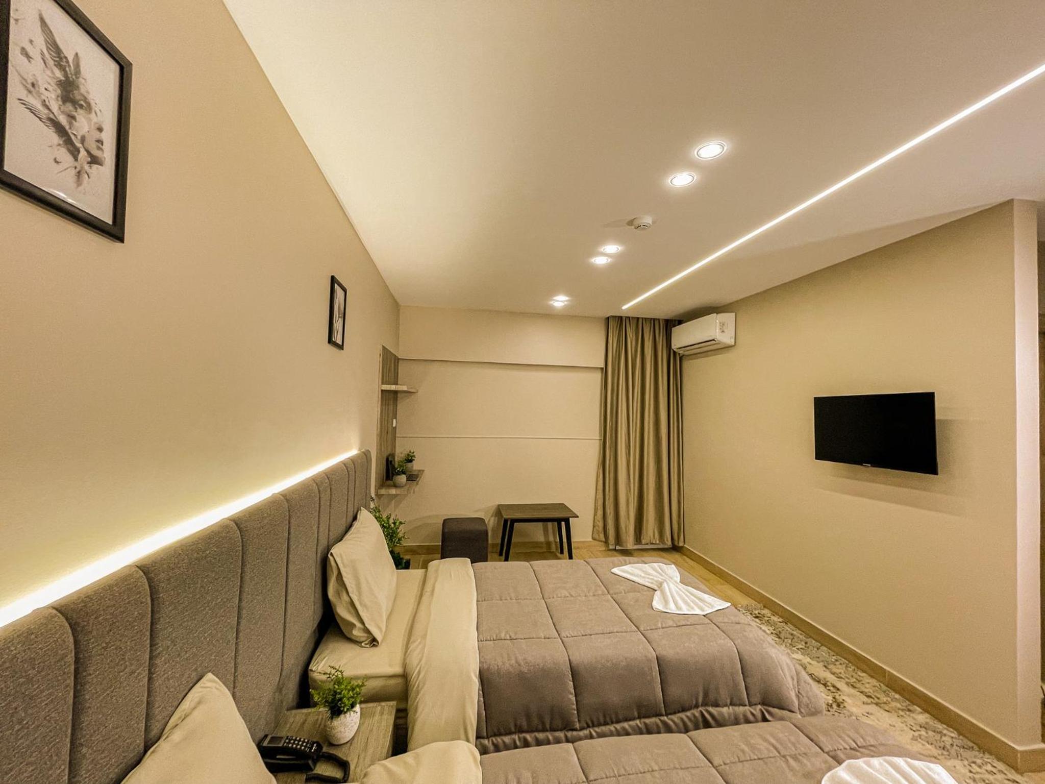 Modern Amenities - Enjoy modern amenities such as free WiFi, air-conditioned rooms with flat-screen TVs, and a balcony with city views. The hotel also provides a continental or vegetarian breakfast and a restaurant serving delicious Middle Eastern and local cuisine.