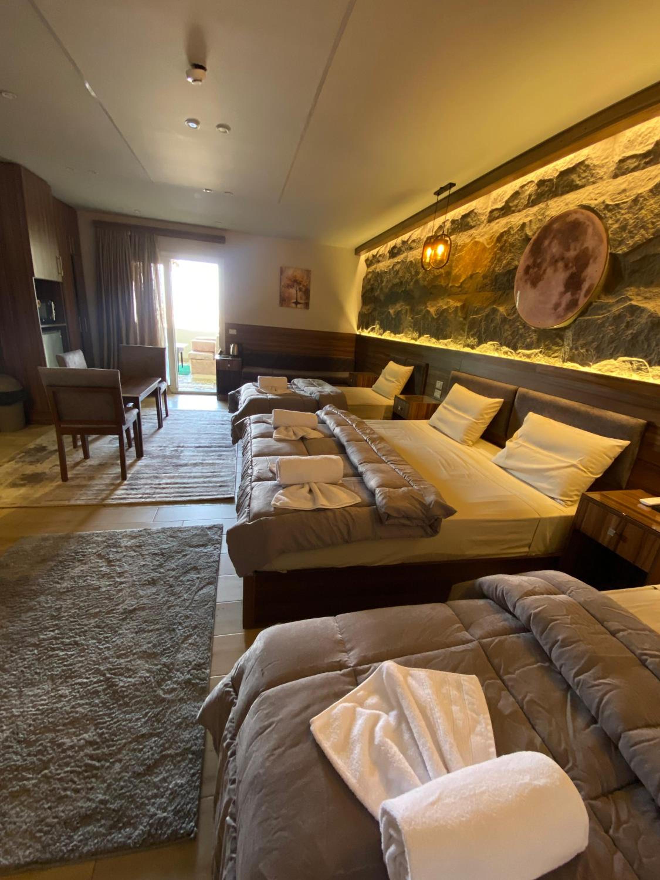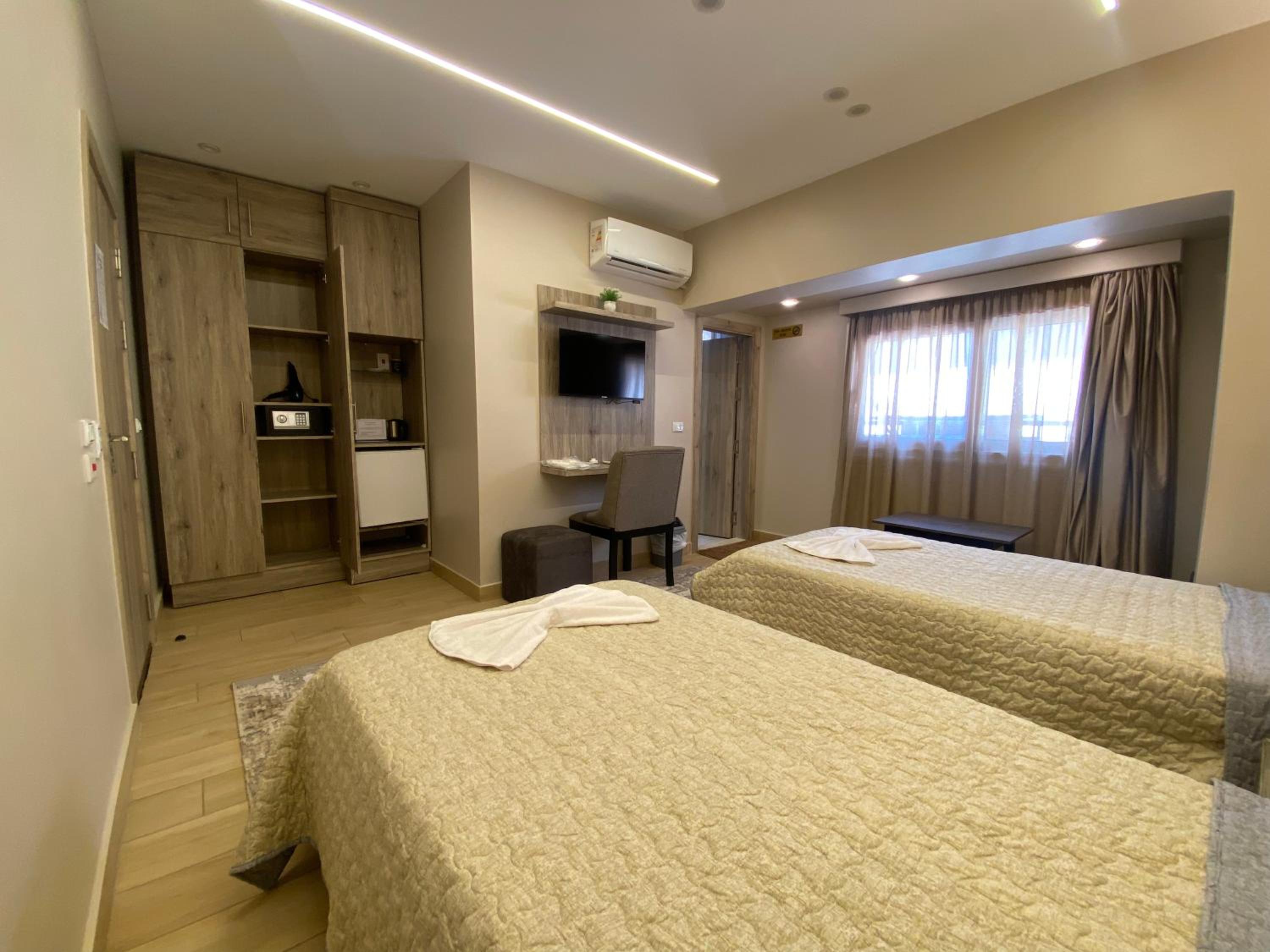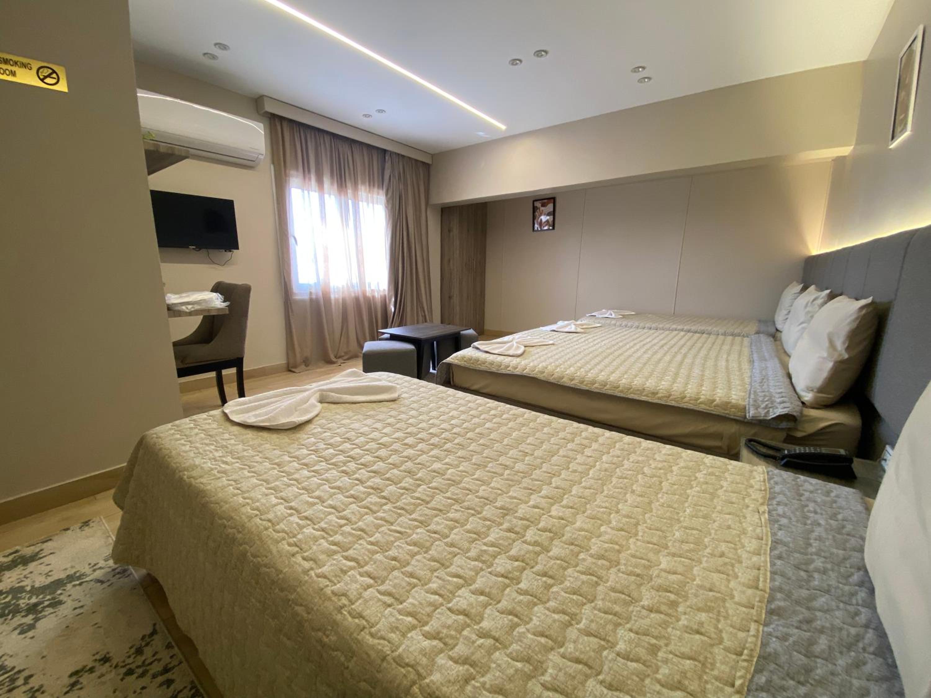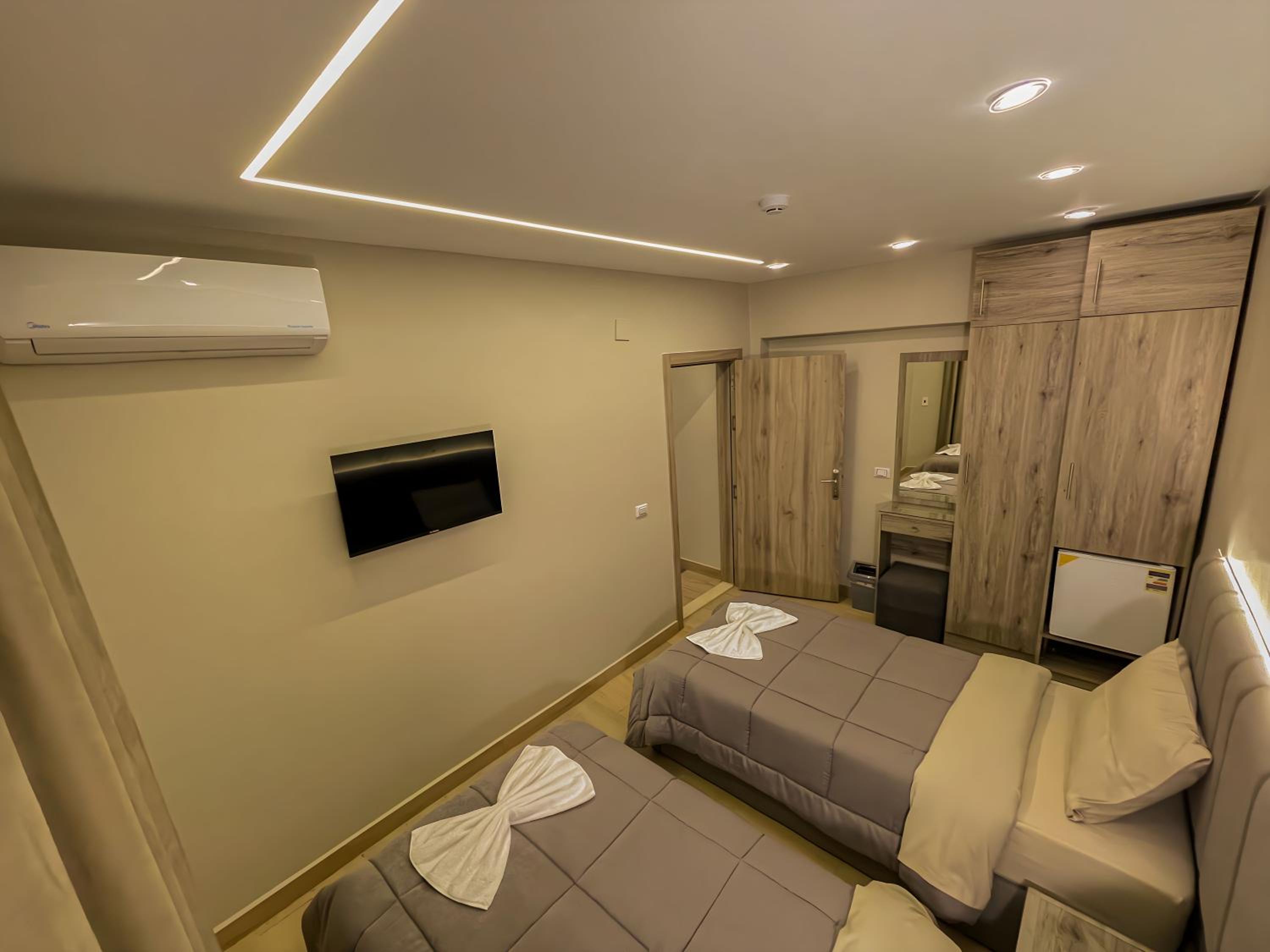 Modern Amenities - Enjoy modern amenities such as free WiFi, air-conditioned rooms with flat-screen TVs, and a balcony with city views. The hotel also provides a continental or vegetarian breakfast and a restaurant serving delicious Middle Eastern and local cuisine.