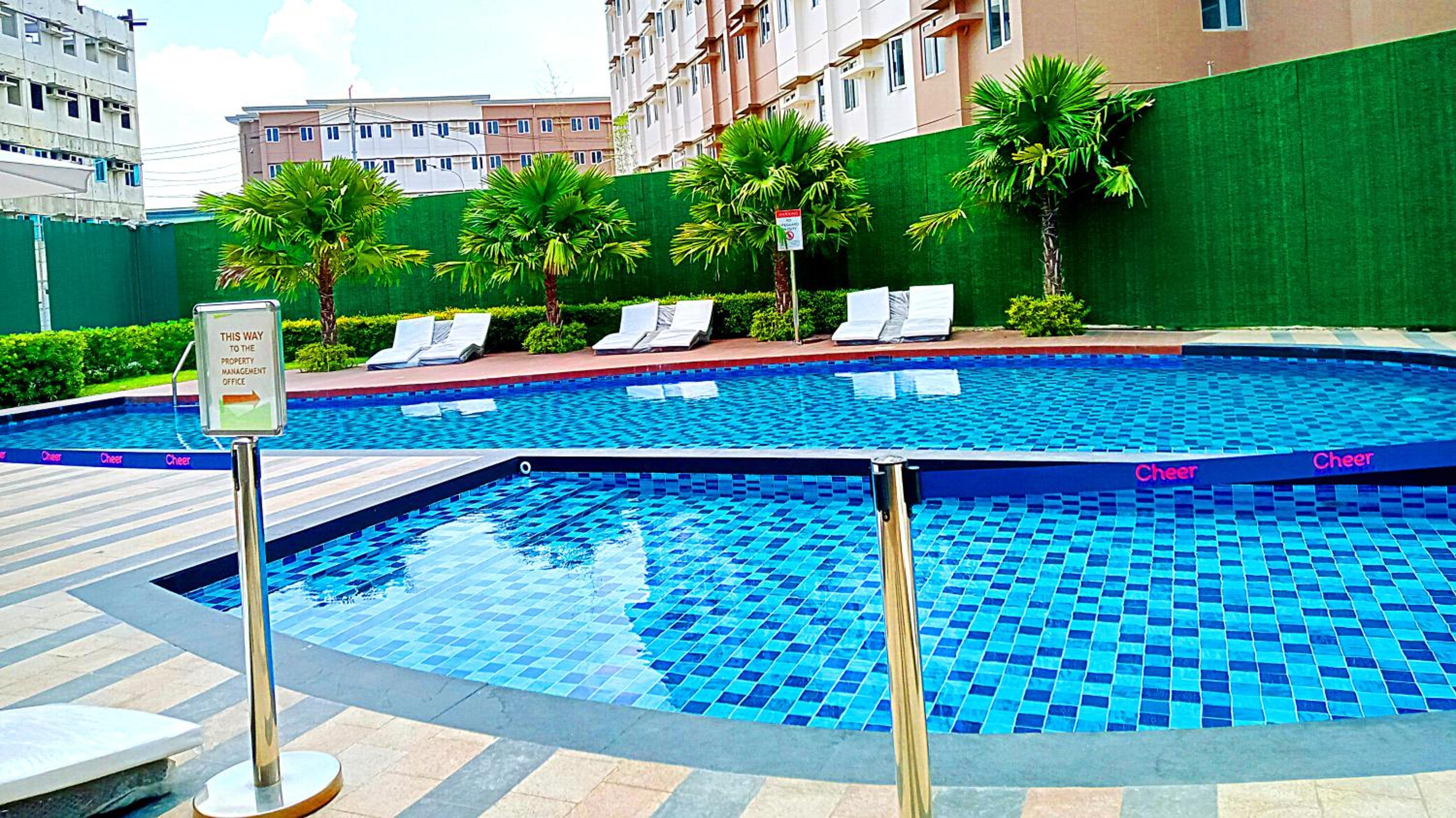 Experience a serene stay at Ace That Condo Staycation Cheer Residences beside SM Marilao, surrounded by a lush garden.