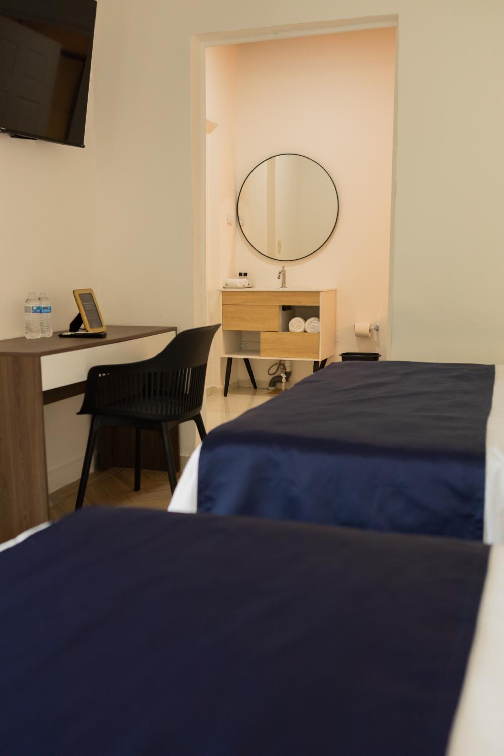 Lo que no me pareció fue que en el área del baño solo había un jabón pequeño y un solo juego de shampoo y acondicionador, a pesar de que la habitación era doble, lo cual resultó incómodo. Como sugerencia, sería ideal colocar un espejo de cuerpo completo, ya que el baño es bastante amplio y lo permitiría.