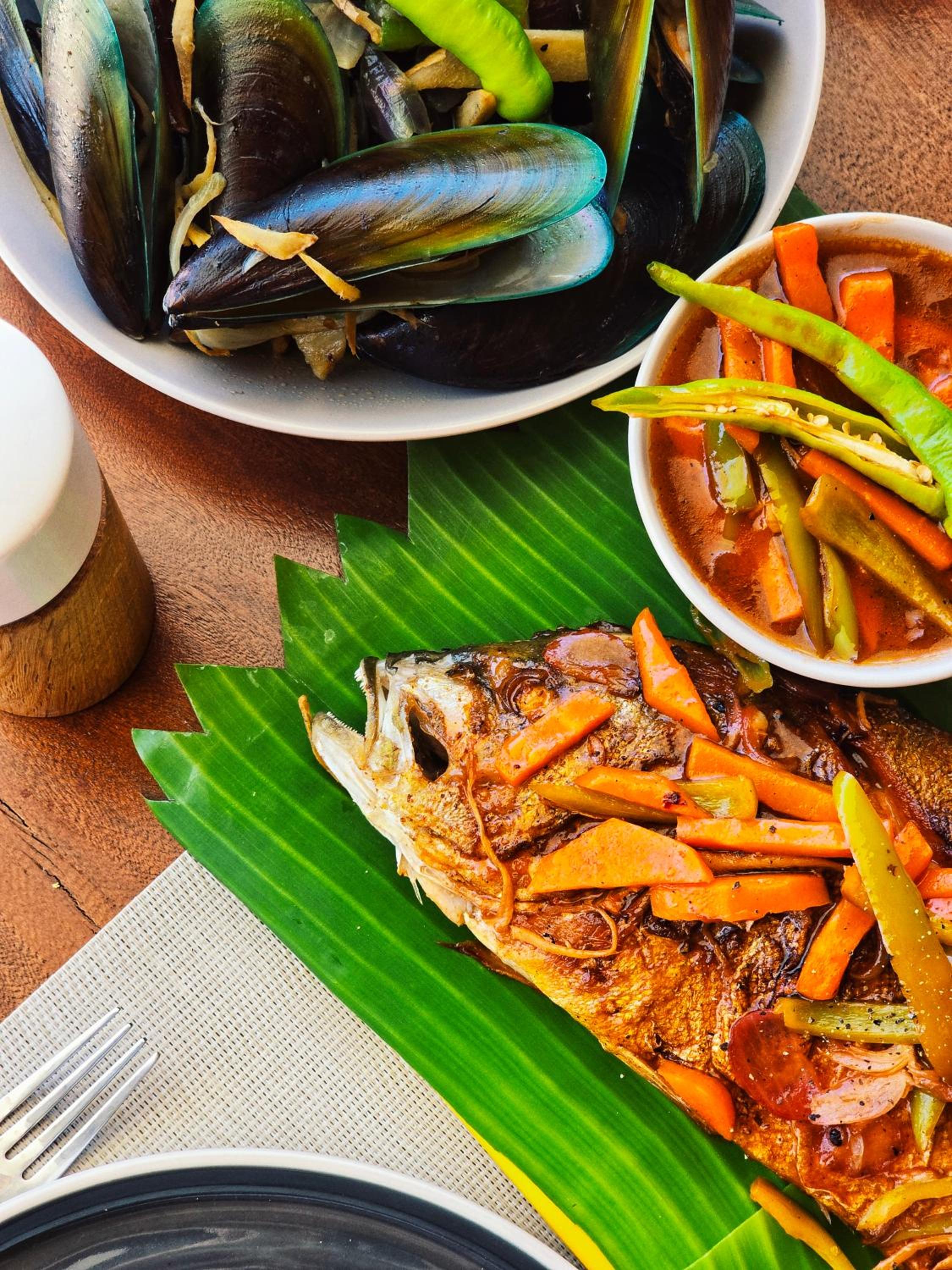 Only Local Philippine food nearby, hotel cooks some basics tasty food small menu
