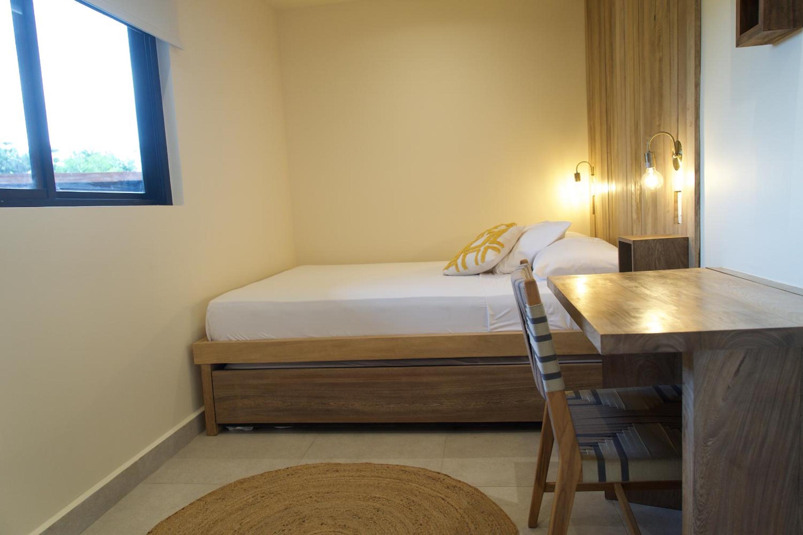 No me gustó que en el baño no hay donde poner las cosas. Es bien pequeño el espacio del cuarto. El ambiente y la vibra lo compensan, igual uno no pasa tanto tiempo en el cuarto.