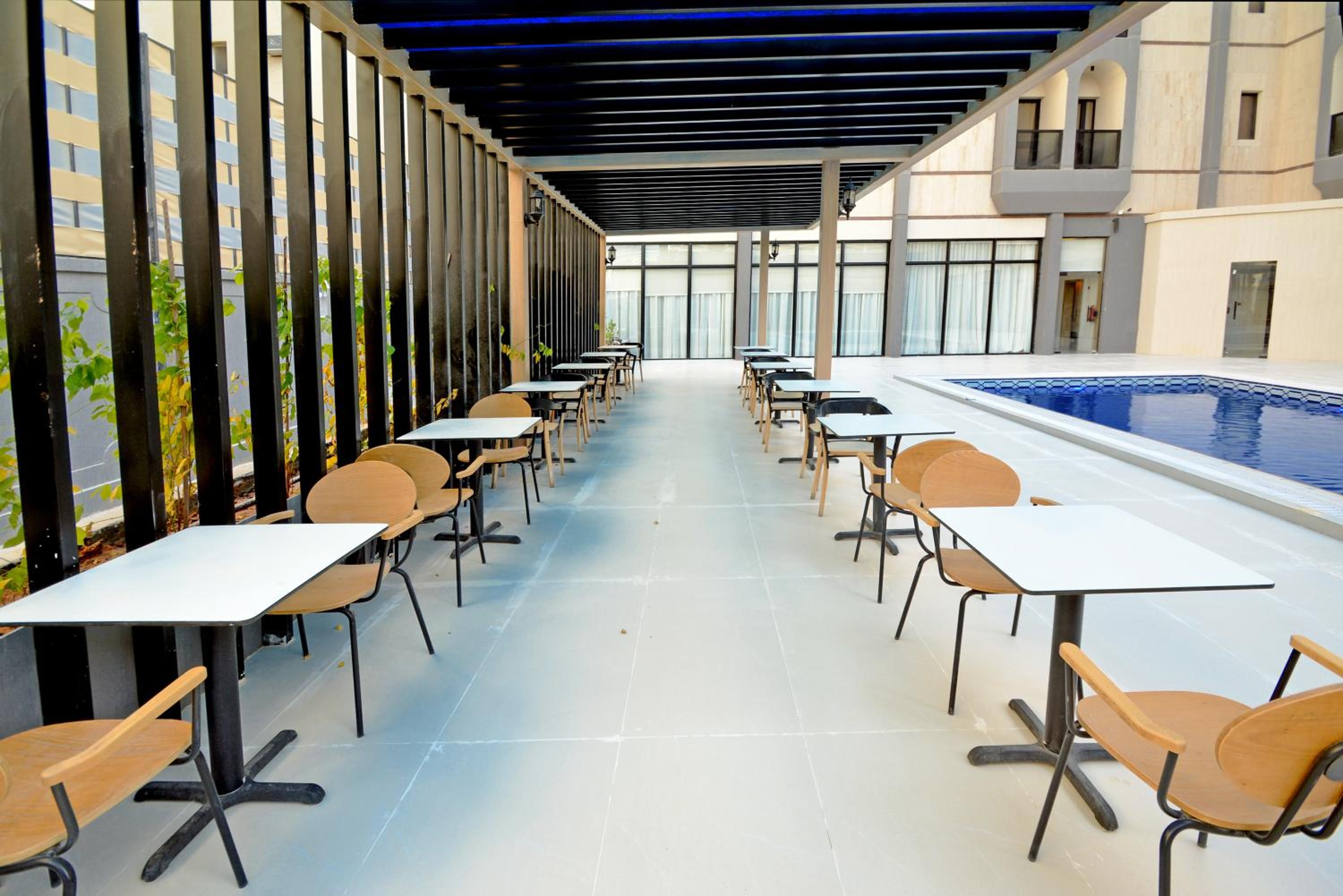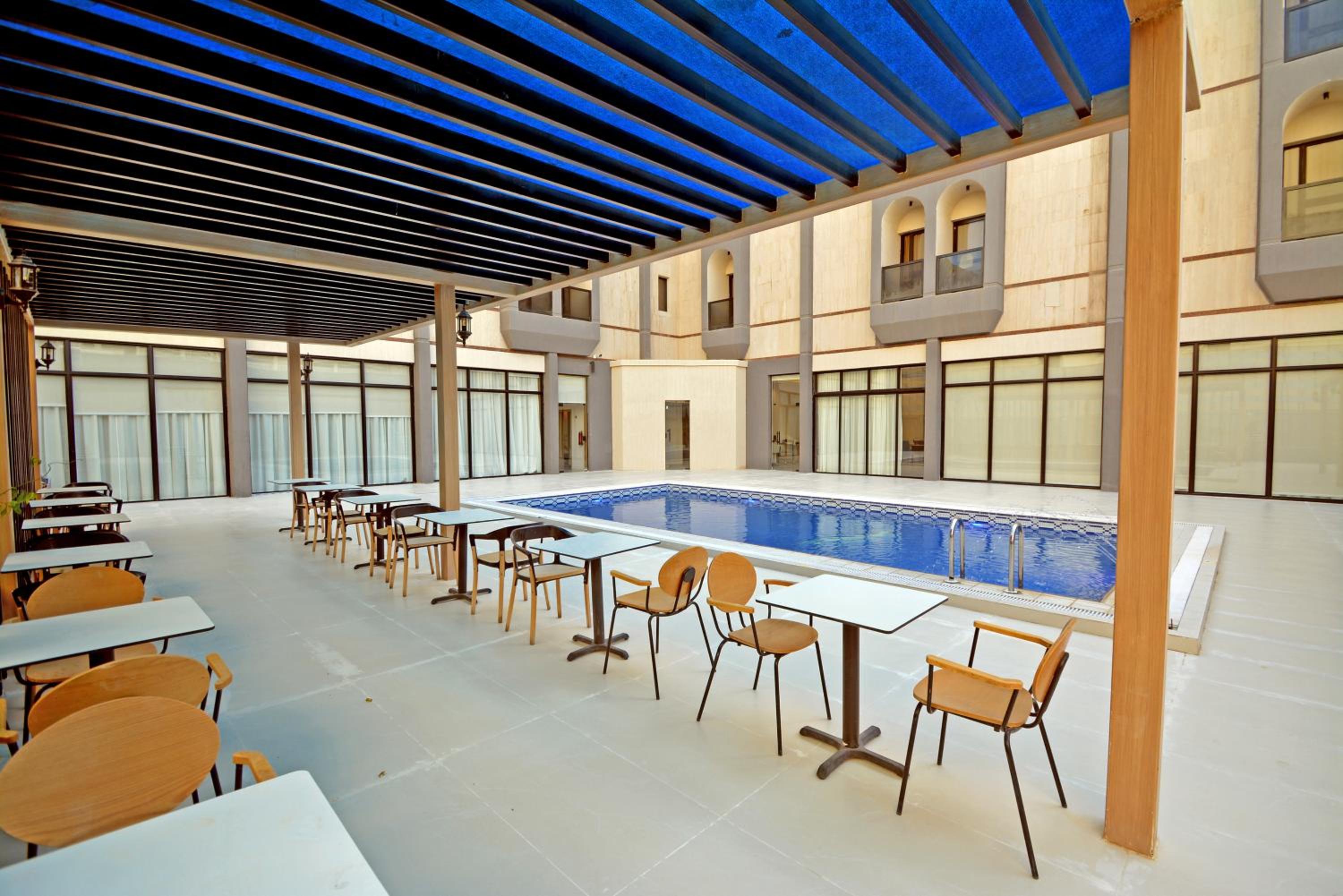 Indulge in our outdoor swimming pool, fitness center, and on-site restaurant.