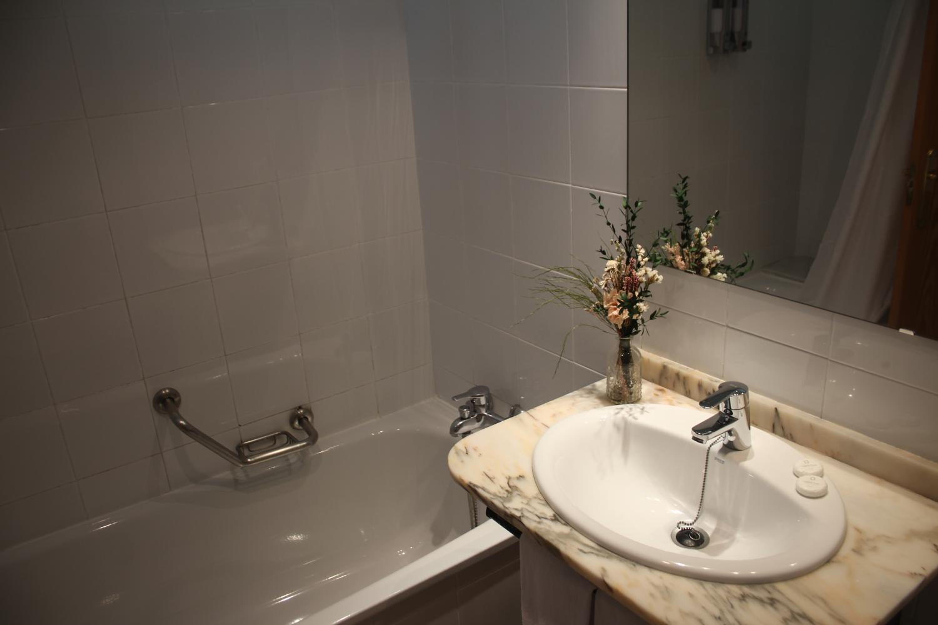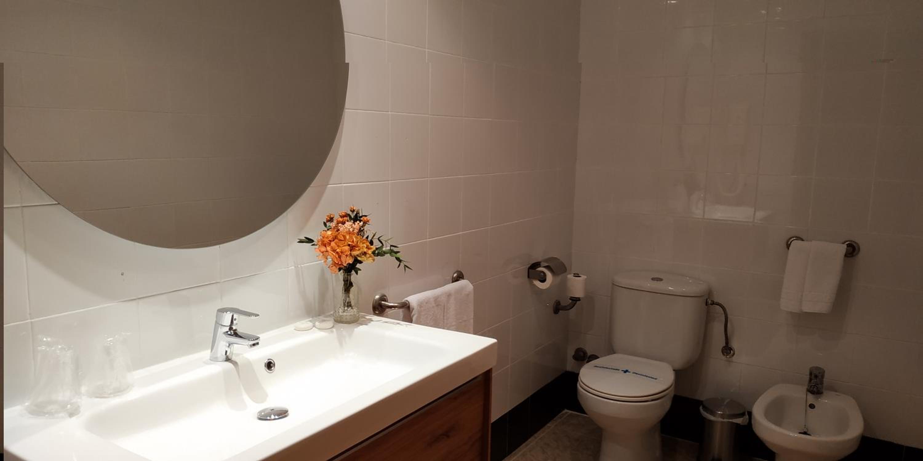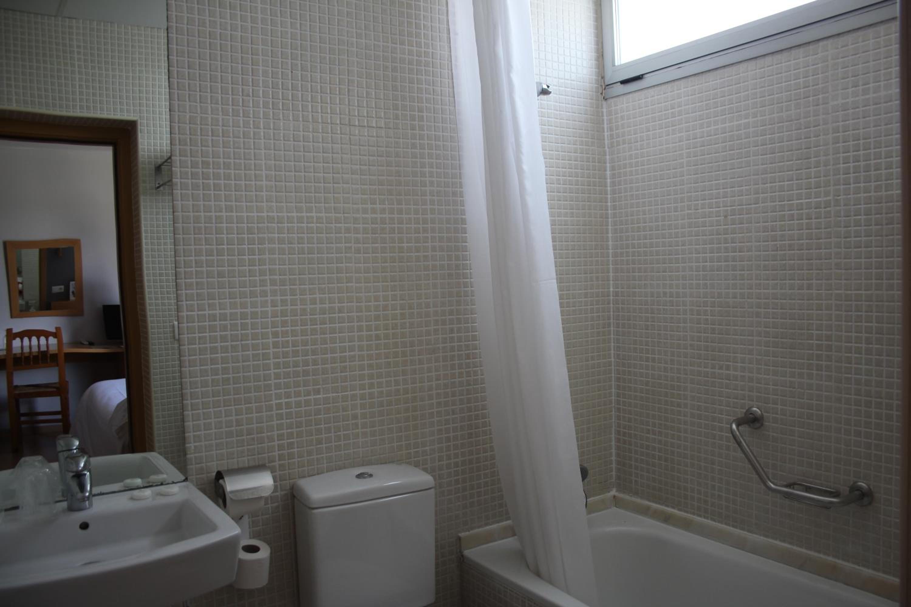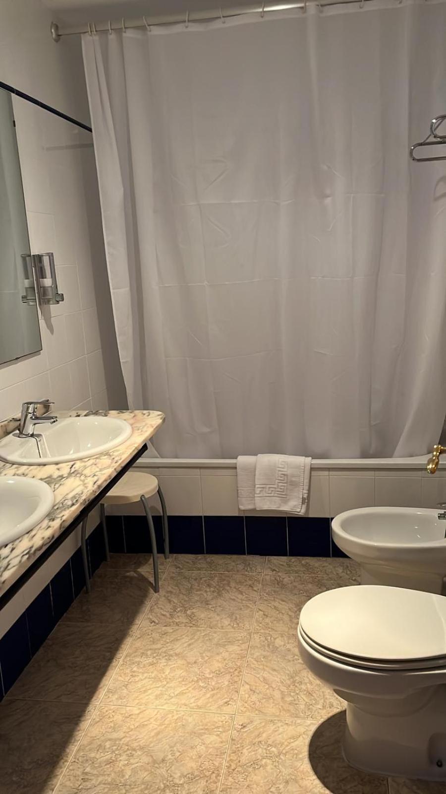 El baño limpio pero algo anticuado y la almohada un poco dura.