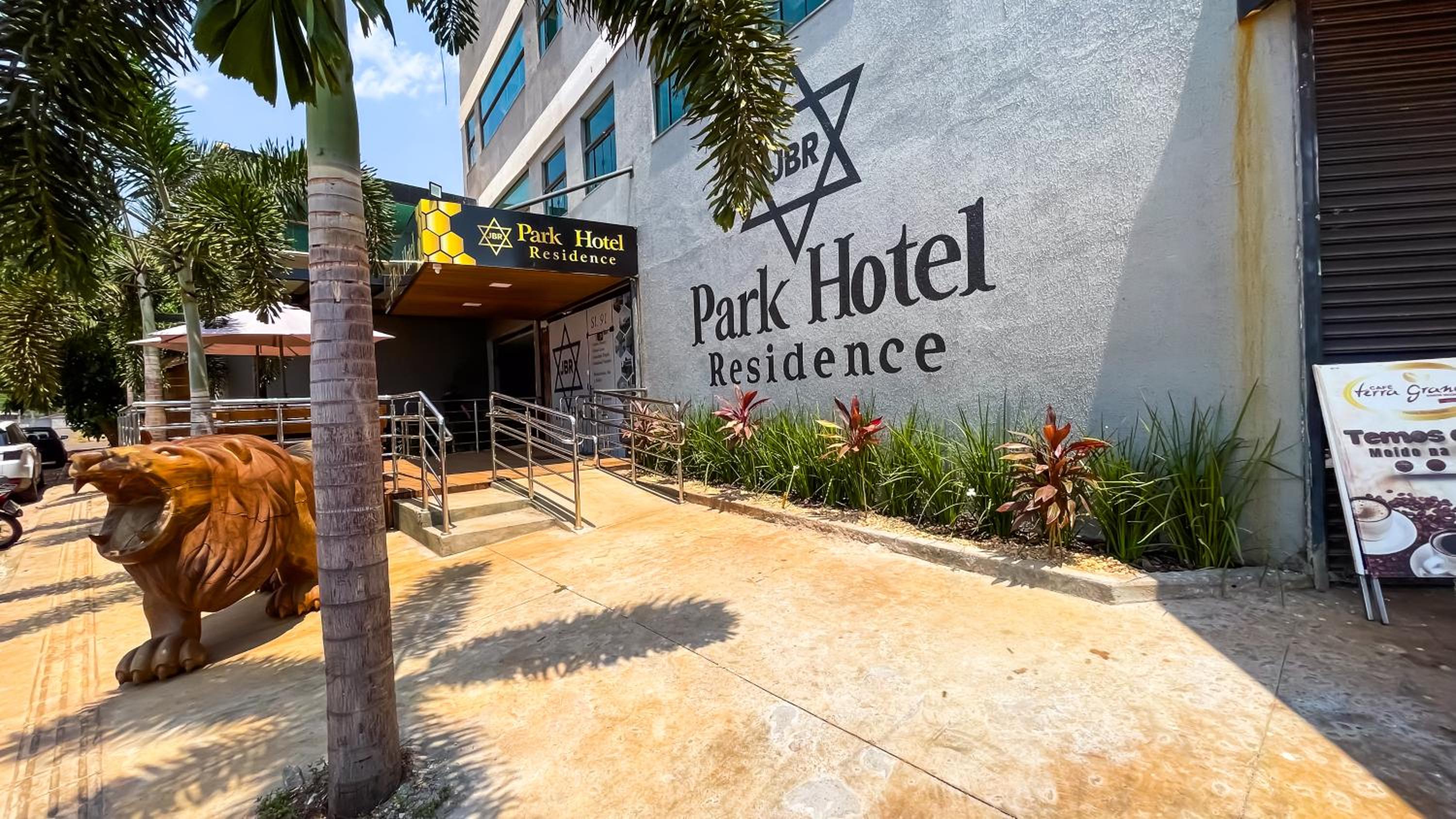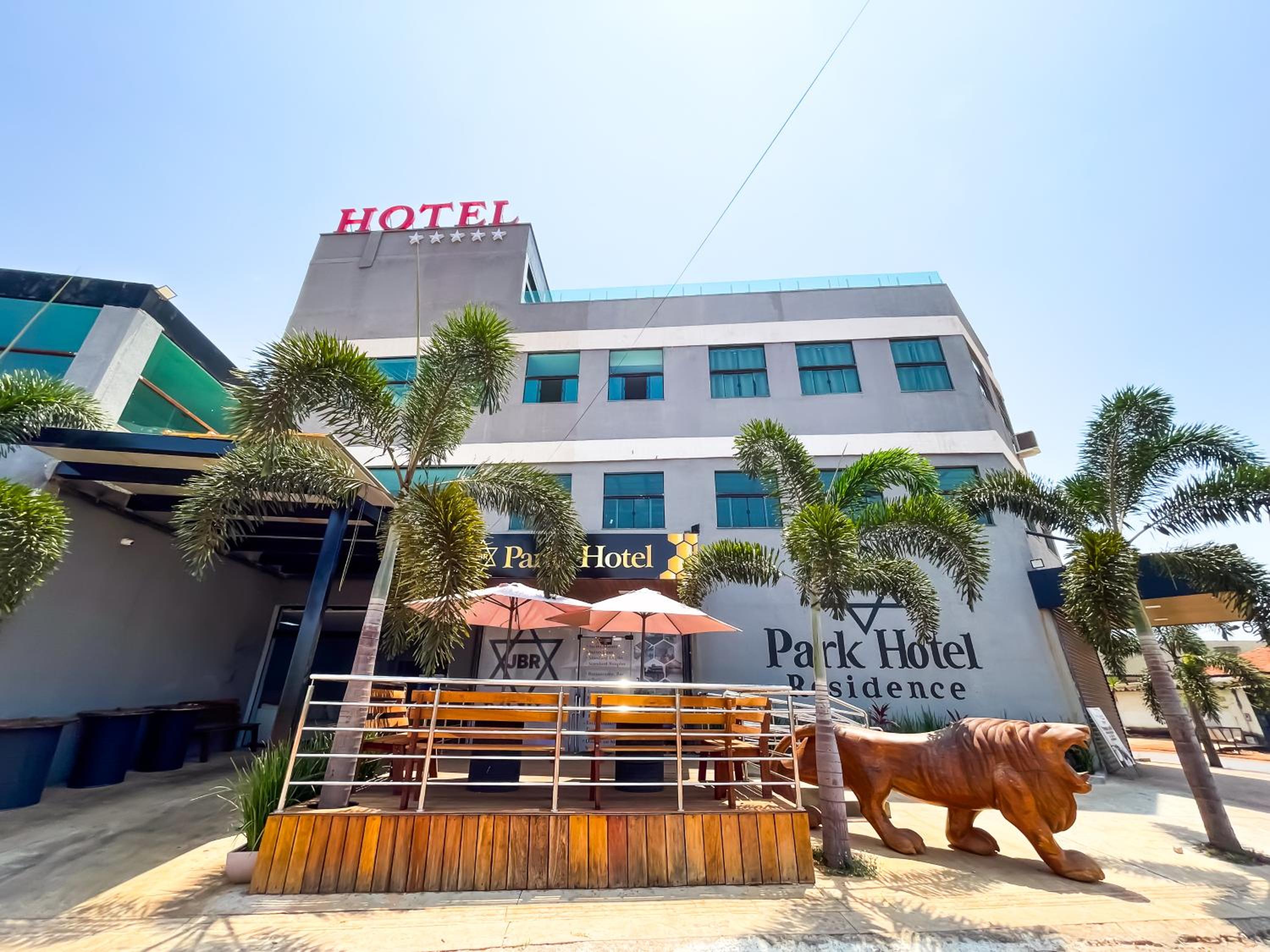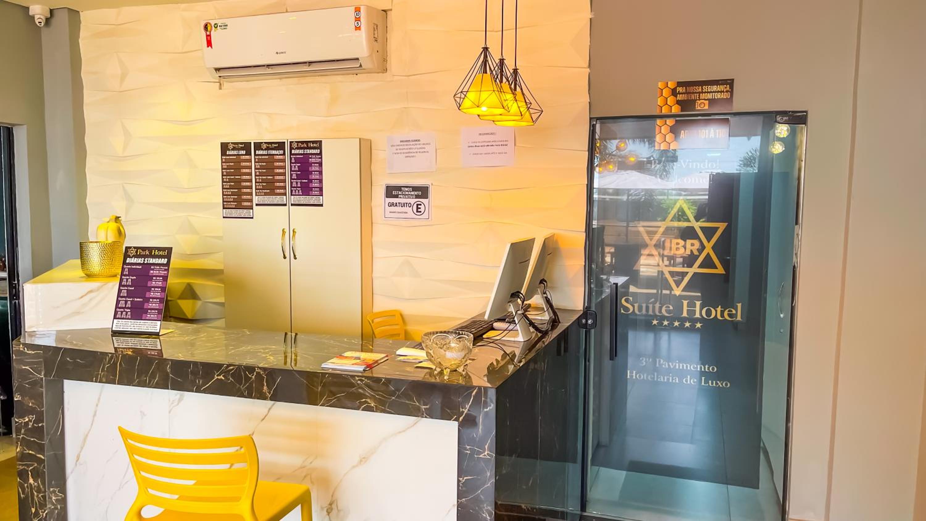 Não há estacionamento privativo do hotel, os carros ficam em um terreno aberto na frente do estabelecimento.