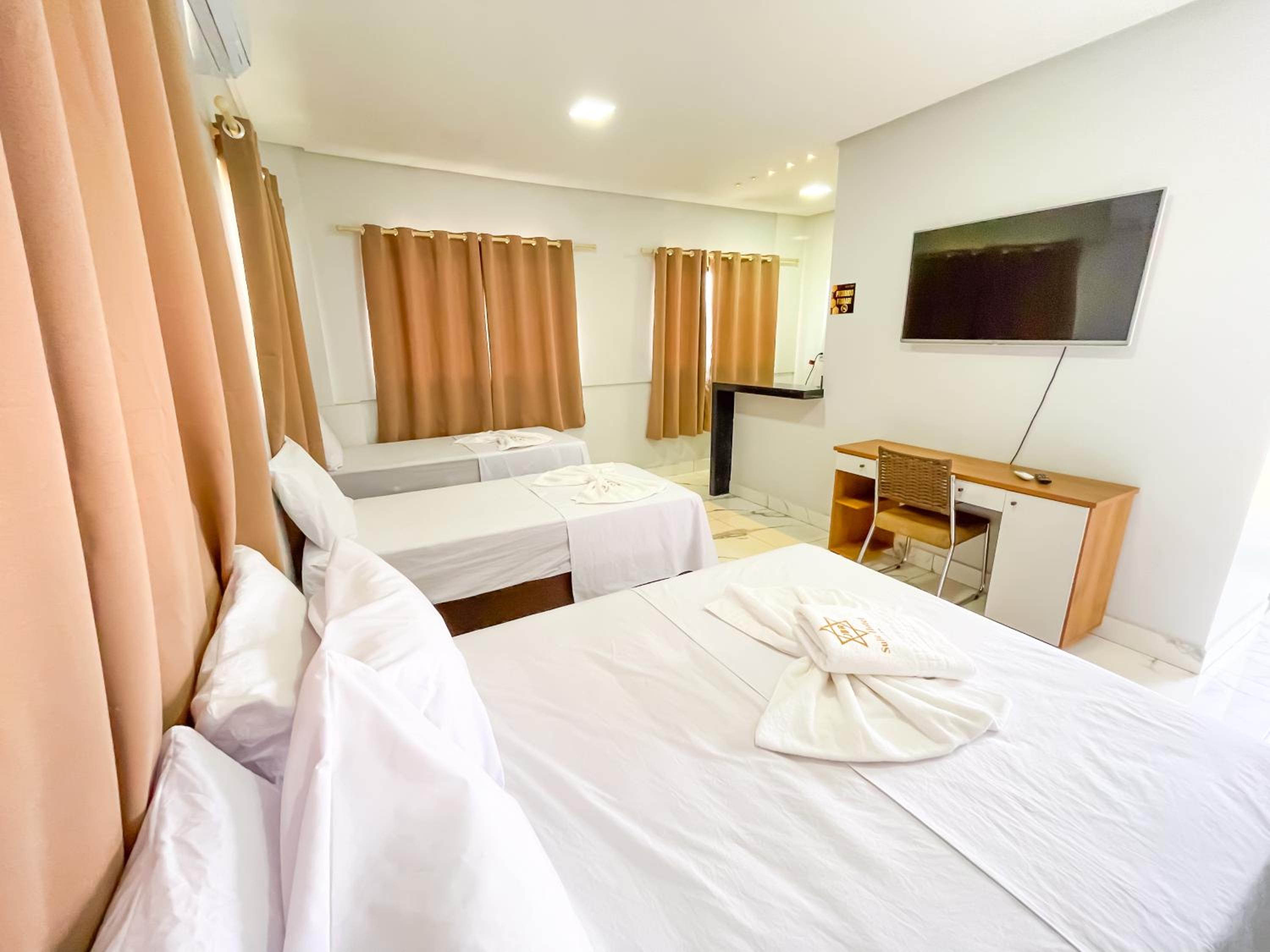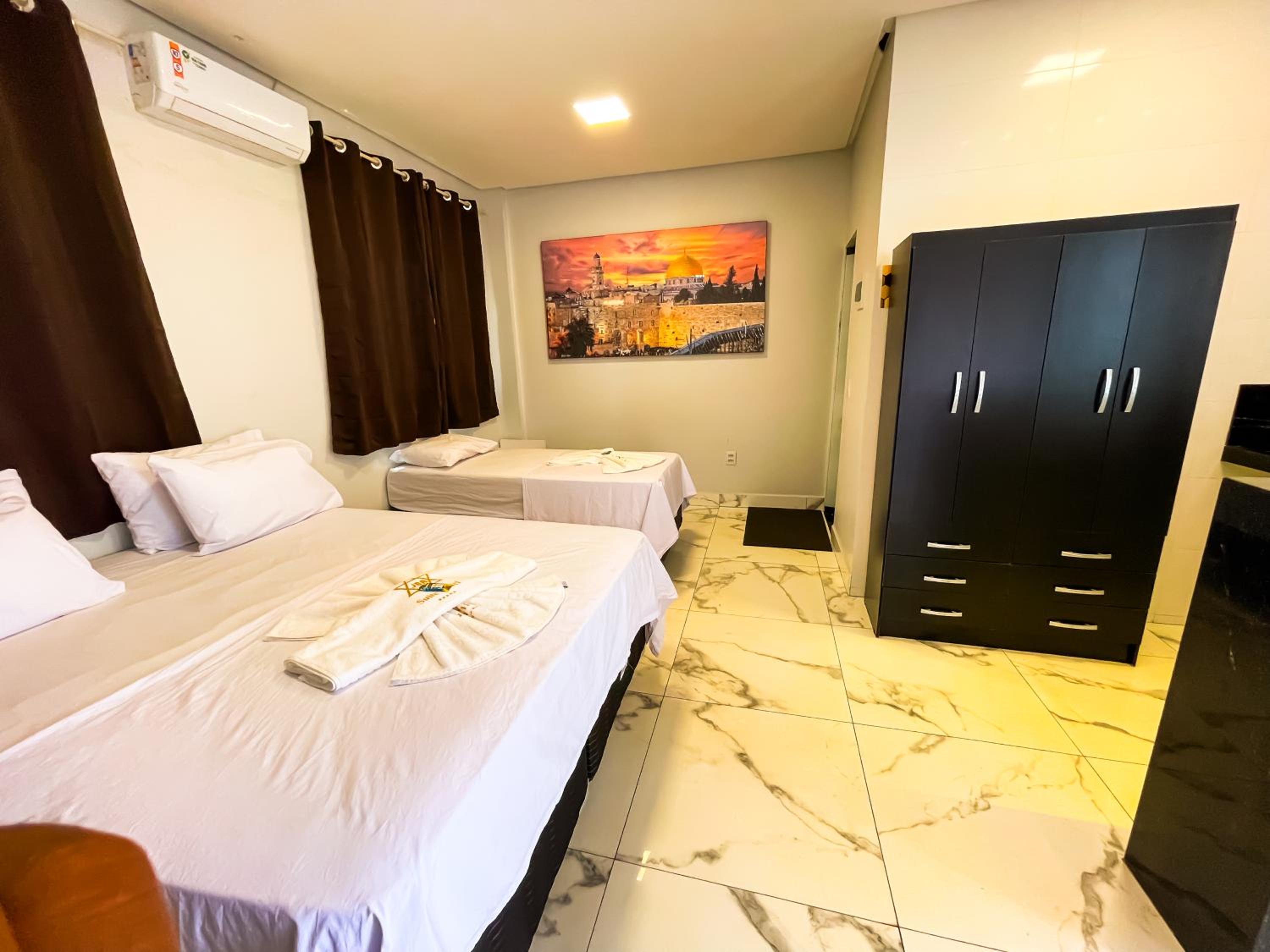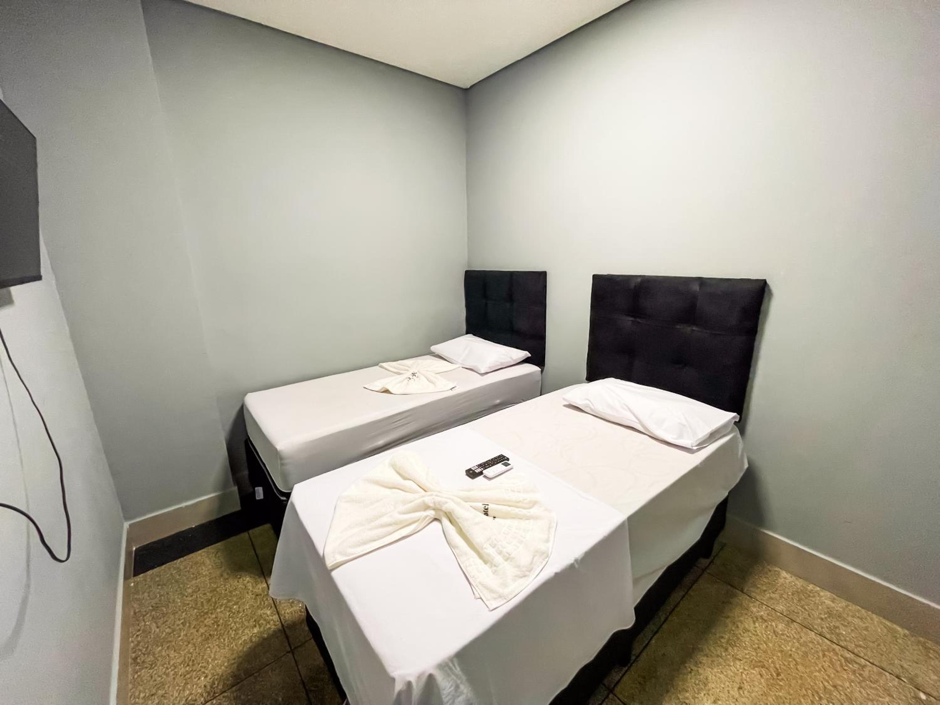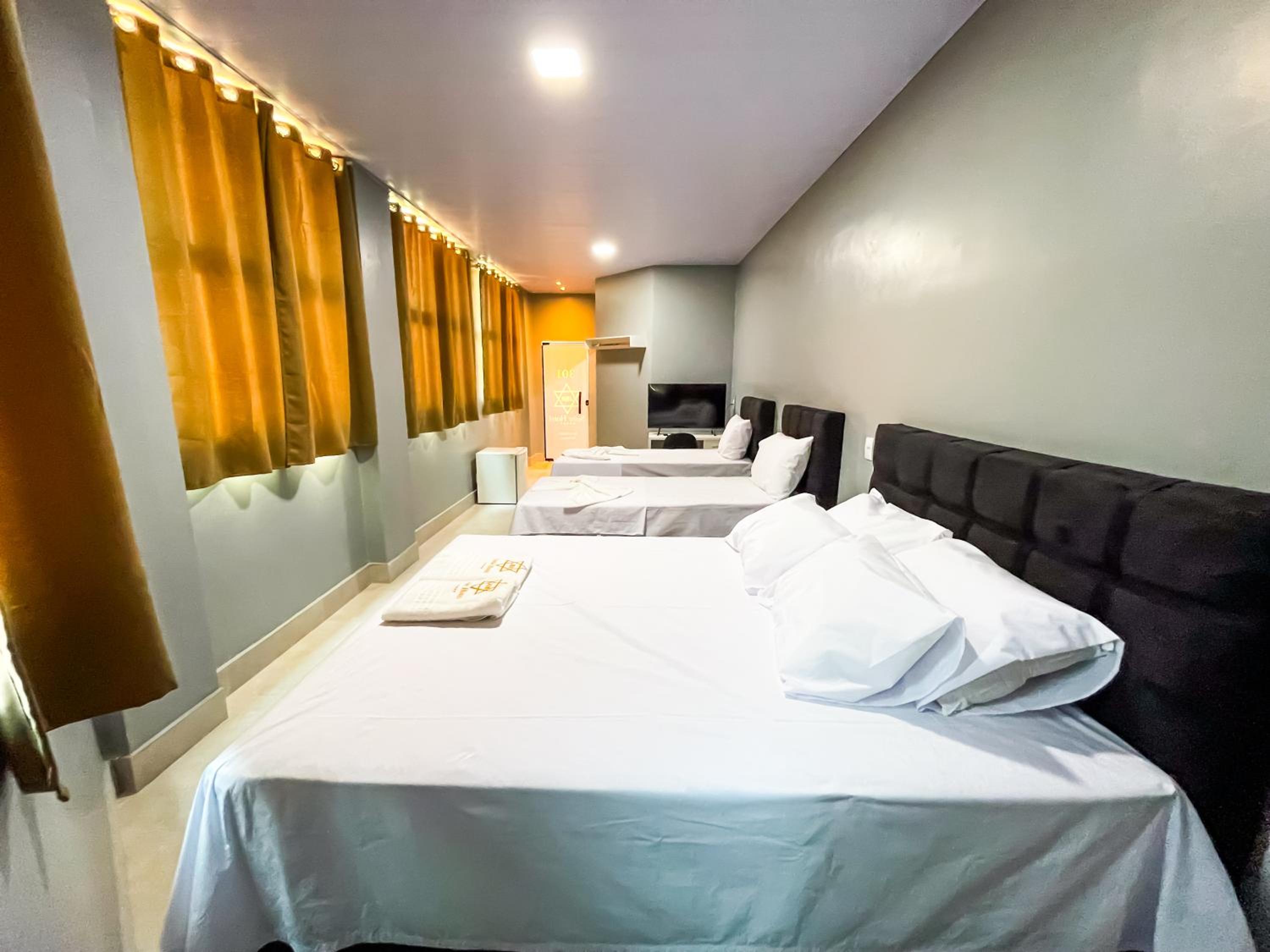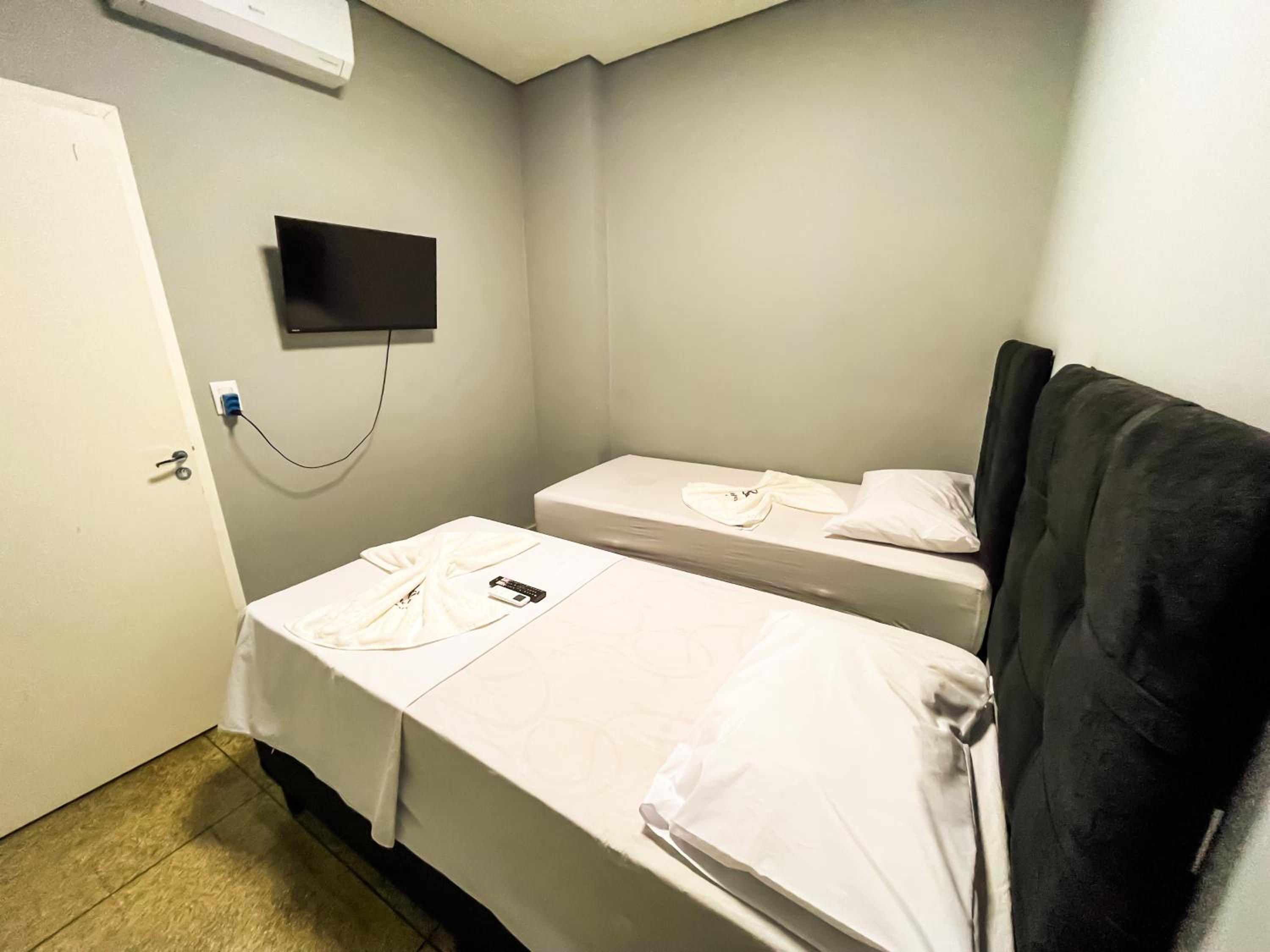 Quarto espacoso,, cama e banheiros confortáveis para a proposta do.hotel. tudo limpo e organizado.