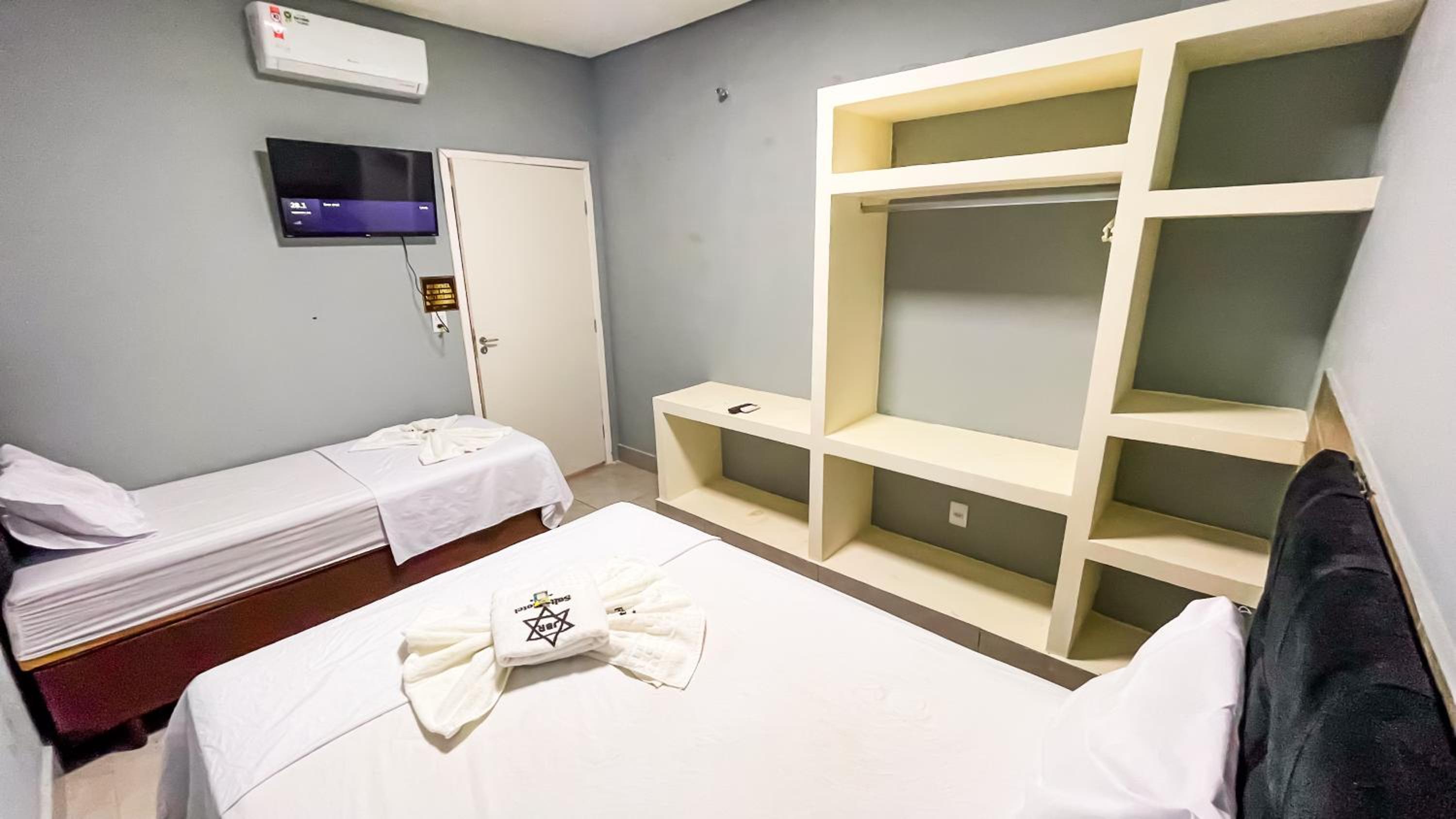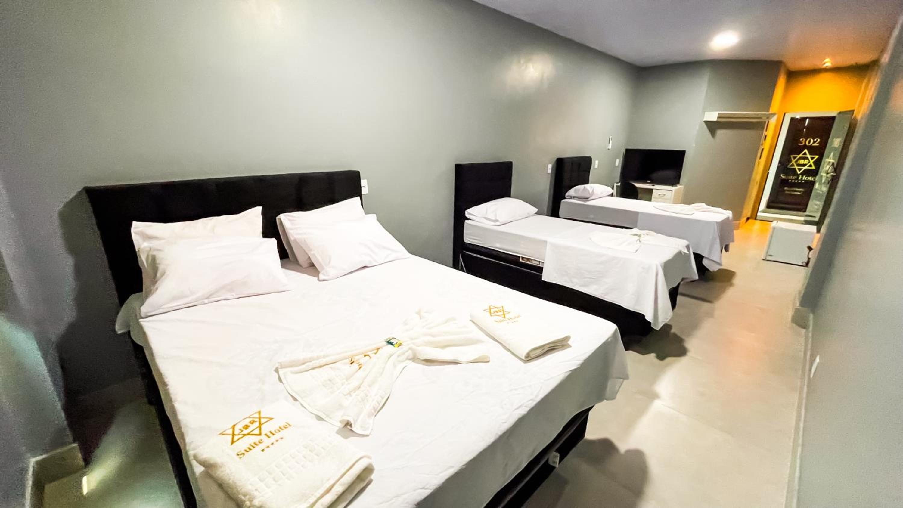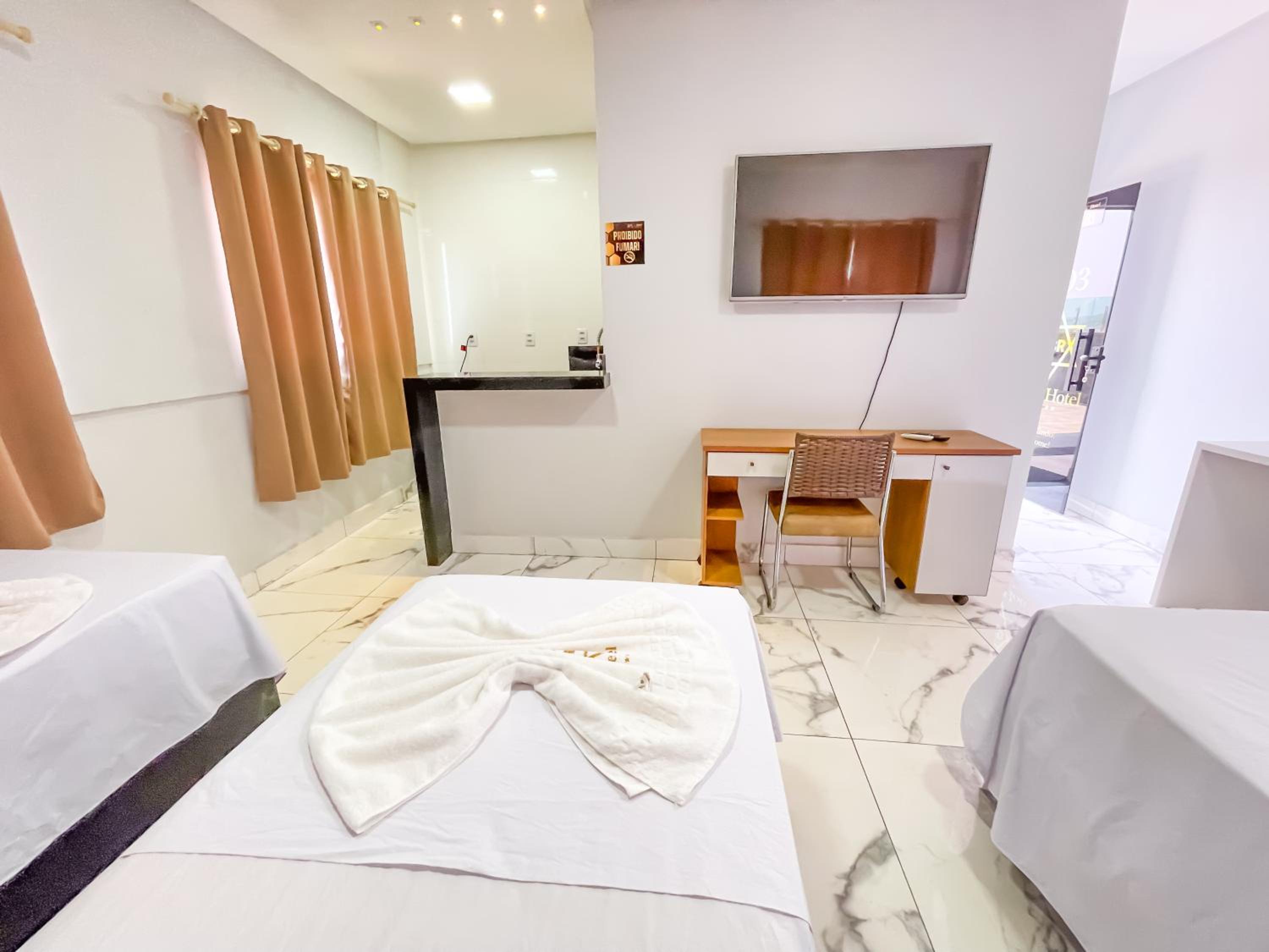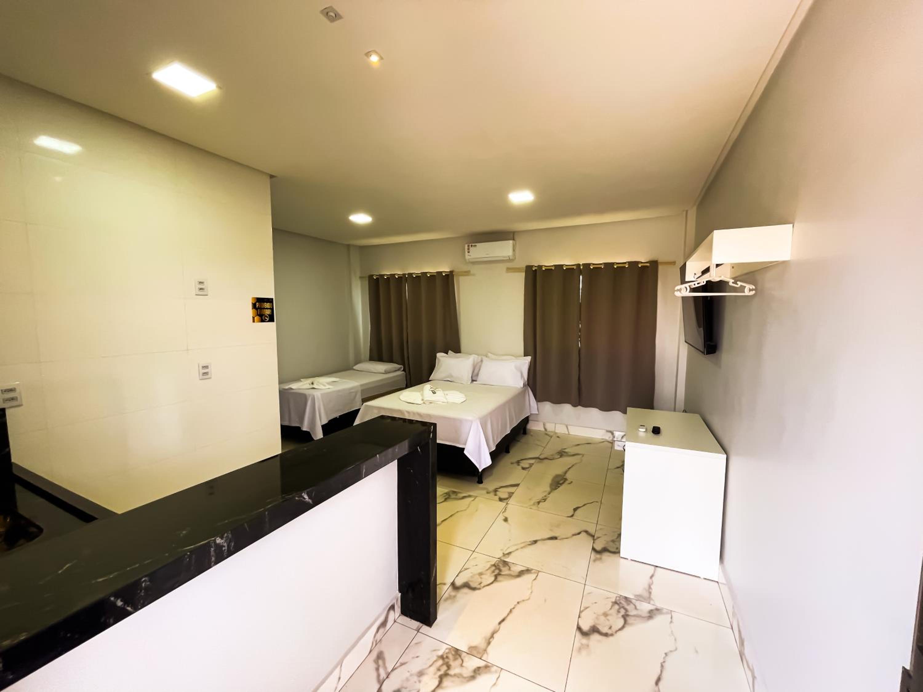 Quarto espacoso,, cama e banheiros confortáveis para a proposta do.hotel. tudo limpo e organizado.