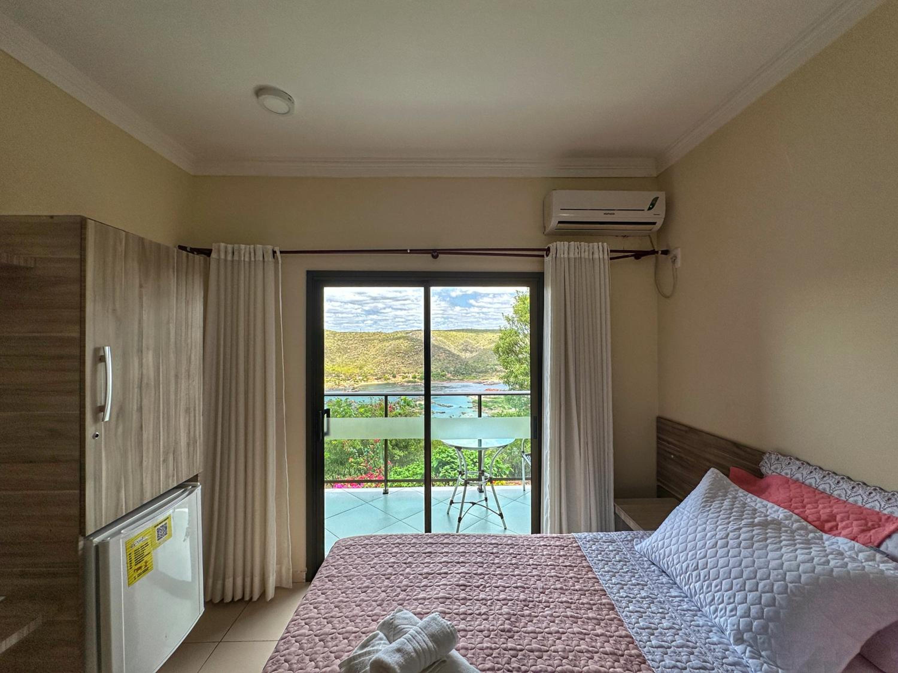 A vista é maravilhosa. O quarto espaçoso e o atendimento muito bom. Café da manhã bem servido e com um yogurte caseiro maravilhoso.