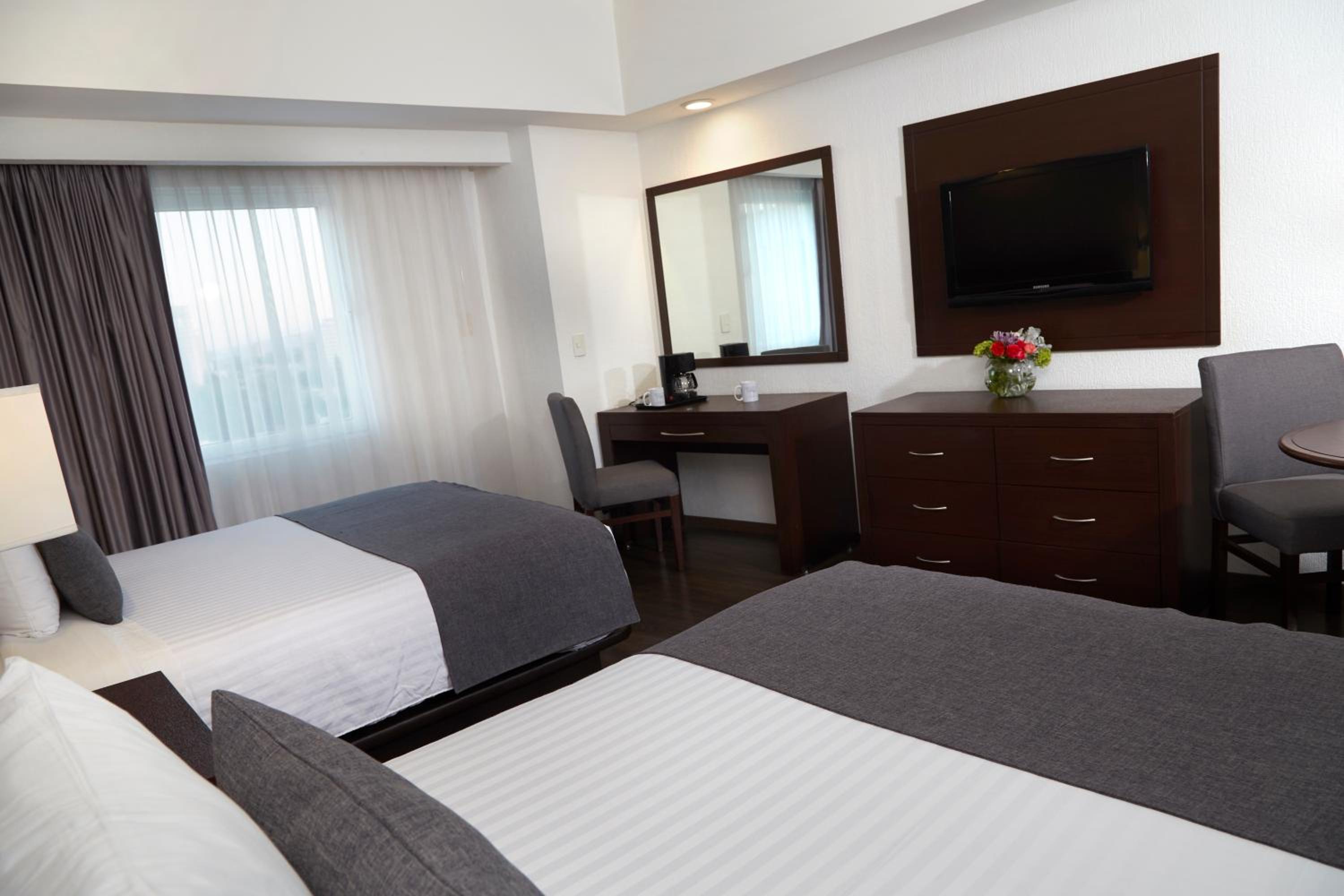 Modern Rooms with Free WiFi: Enjoy the comfort of modern rooms with free WiFi access and cable TV, providing a relaxing stay after a busy day exploring Guadalajara.