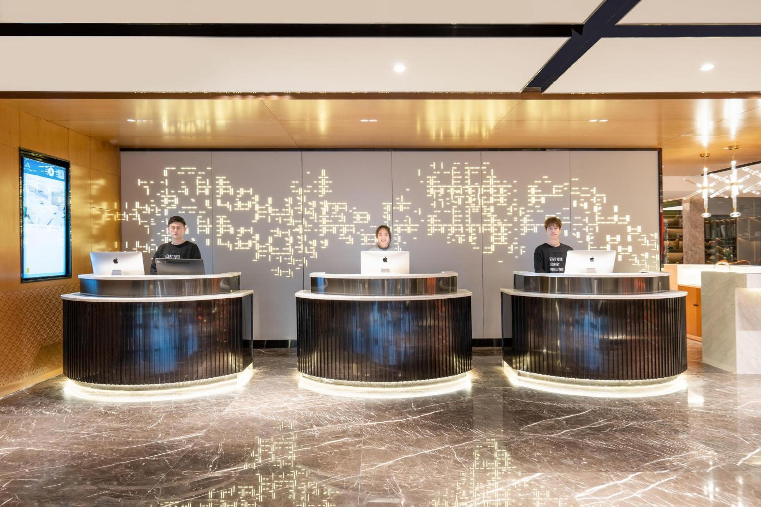 Friendly Service: English and Chinese-speaking staff offering helpful tips and assistance at the reception desk.