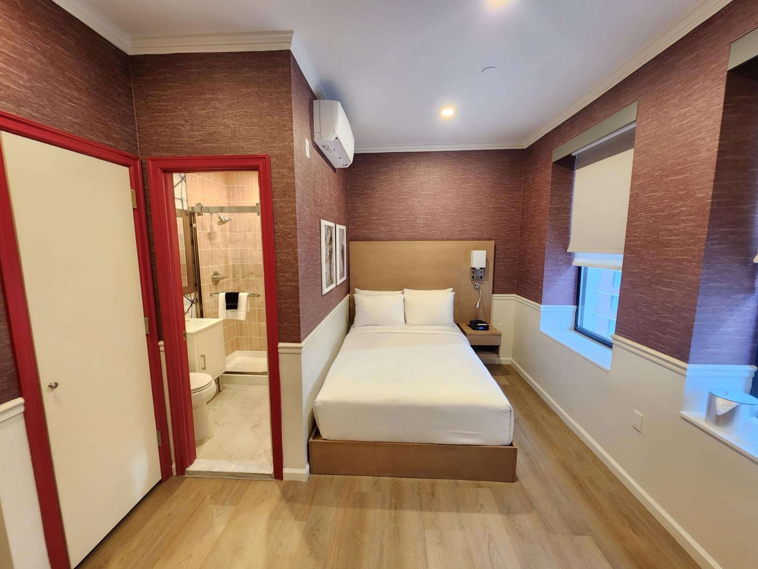 タイムズスクエアから近く、ありとあらゆる観光地が徒歩圏内、地下鉄も乗りやすい場所だった。お部屋もコンパクトながら、小さなクローゼットもあり、スーツケースは大きいものと小さいものが広げられた。バスタブはないがちゃんと仕切りのあるシャワーブースでシャンプーがいい香りだった。私は英語が苦手だったがとても親切だった。