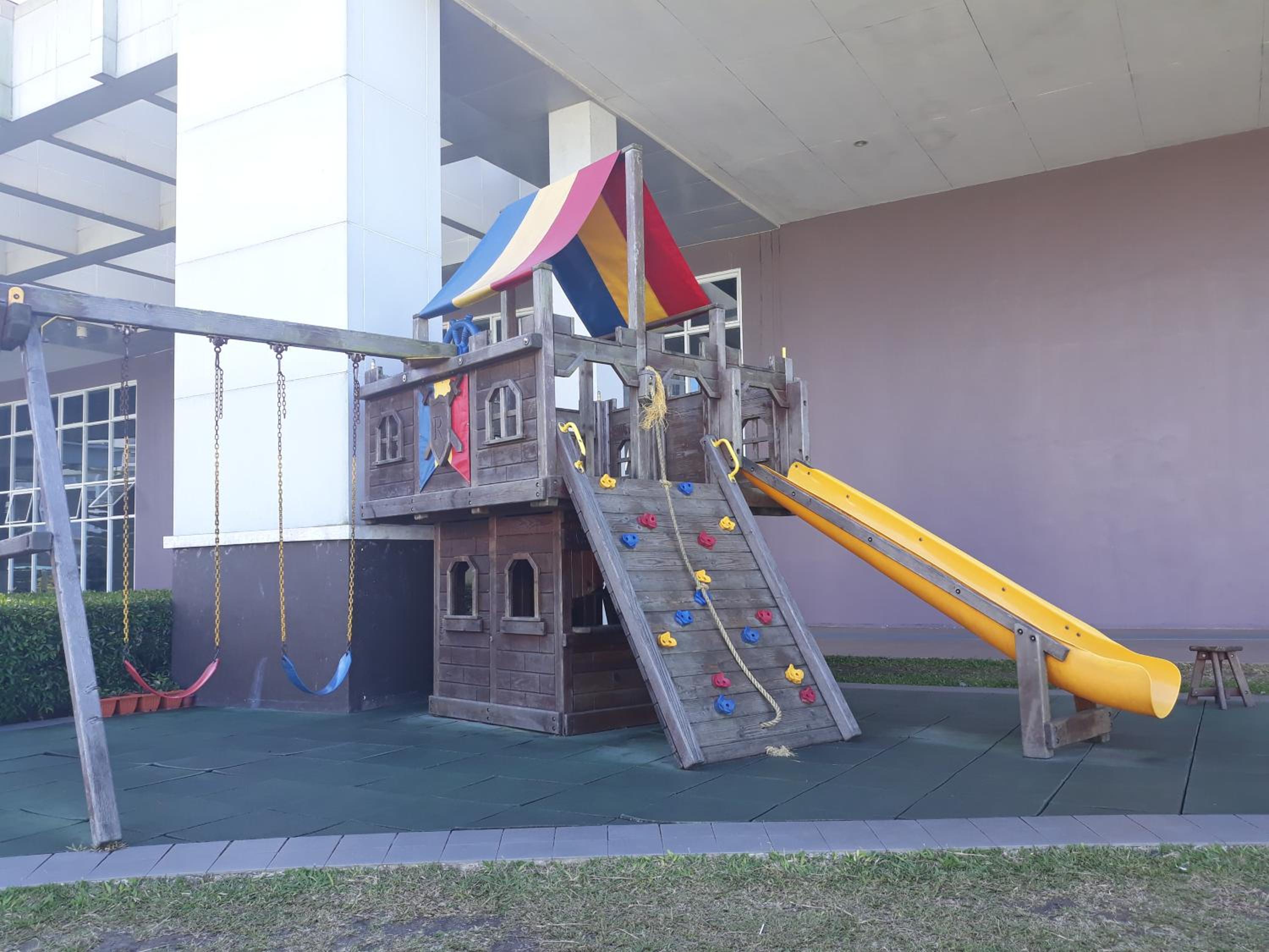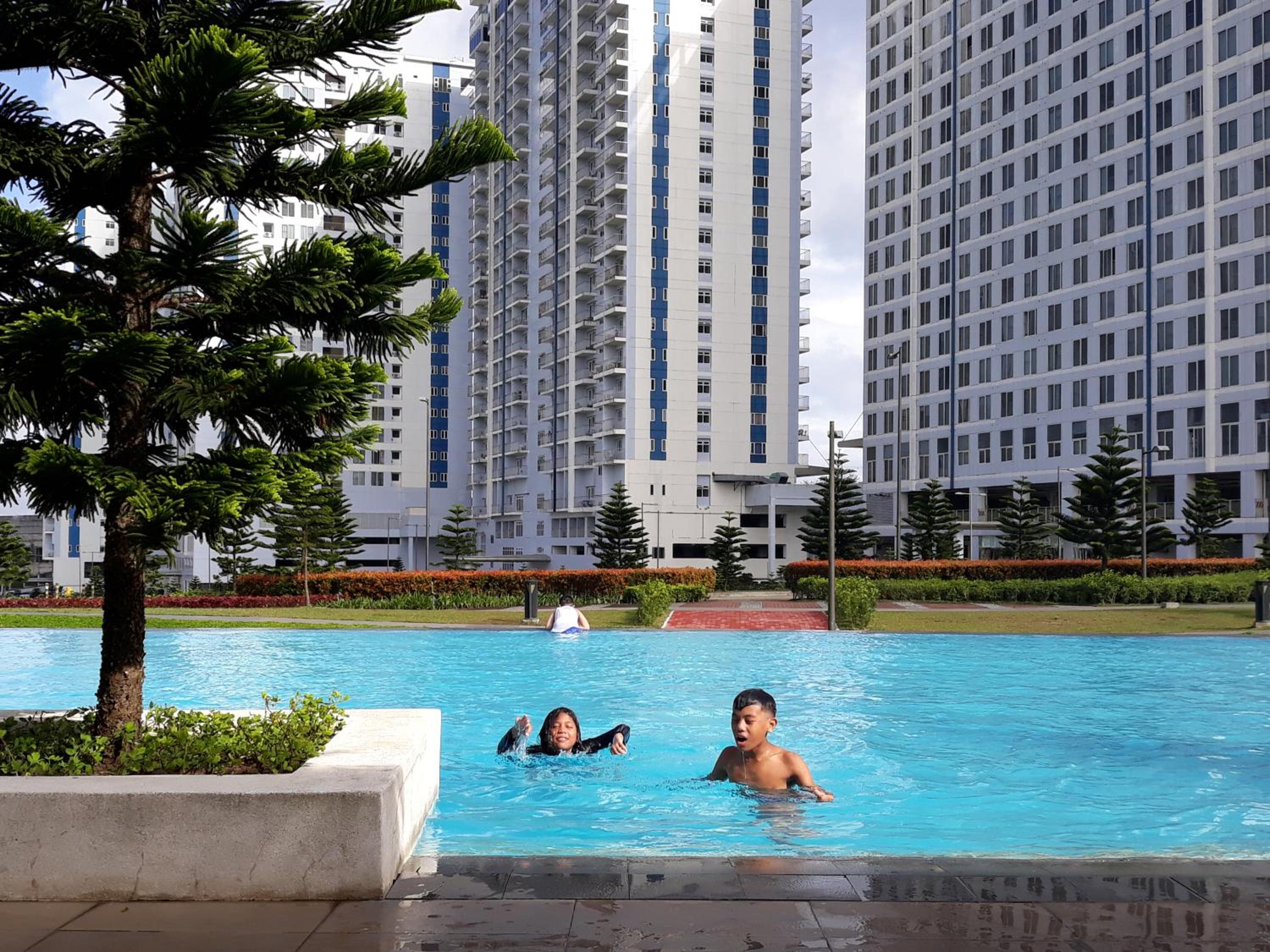 Condo at SMDC Wind Residences Tagaytay offers a sustainable aparthotel experience with a pool boasting breathtaking views, a serene garden, and a cozy shared lounge. Guests can also enjoy a 24-hour front desk service and a children's playground, ensuring a comfortable stay for families.