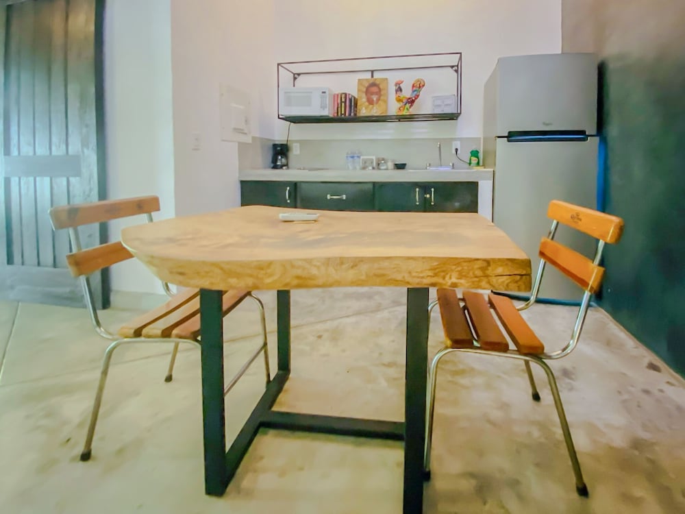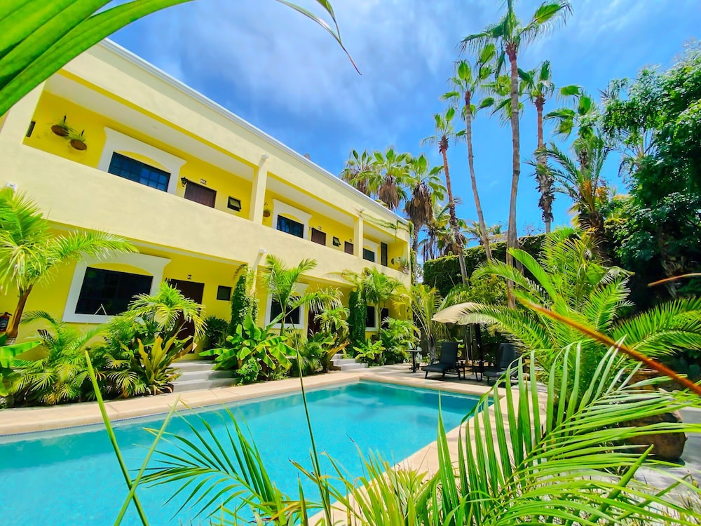 Nice little hotel in the heart of Todos Santos. The rooms are clean, and the pool is refreshing. The hotel is attached to a pizza bar that makes delicious pizzas. Very close to everything. Highly recommend staying here.