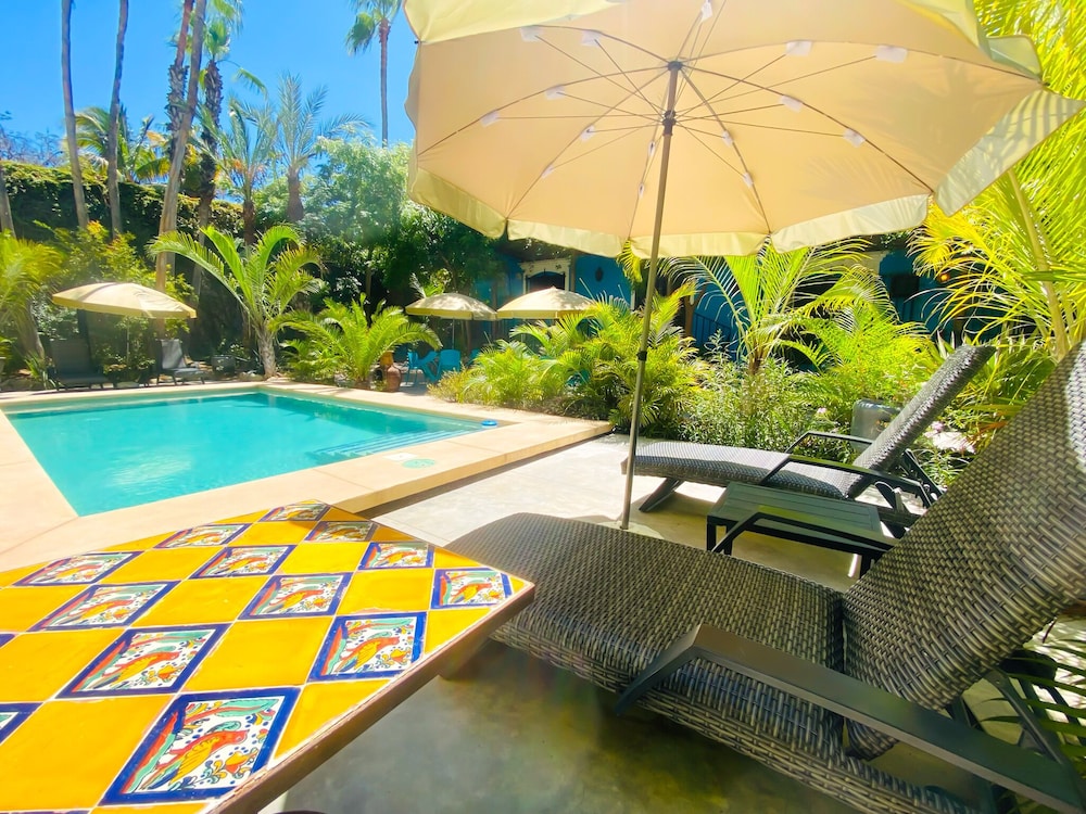 Immerse yourself in the heart of Todos Santos at Hotel Gallo Azul Downtown Todos Santos, just steps away from Los Pinos Park and Nuestra Senora del Pilar Church. Book now for an unforgettable stay!
