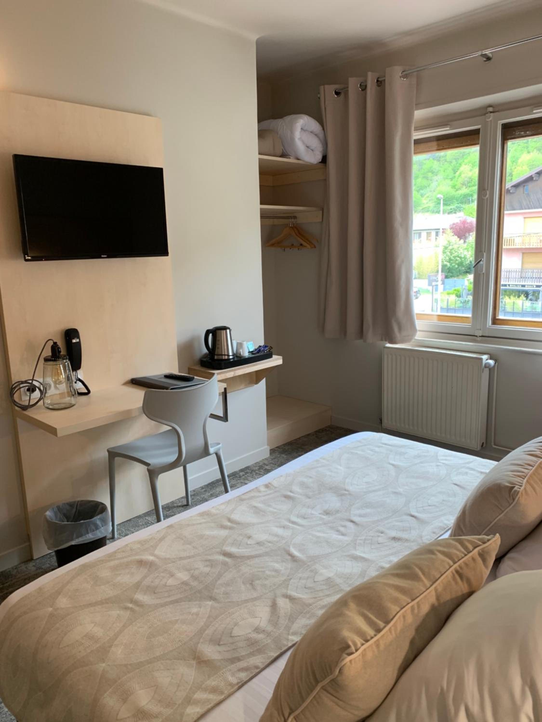 Was surprisingly quiet even though our room faced the street. Tea in the room and a water cooker. Electric chargers right in front of hotel. Nice staff.