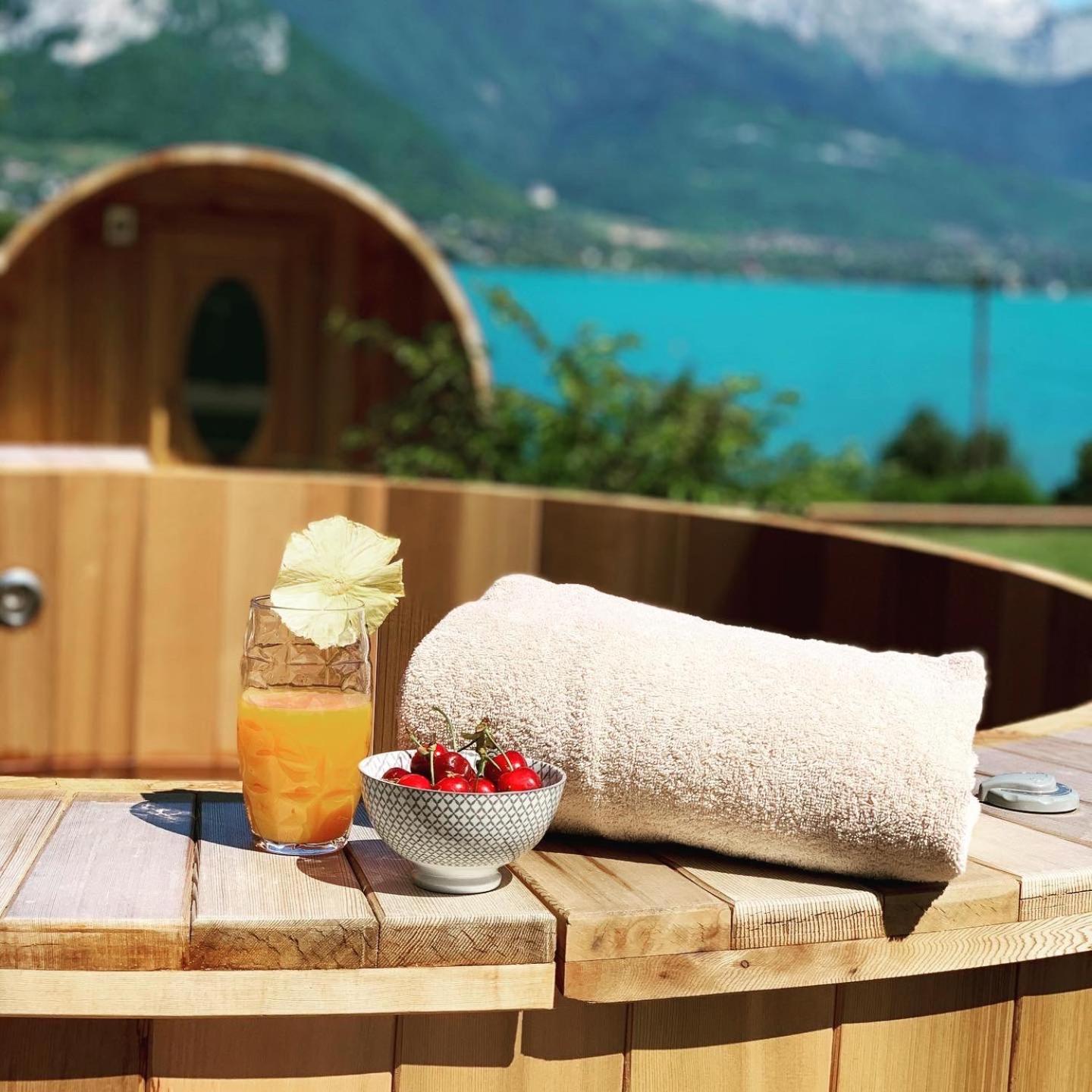 La vue, le jacuzzi et sauna en extérieur