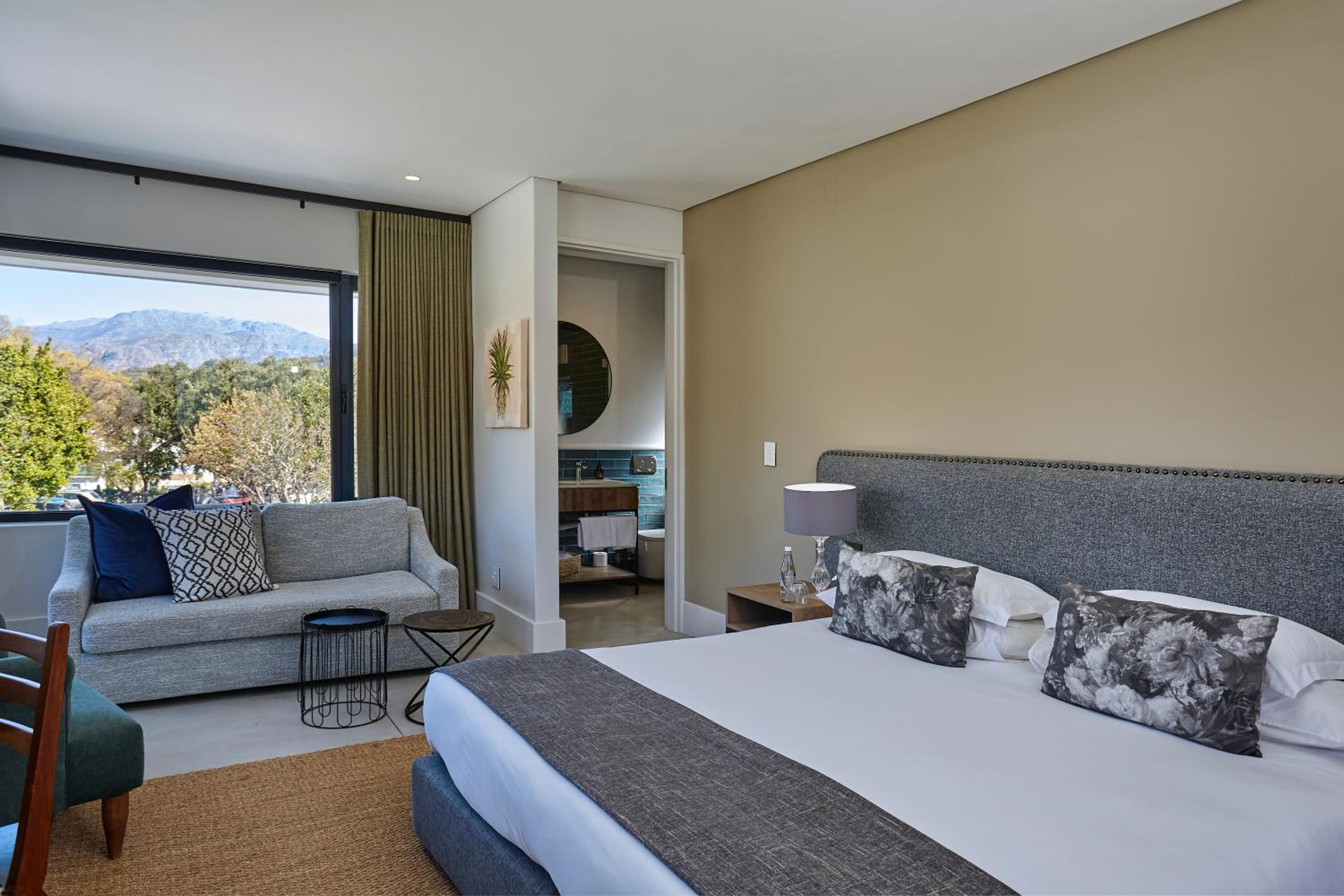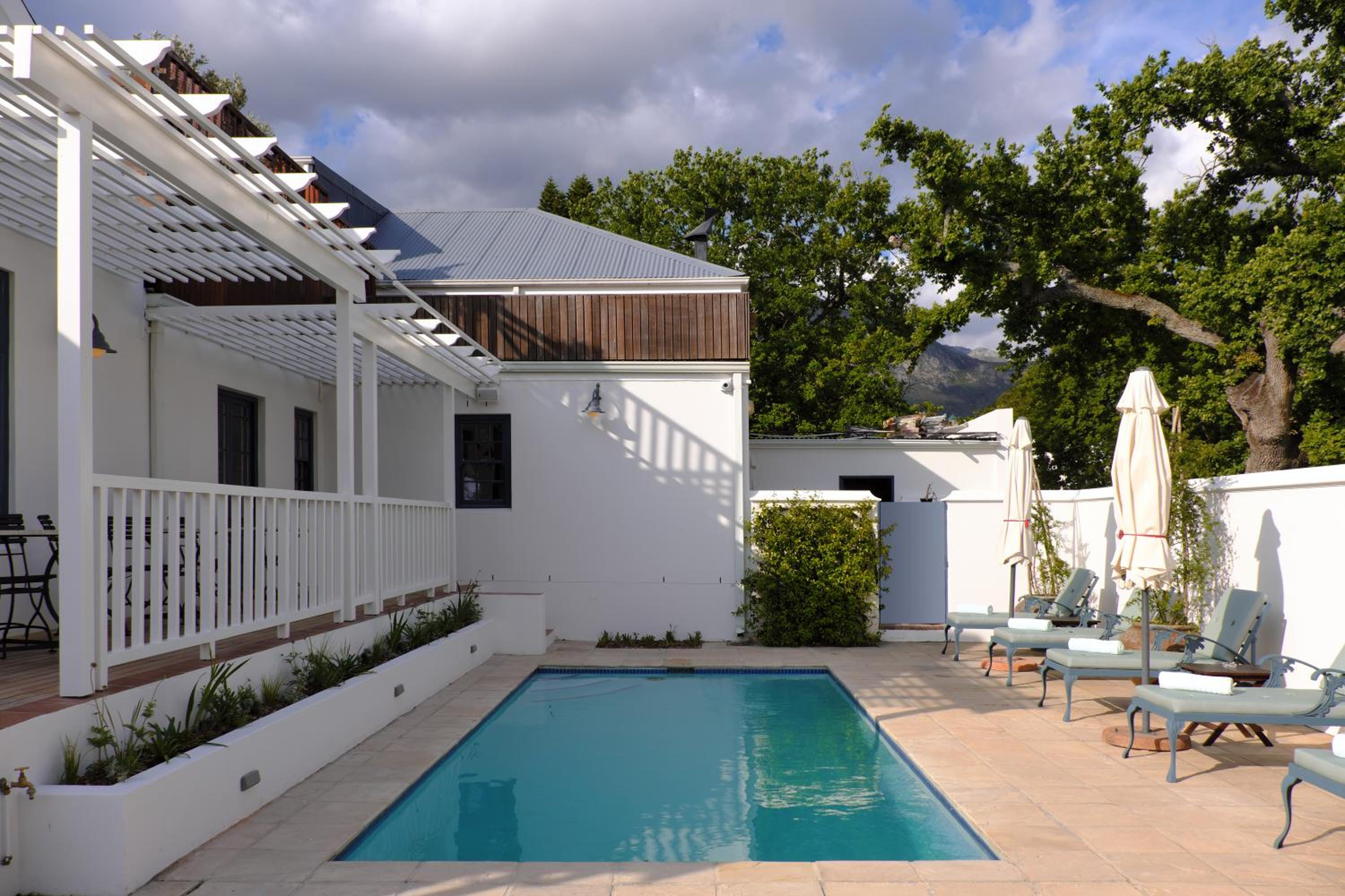 Unwind by the outdoor pool overlooking the picturesque Franschhoek Mountains or take a leisurely stroll through the rose and lavender garden. The veranda and stylish lounge with a fireplace provide perfect spots to relax and enjoy the serene surroundings.