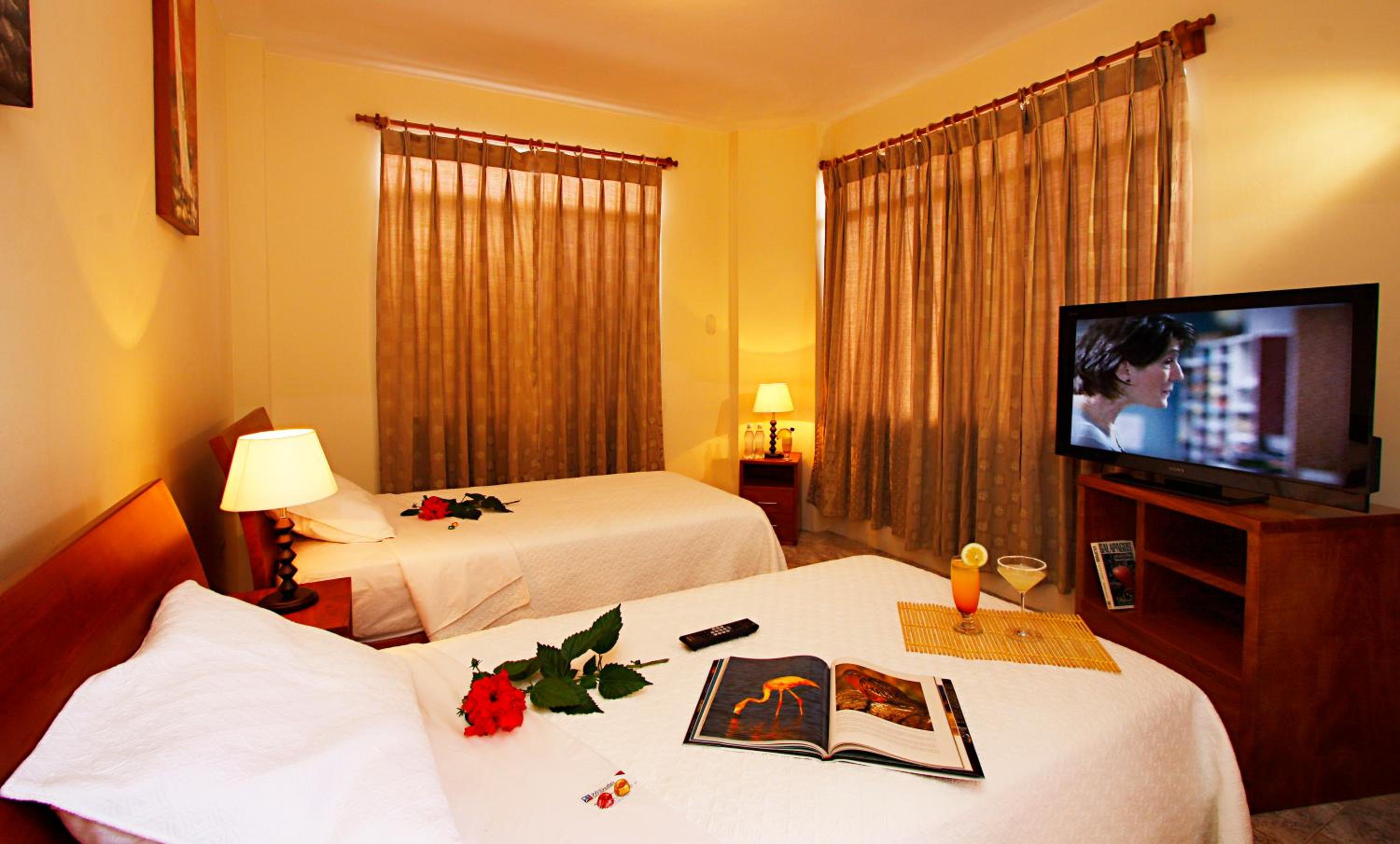 Experience comfort and elegance at Suites del Sol, just 500 meters from the Pacific Bank in Pichincha. Indulge in spacious rooms with private bathrooms, air conditioning, flat-screen TVs, and minibars for a truly relaxing stay.