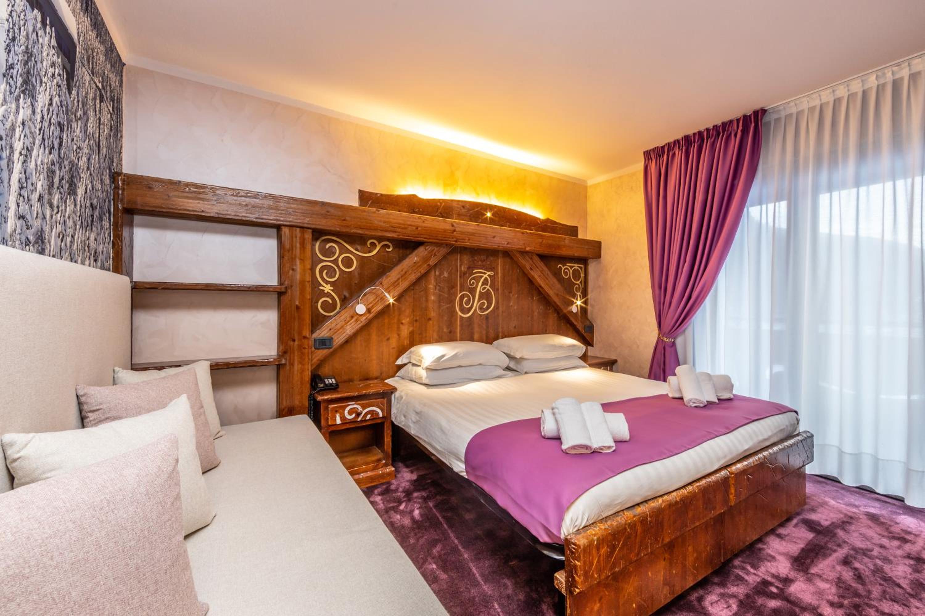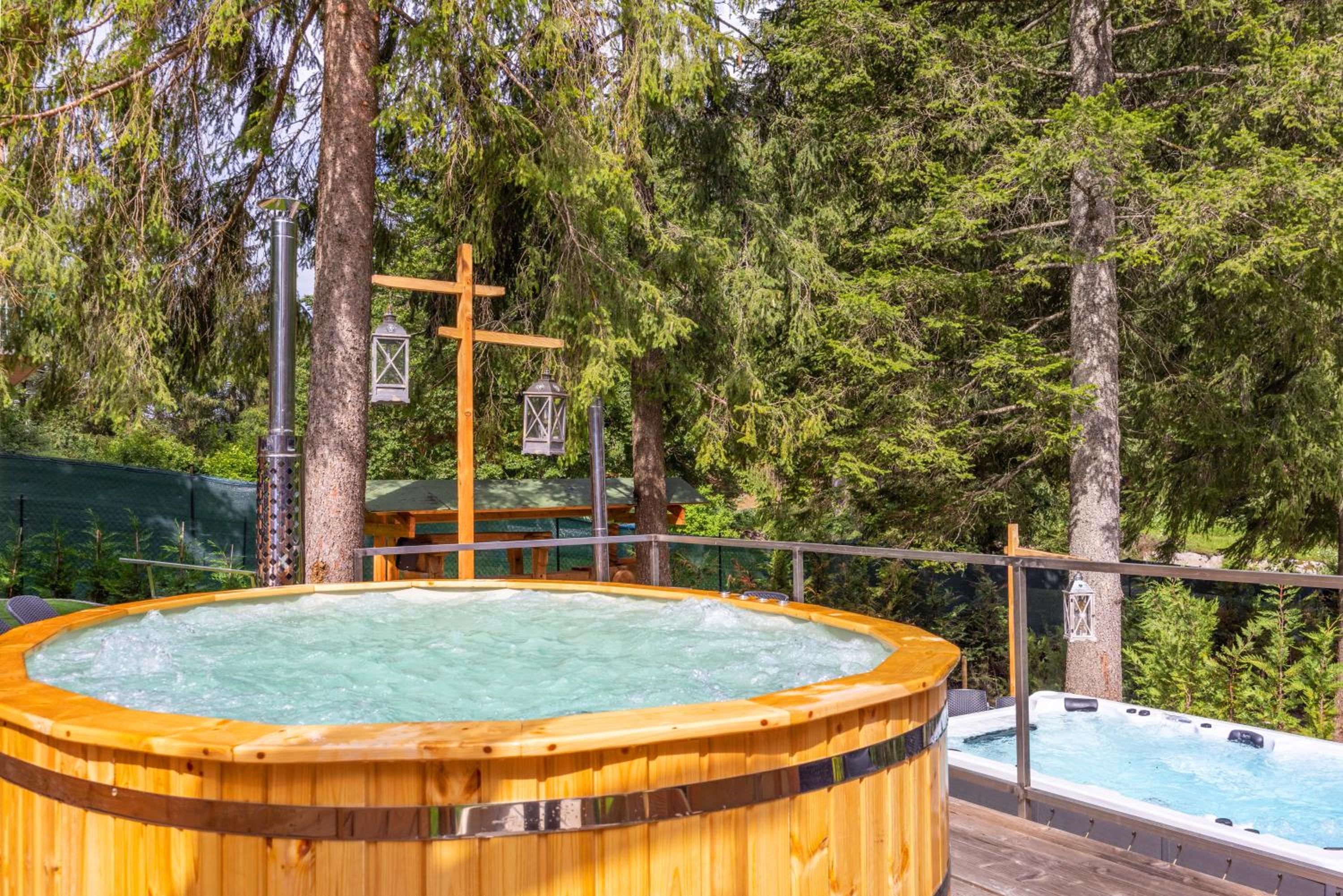 Indulge in the charm of Alpine-style rooms with wooden furnishings and balconies offering breathtaking mountain views. Suites elevate the experience with spa baths and hot tubs for ultimate relaxation.