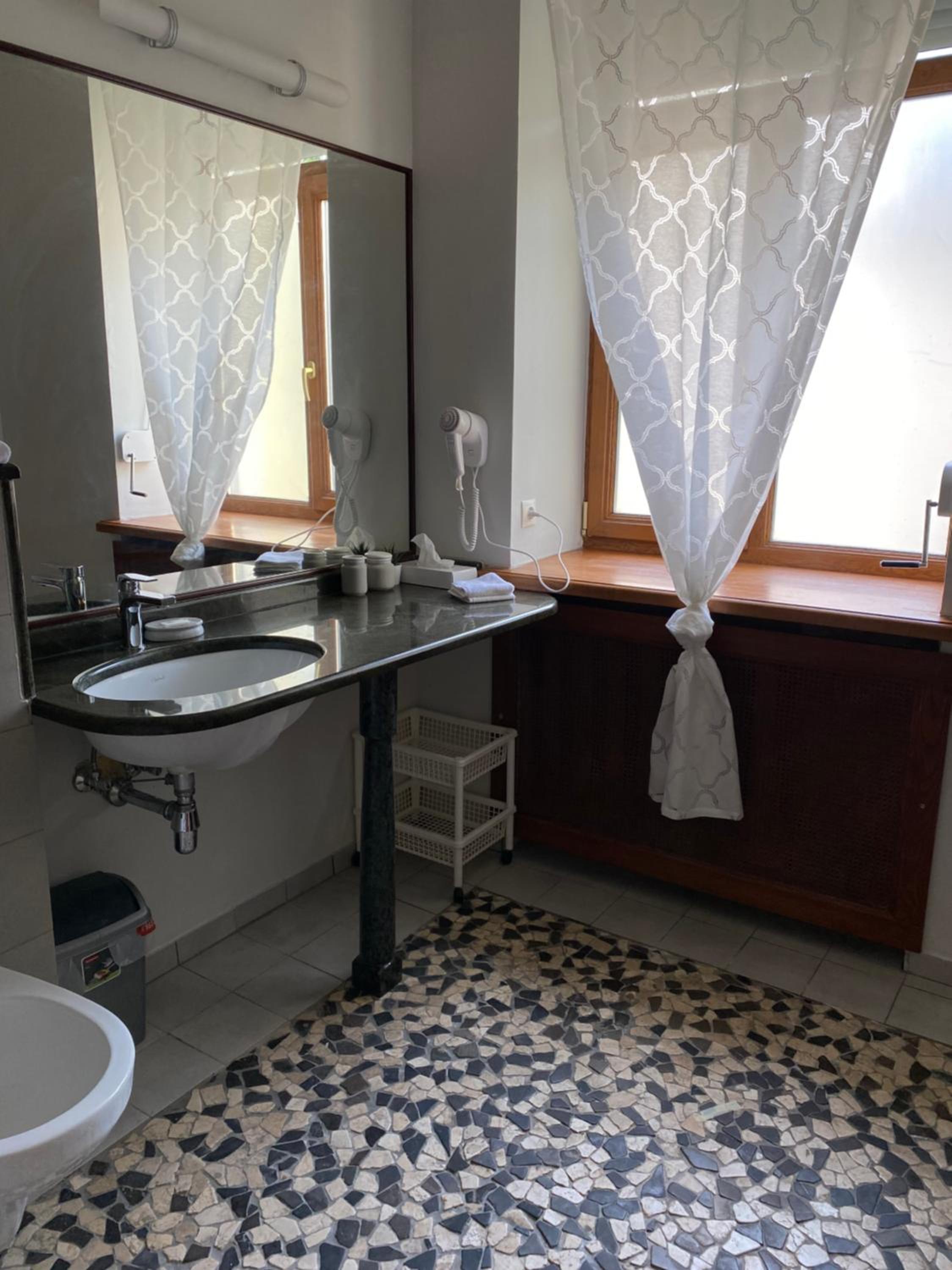No mosquito nets on windows so mosquitoes and huge spiders were coming inside. Matress was too soft and springs were making so much noise with every move. It would be nice to have a kettle and a fridge in the room. Hotel feels a little empty because the receptionist only stays until 18.