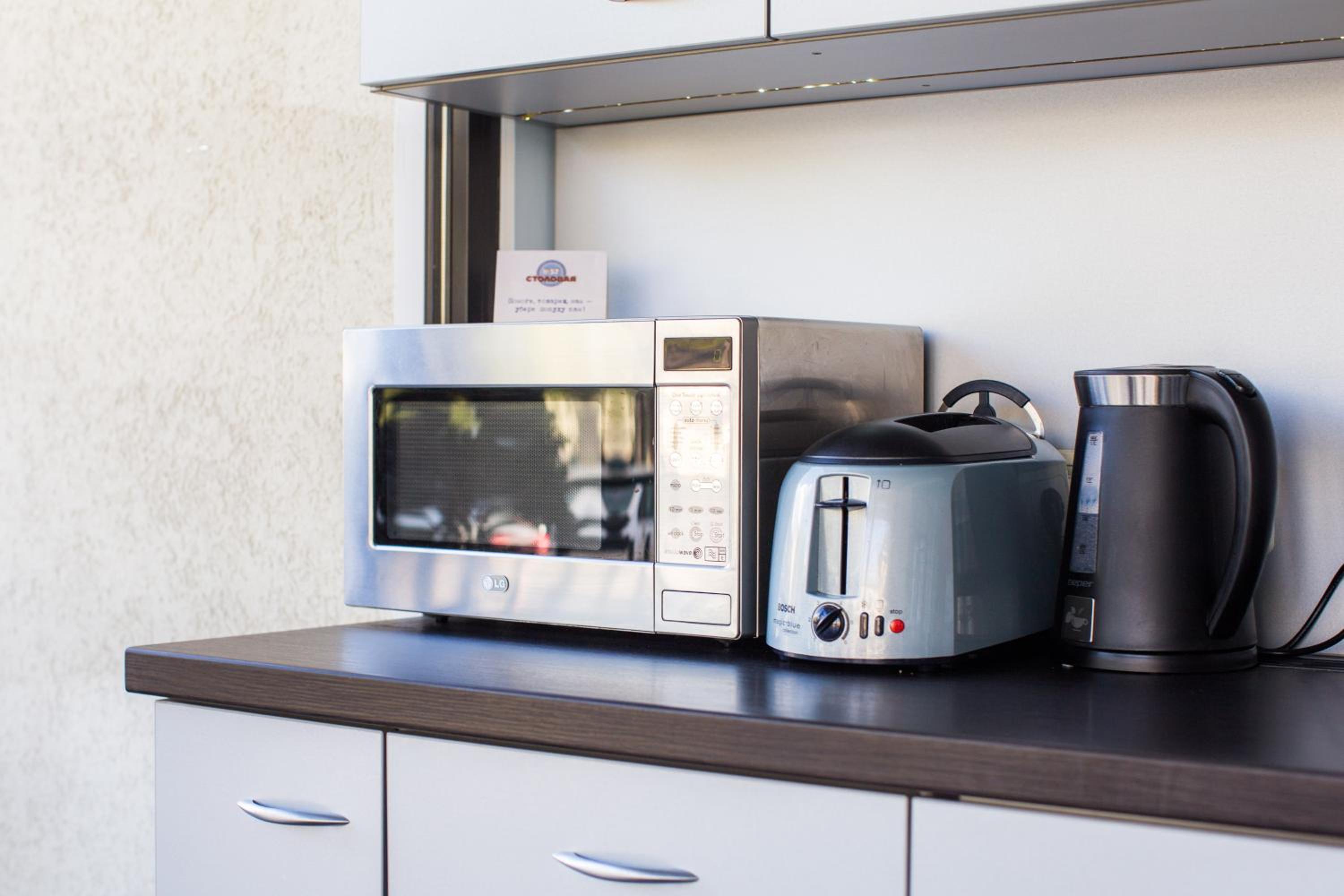 Par cik ir neliela virtuves zona, varēja būt pieejams arī neliels ledusskapīts. Vannasistabas ventilators spalgi sīca.